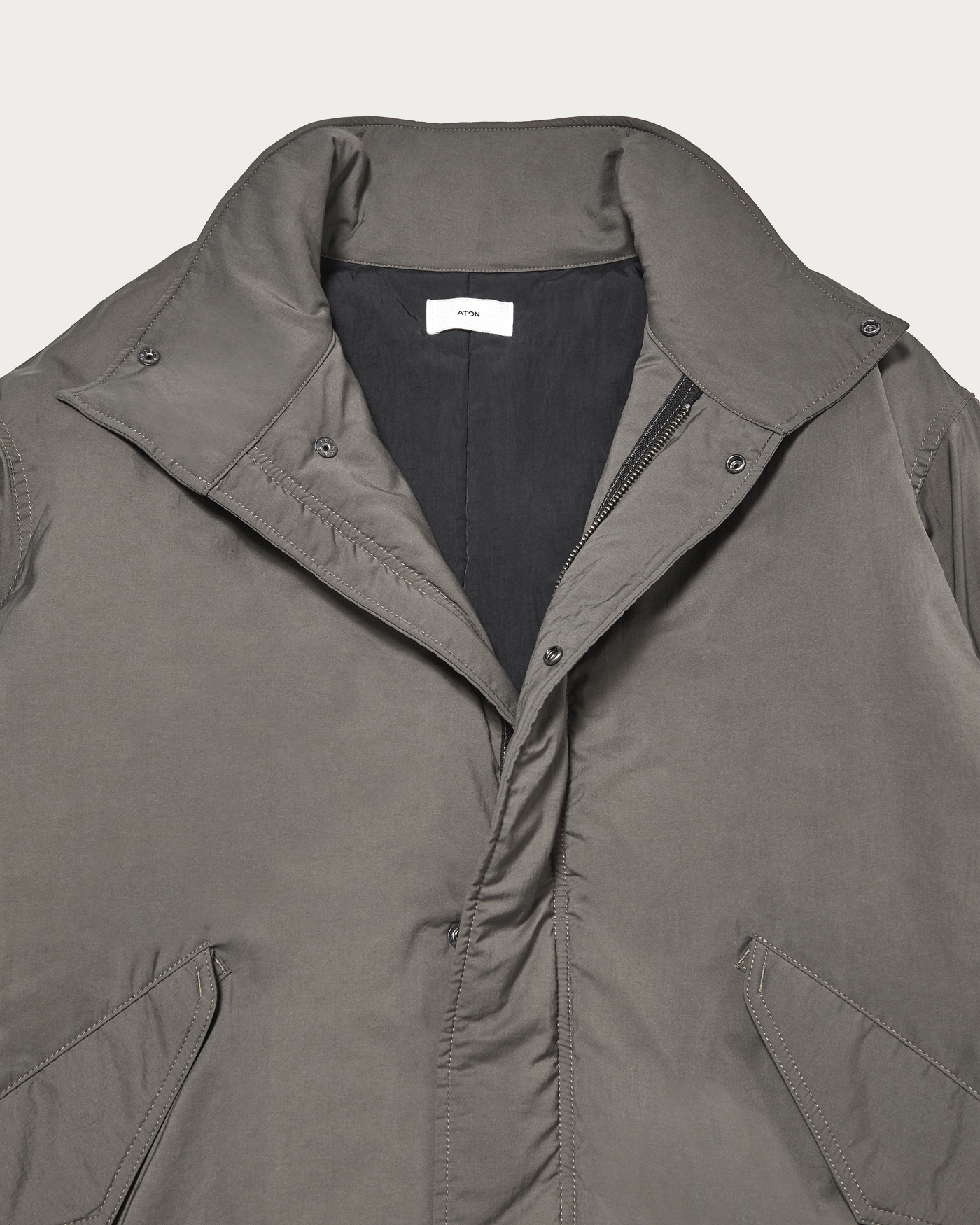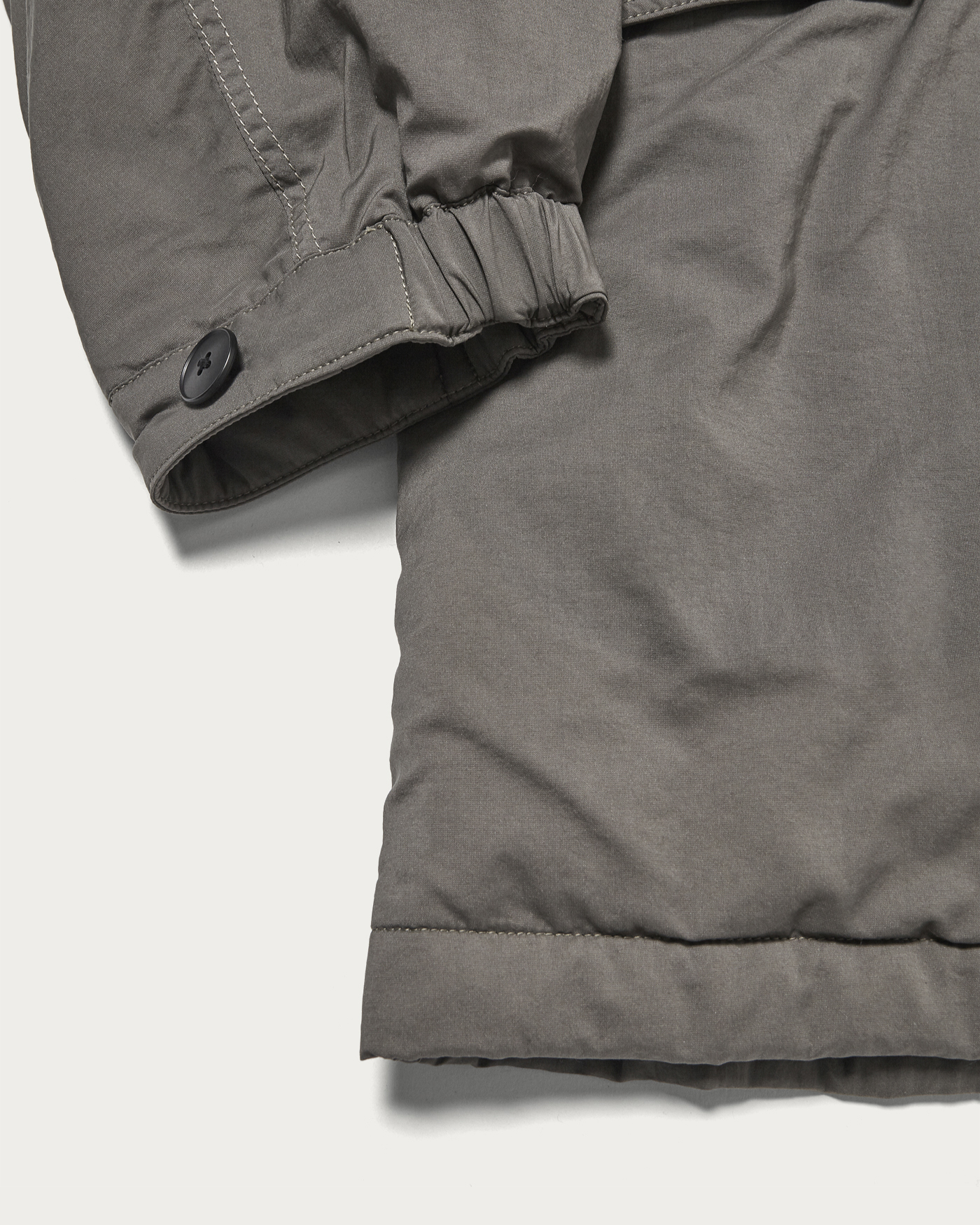3WAYの仕様でブランド顔でもある人気のショートモッズコートを別注で中綿を入れたショートモッズコートに変更しました。中綿の量にこだわり、あまり入れすぎることなく適度な量の中綿にしモッズコートらしい、ファッションとのしての表情を大事に考えたあらたなショートモッズコートが完成。