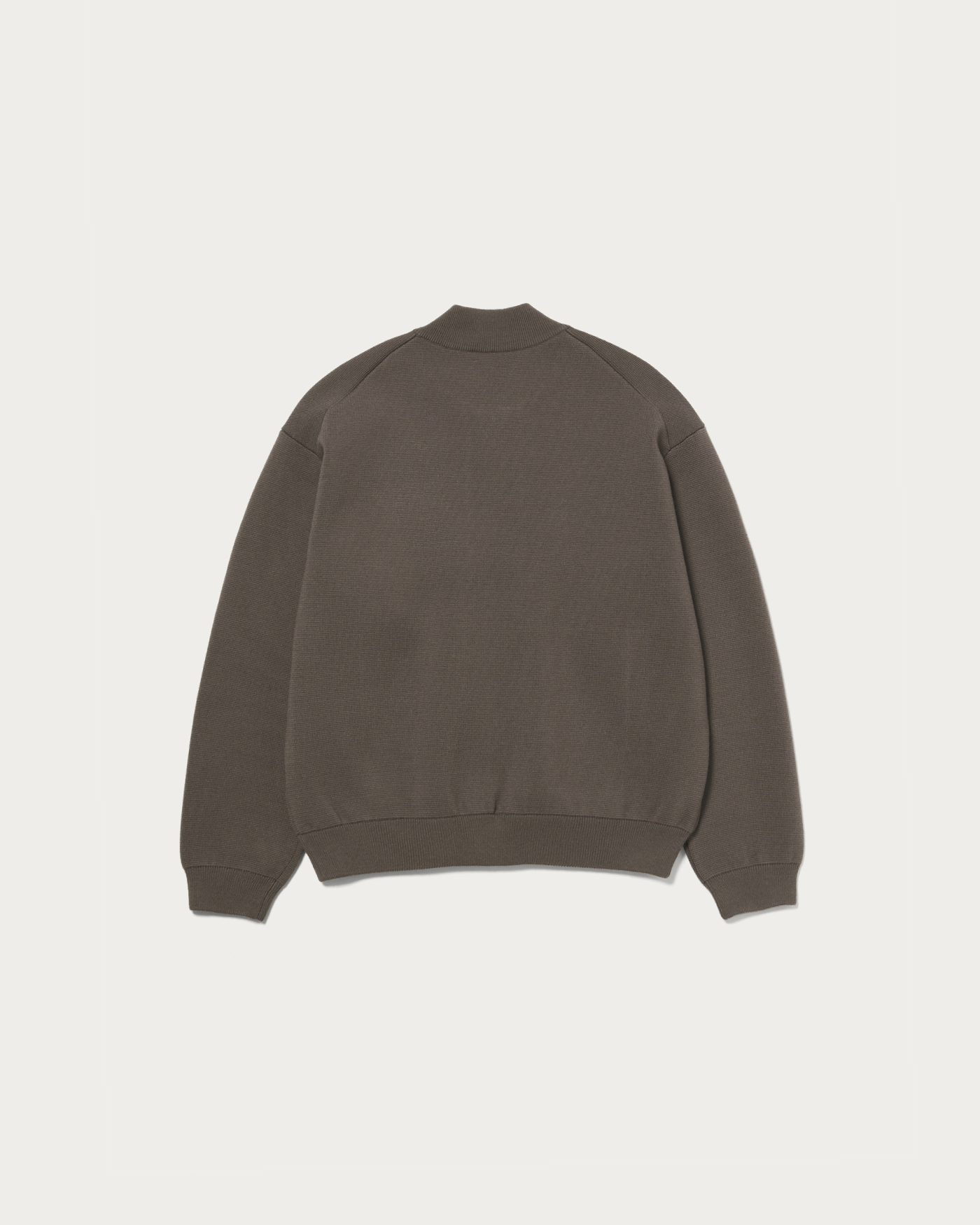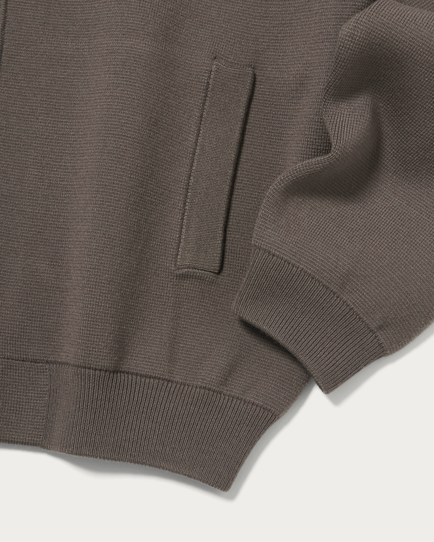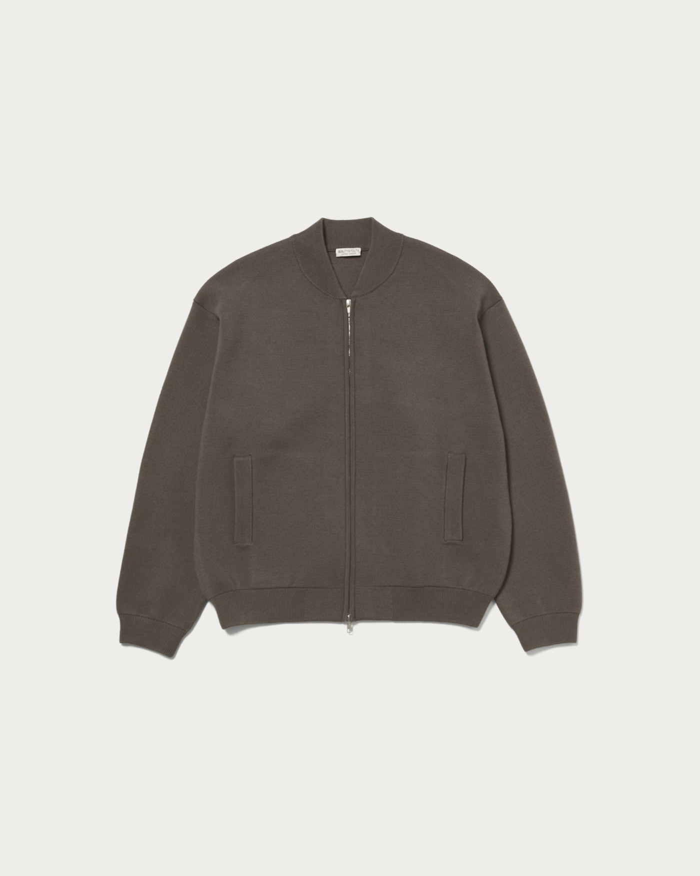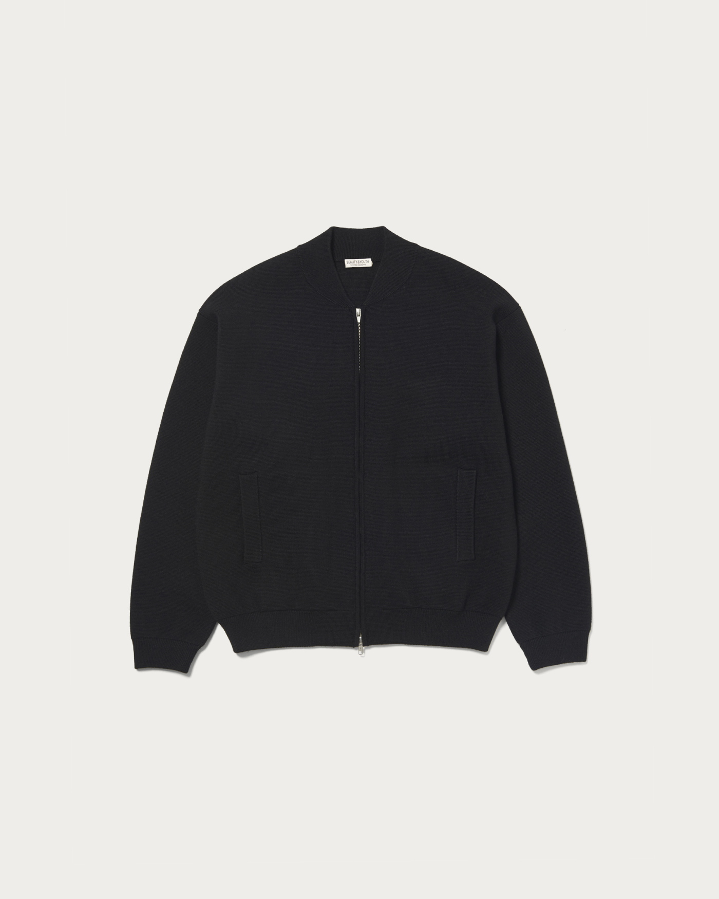 上質なウーステッドウールアクリル素材を採用し、生地感をしっかりさせるミラノリブ編みで仕上げたニットブルゾン。生地が柔らかく、肌なじみが良いのも特徴です。ワイドシルエット、短めの着丈でフライトブルゾンのようなシルエットに仕上げました。
