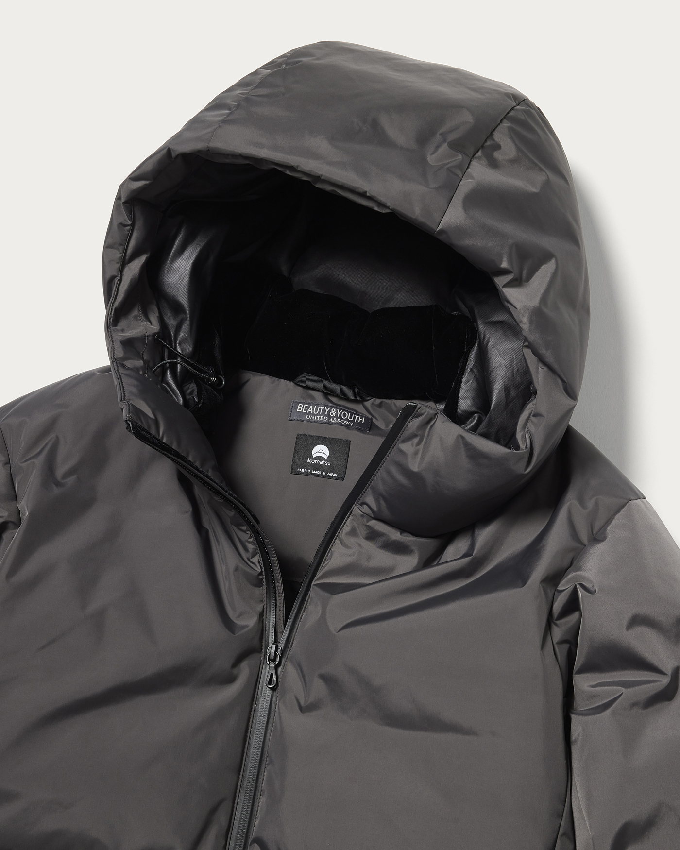 「小松マテーレ」社が開発した透湿防水フィルム”SAITOS-GR”を裏面に張り付けた、ナイロンタフタを使用した新型ダウンジャケット。ダウンはアライド社900フィルパワーのプレミアムダウンを採用し、スペック面でも性能の向上を図りました。