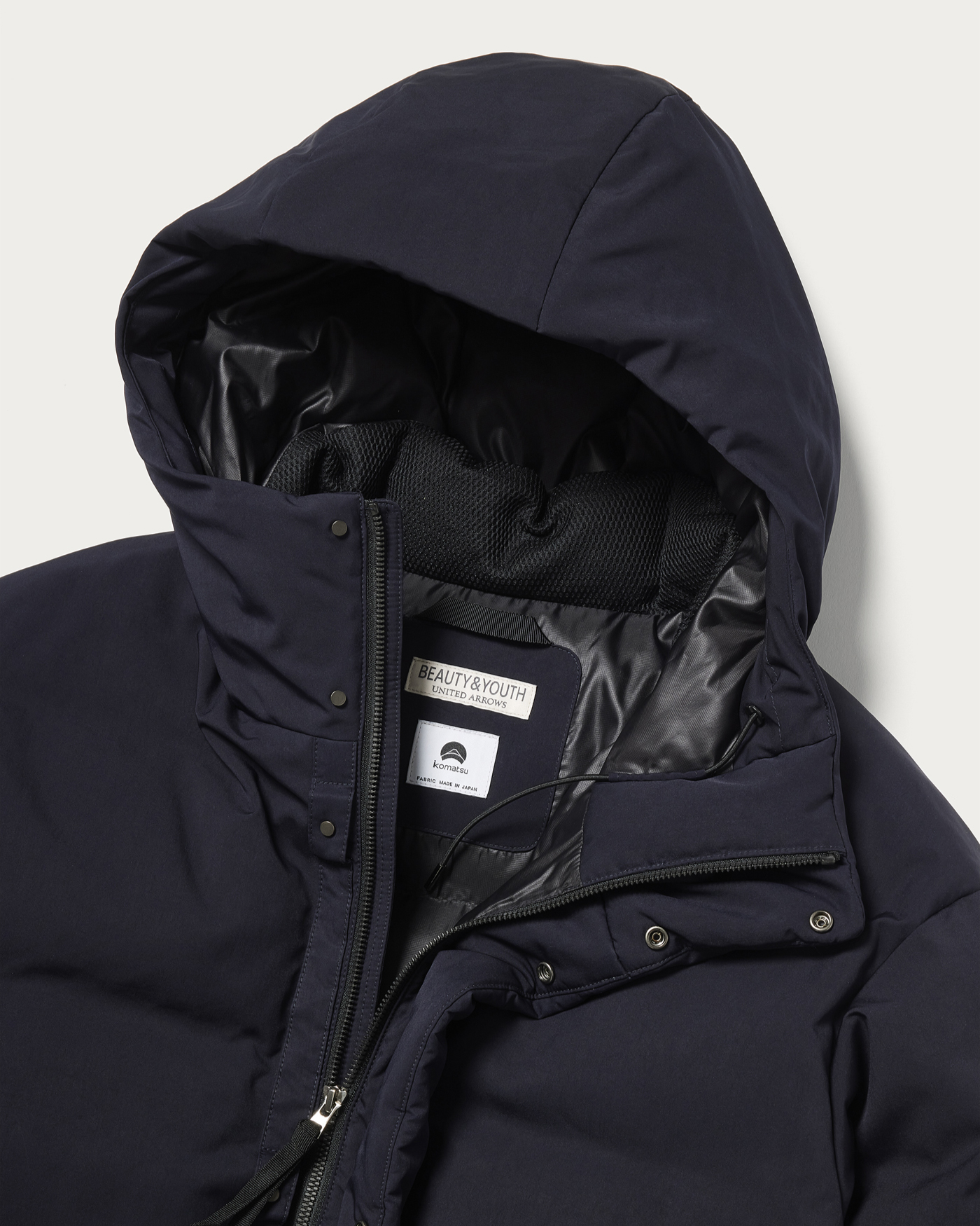都市生活に馴染む洗練されたデザインと過不足ない機能性を併せ持つ、「小松マテーレ」のダウンジャケット。700FPアライド社製ダウンをたっぷりと封入し丸みのあるシルエットを出したリラックスフィットダウンジャケットが登場。ポリエステルナイロン組成のツイル生地を使用。ナチュラル見えをする染色加工を施し、シャープかつ自然な表情感に仕上げています。