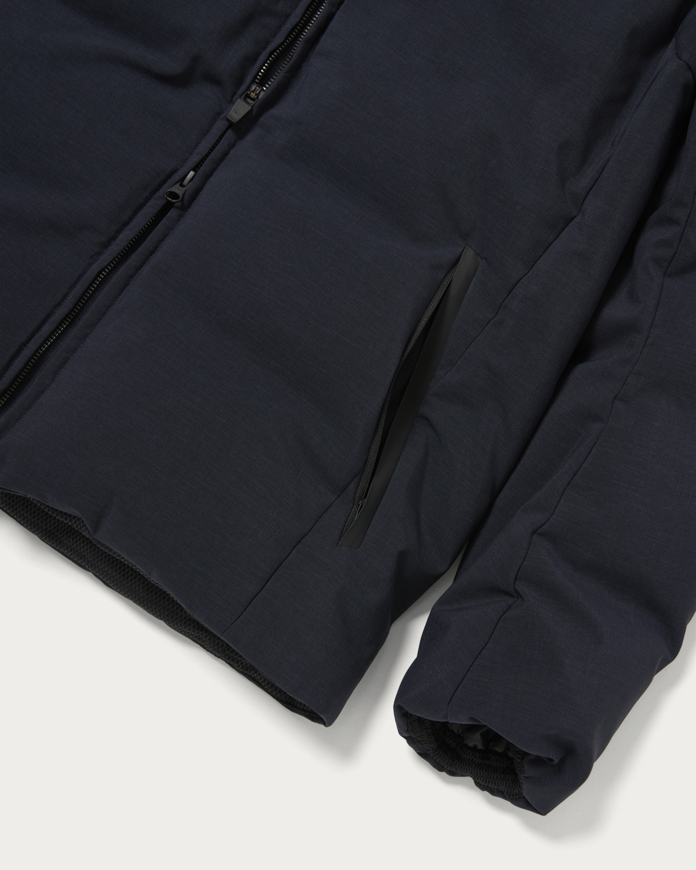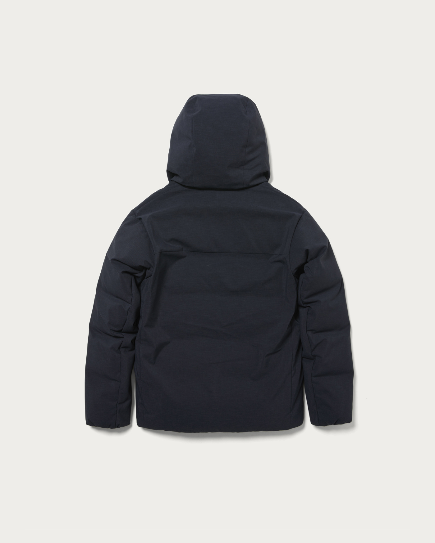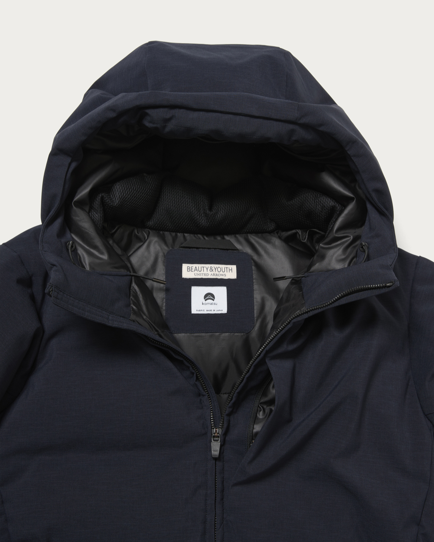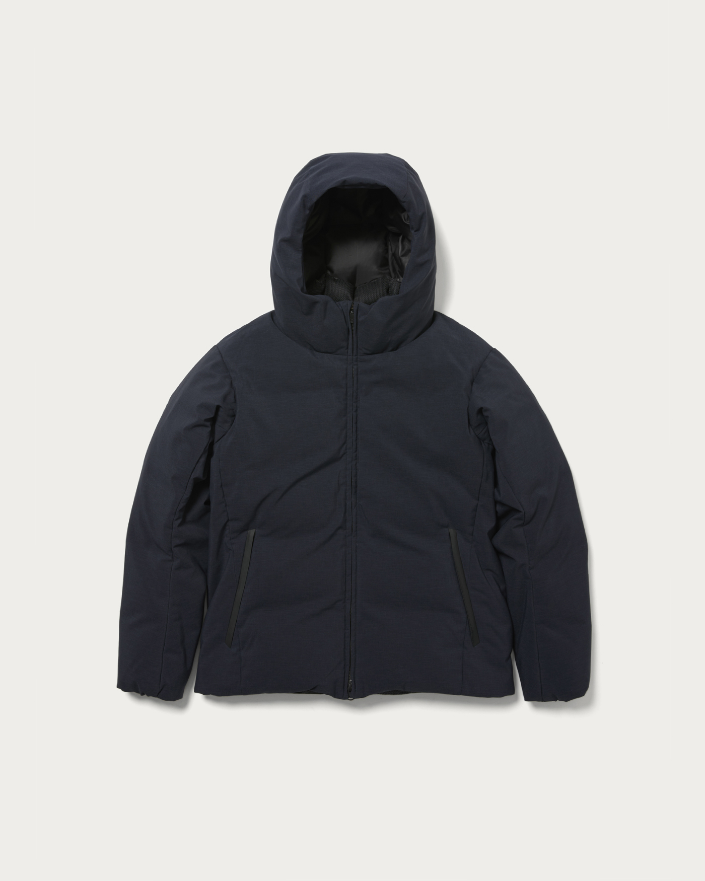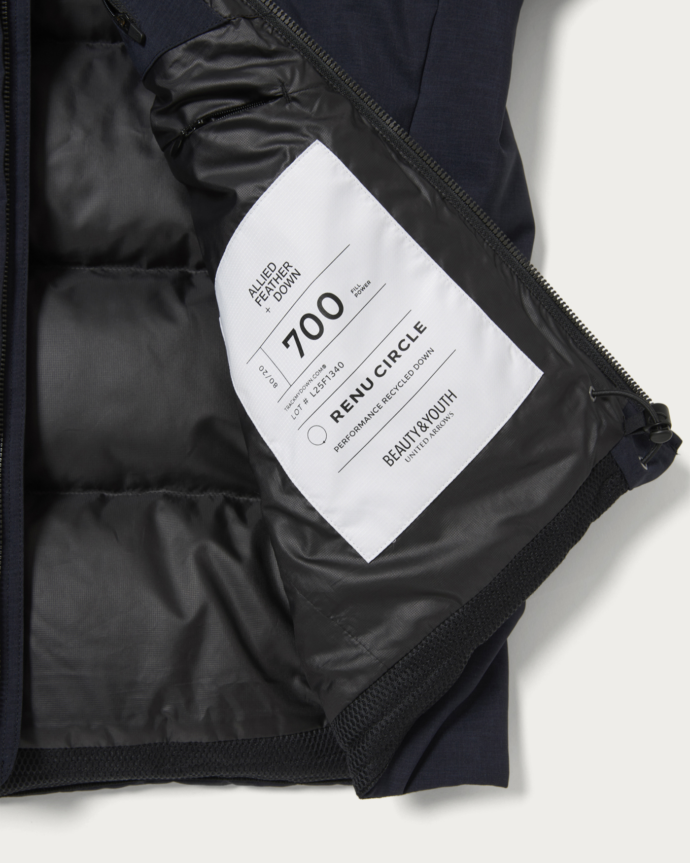 都市生活に馴染む洗練されたデザインと過不足ない機能性を併せ持つ、「小松マテーレ」のダウンジャケット。繊細な陰影感があるウーステッドライクなポリエステル生地を採用。700FP(フィルパワー)のレニューサークルダウンを使用。大人なダウンジャケットに相応しい端正な雰囲気です。