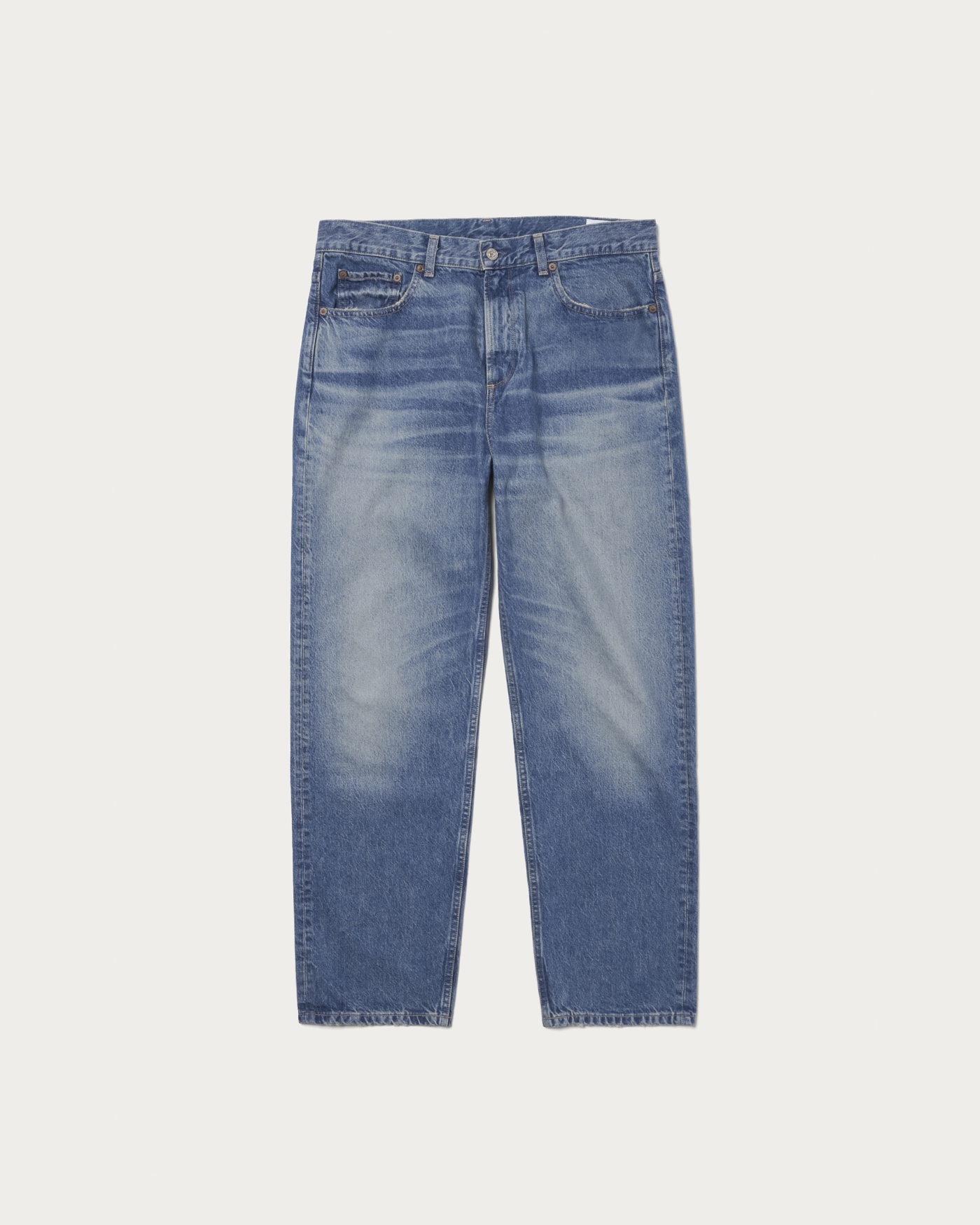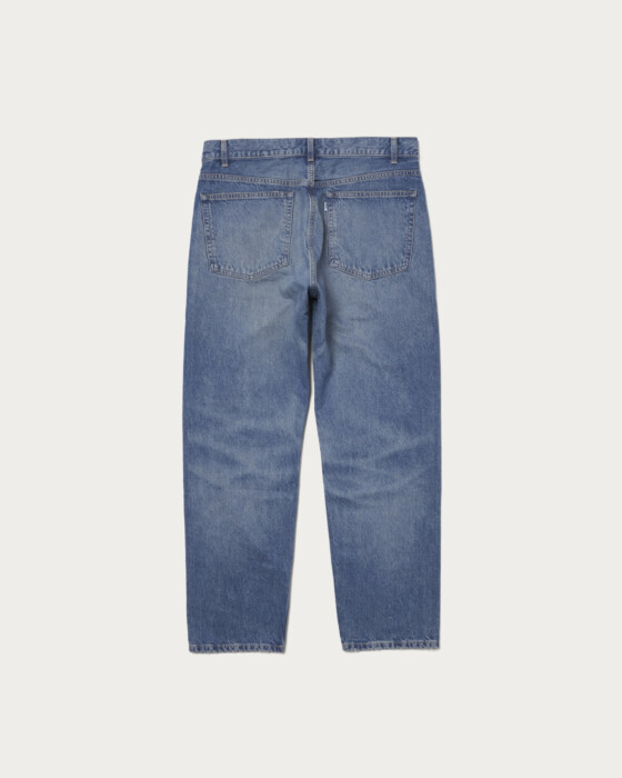 ヴィンテージデニムを参考に絶妙なユーズド加工を施した5ポケットデニムパンツです。オーガニックコットン100%の13ozカイハラ社製デニムを使用。ややコンパクトめなヒップ回りで、渡り幅〜膝幅〜裾にかけてすっきりみえる絶妙なレッグラインのオーセンティックなシルエット。生地、縫製、加工まで”MADE IN JAPAN”でこだわり貫いた一着です。