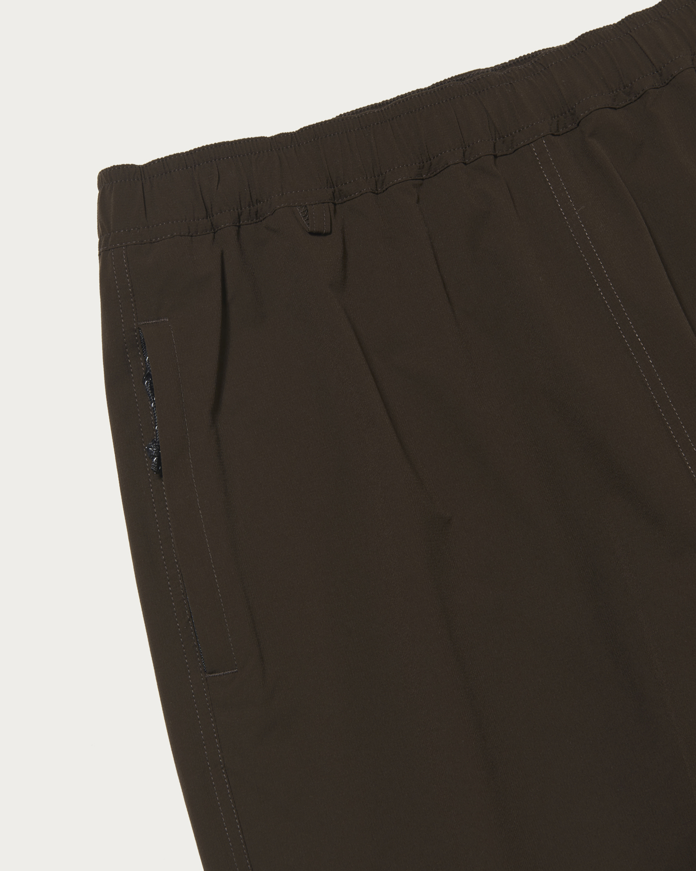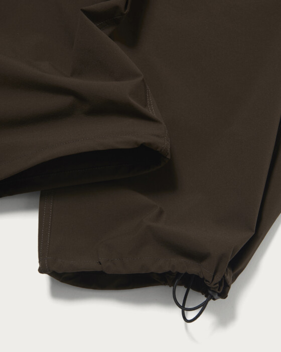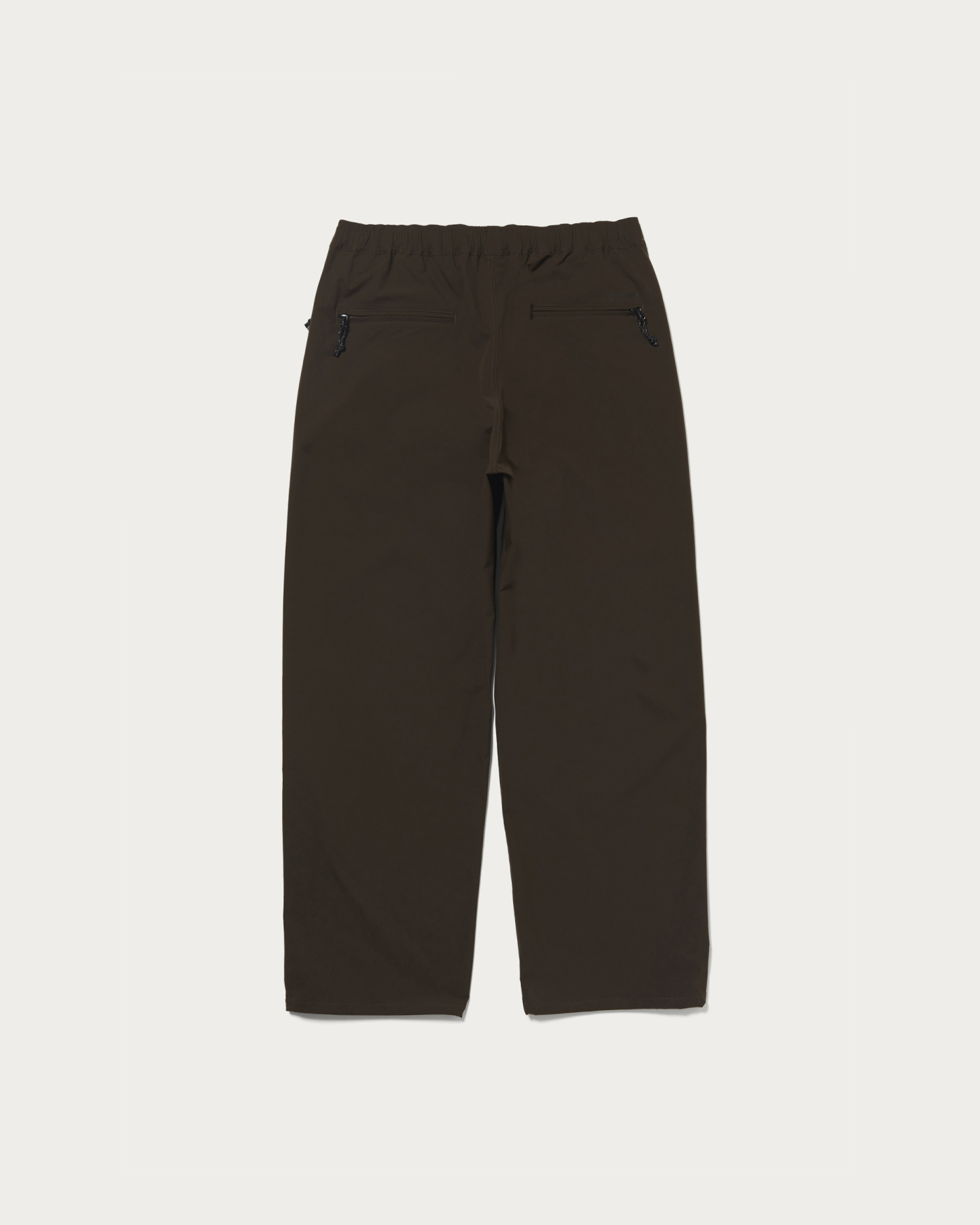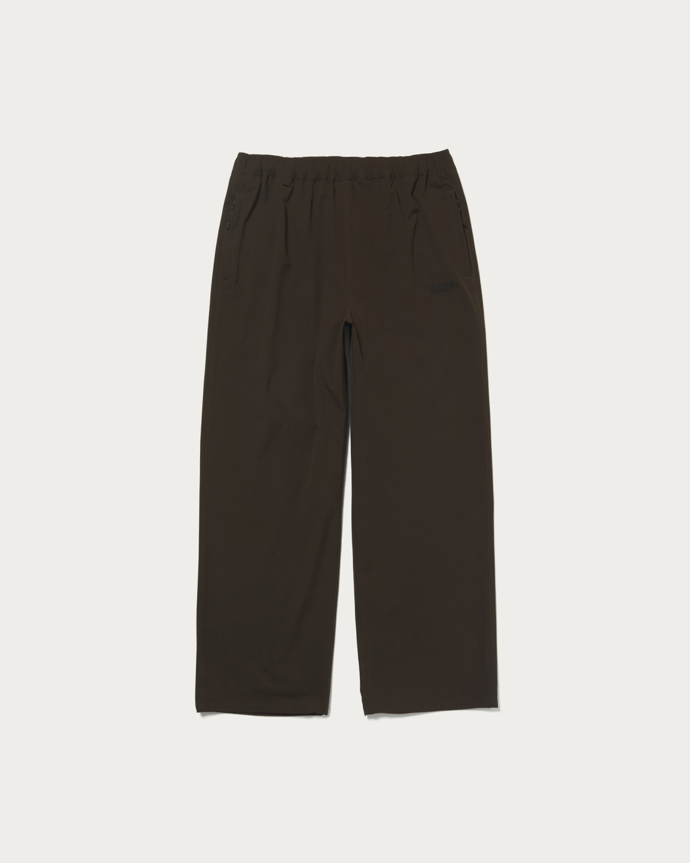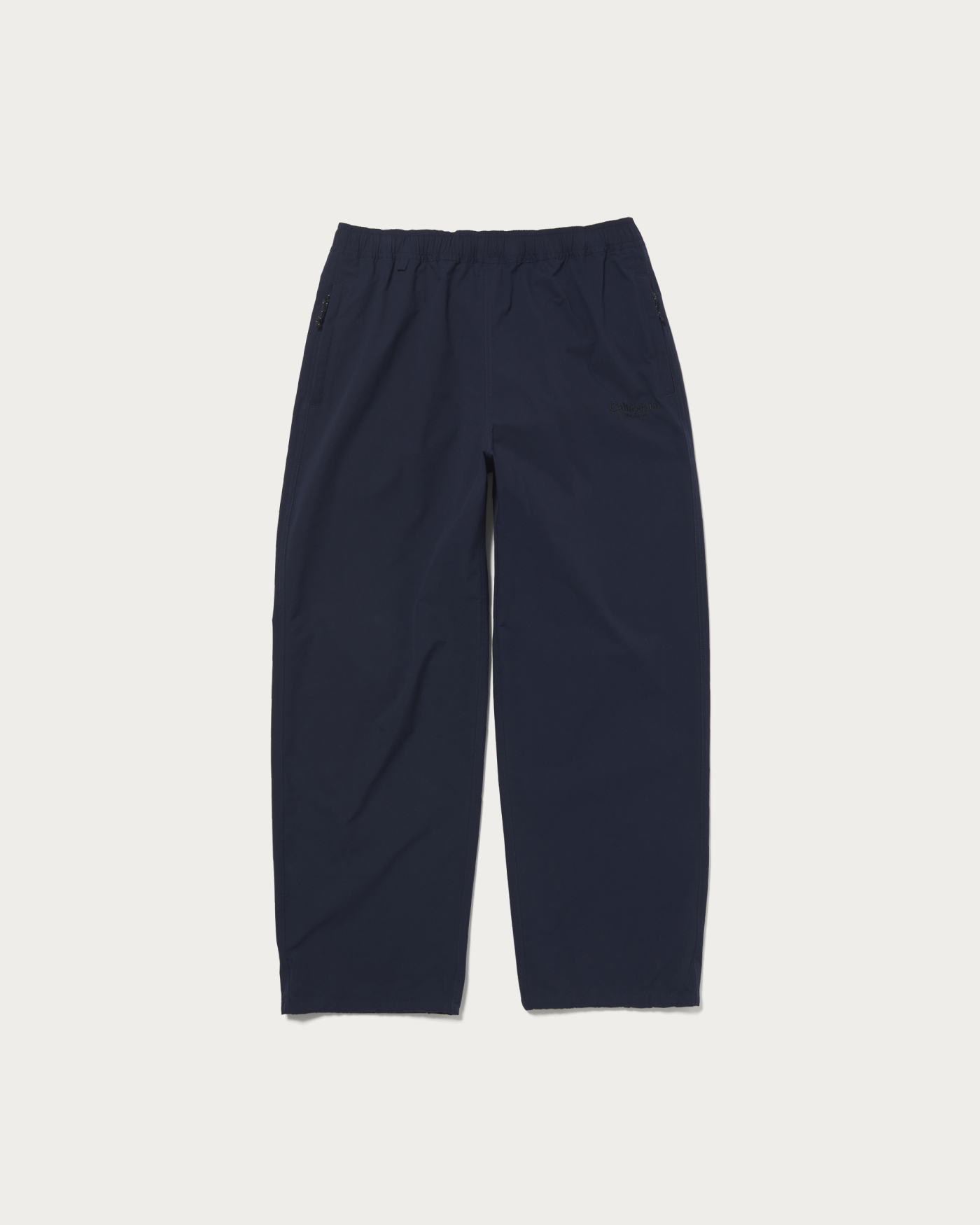 「PERTEX UNLIMITED」のリップストップ素材(一部にリサイクルポリエステルを使用)のワイドストレートトラックパンツです。アクティブシーンにも活躍。裾のゴムストリングで、シルエットを変えてアレンジも楽しめます。左ポケット位置に配したショップロゴの刺繍もワンポイントに。ユニセックスで着用頂けるアイテムです。