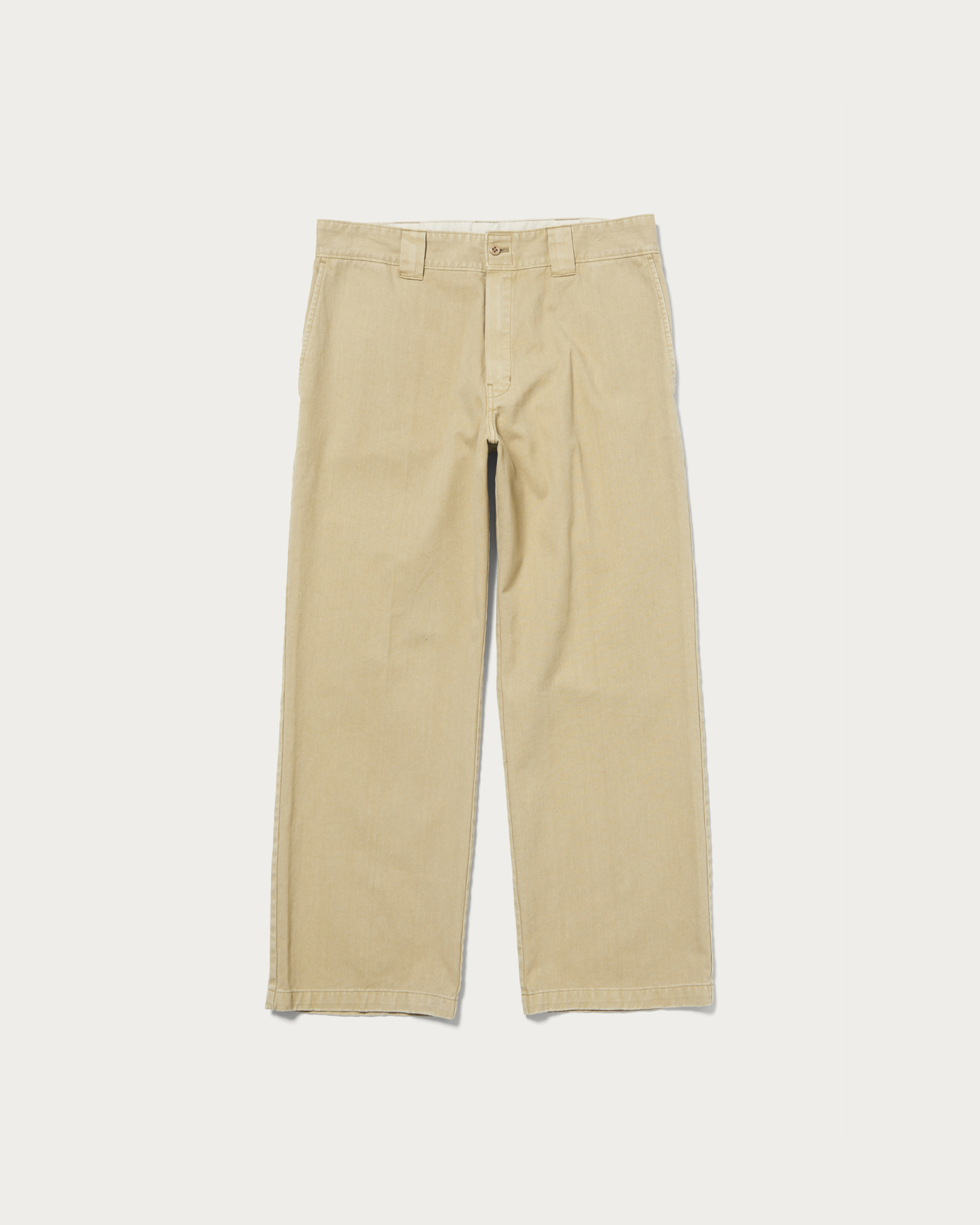 〈Dickies〉の「875」をベースにした、ゆったりしたストレートシルエットが特徴のチノパンです。適度なダメージ加工と、色落ち加工を施し、古き良き時代のチノパンをイメージした商品に仕上げました。後ろポケット部分には〈CGS.〉のロゴを刺繍しました。