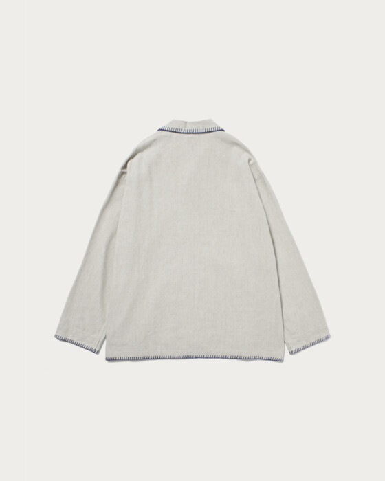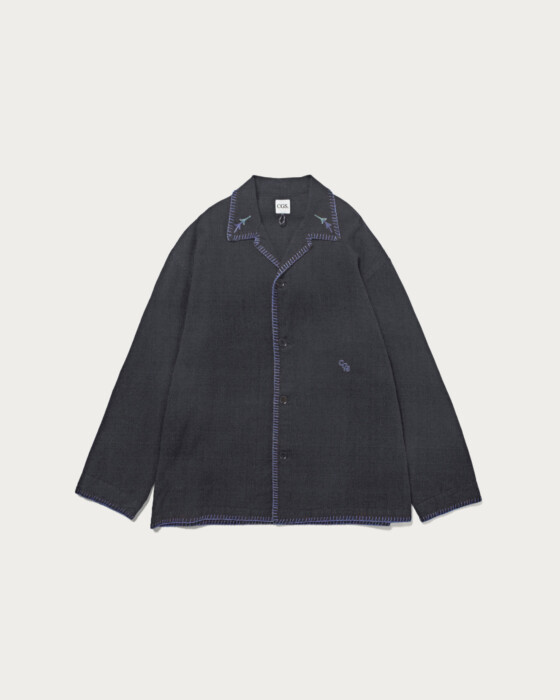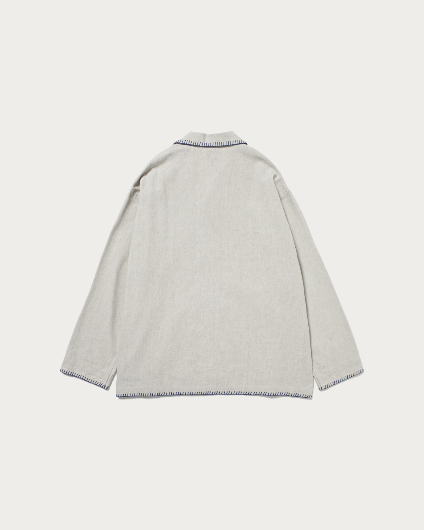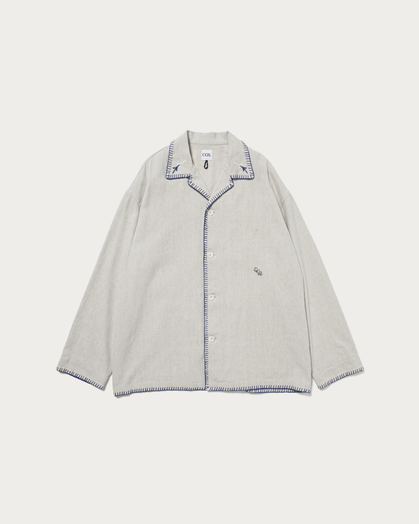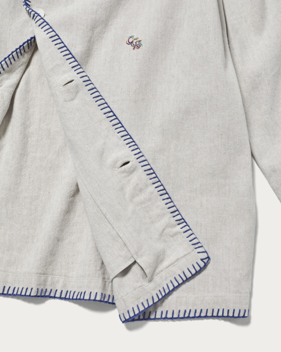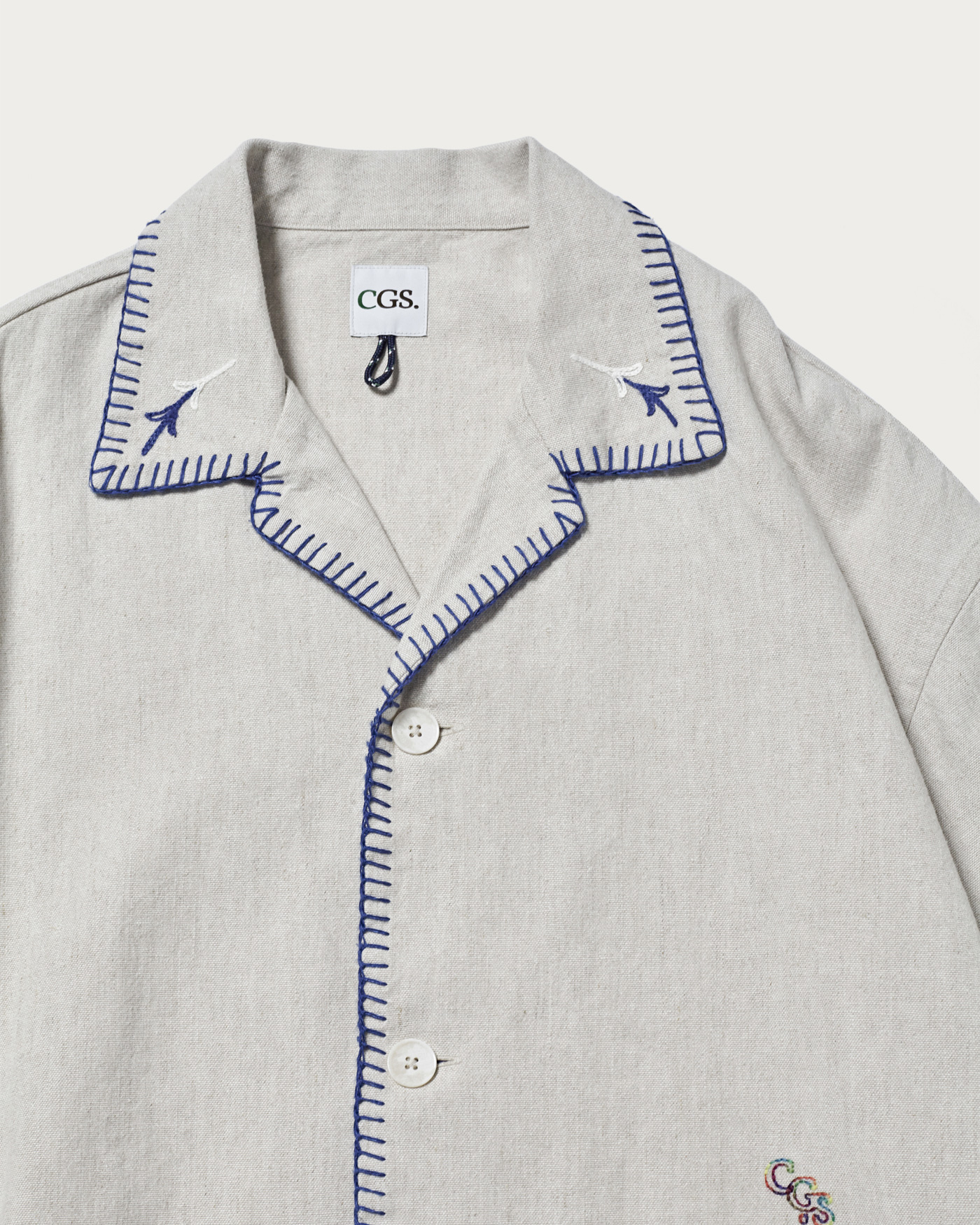 やや厚手のリネン、コットン混の平織り生地のオープンカラーシャツ。ファッション感とリラックス感を両立させたほど良くゆとりのあるシルエット。刺繍を施すことで、遊び心を感じさせるアイテムに仕上がりました。ユニセックスで着用いただけて独特な存在感を放ち、装いに特別な雰囲気を持たらせてくれます。