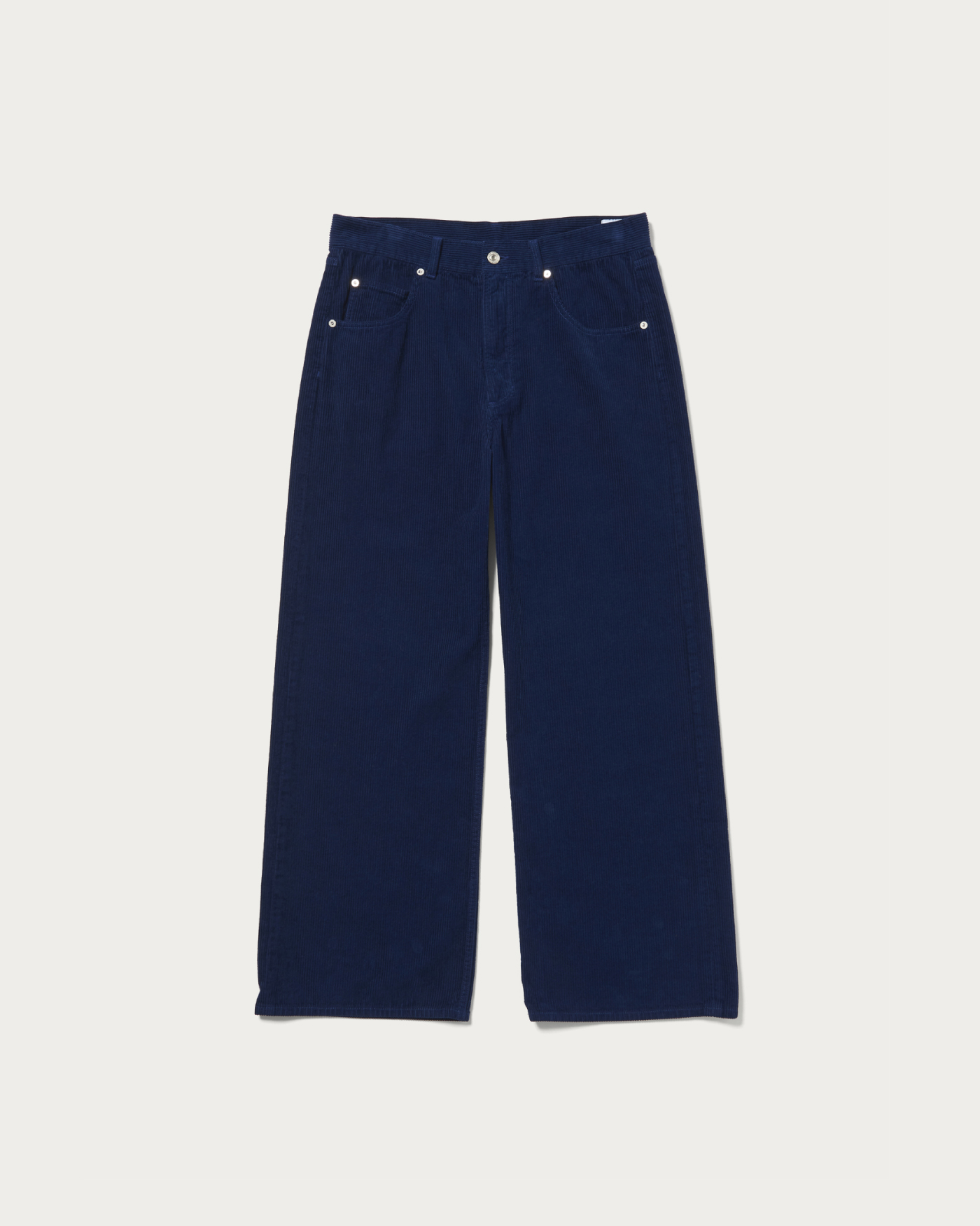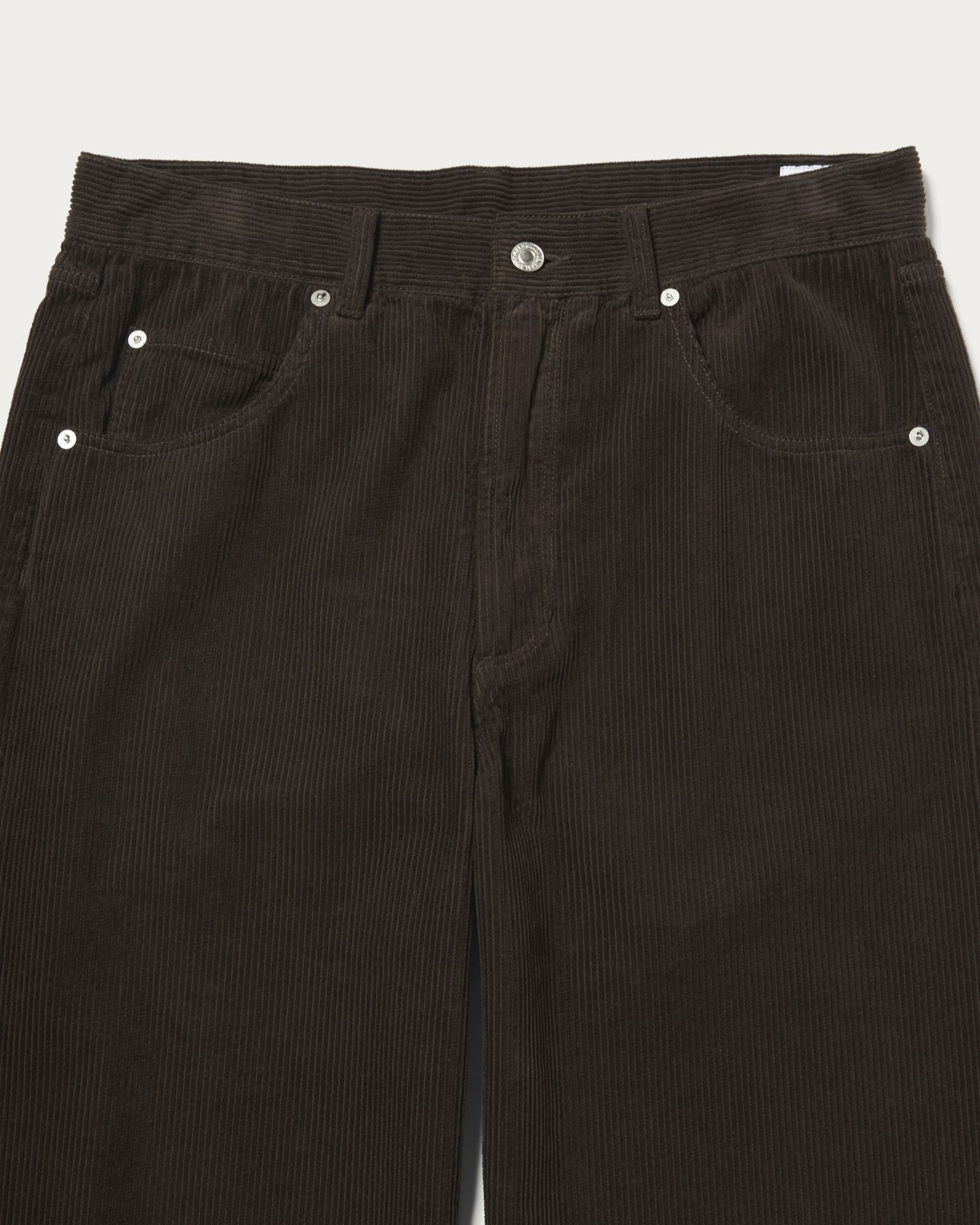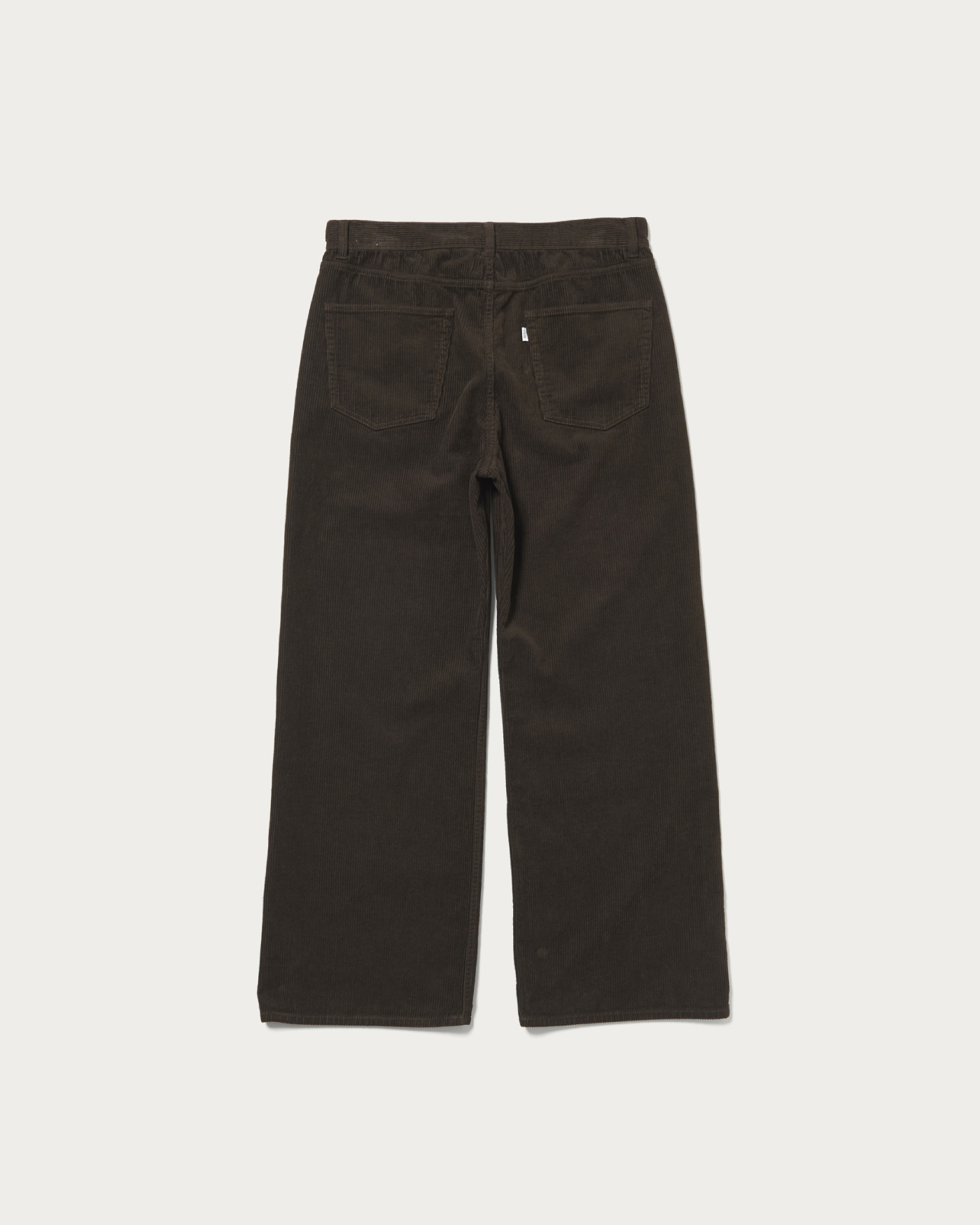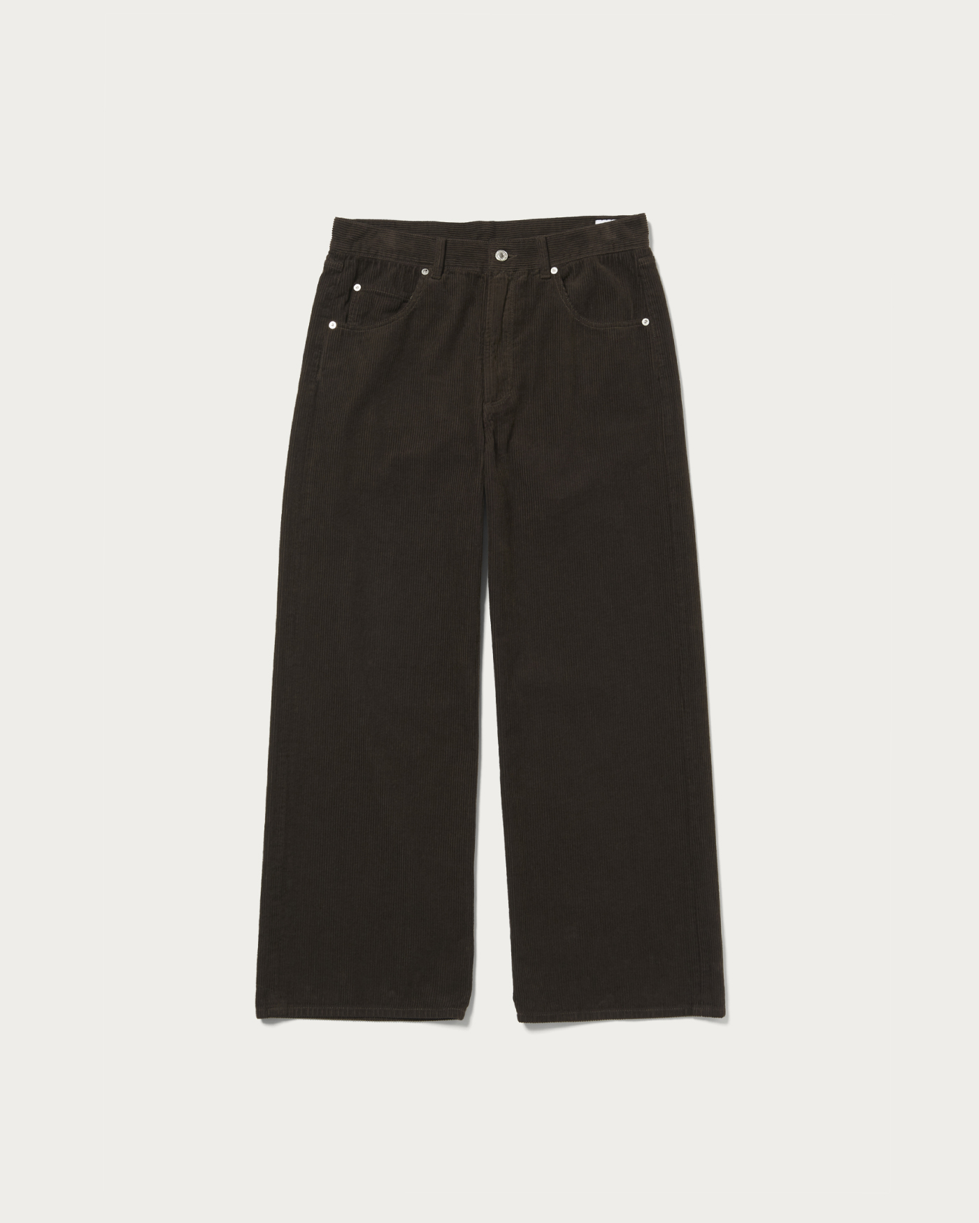 太畝コットンコーデュロイを採用し、ゆったりとしたワイドシルエットながらも、ルーズになりすぎない絶妙さが魅力のバギーパンツです。膝から裾にかけての幅が同寸なので若干フレアに見えるのもポイントです。着回しやすく様々なスタイルにも活躍してくれるアイテムです。