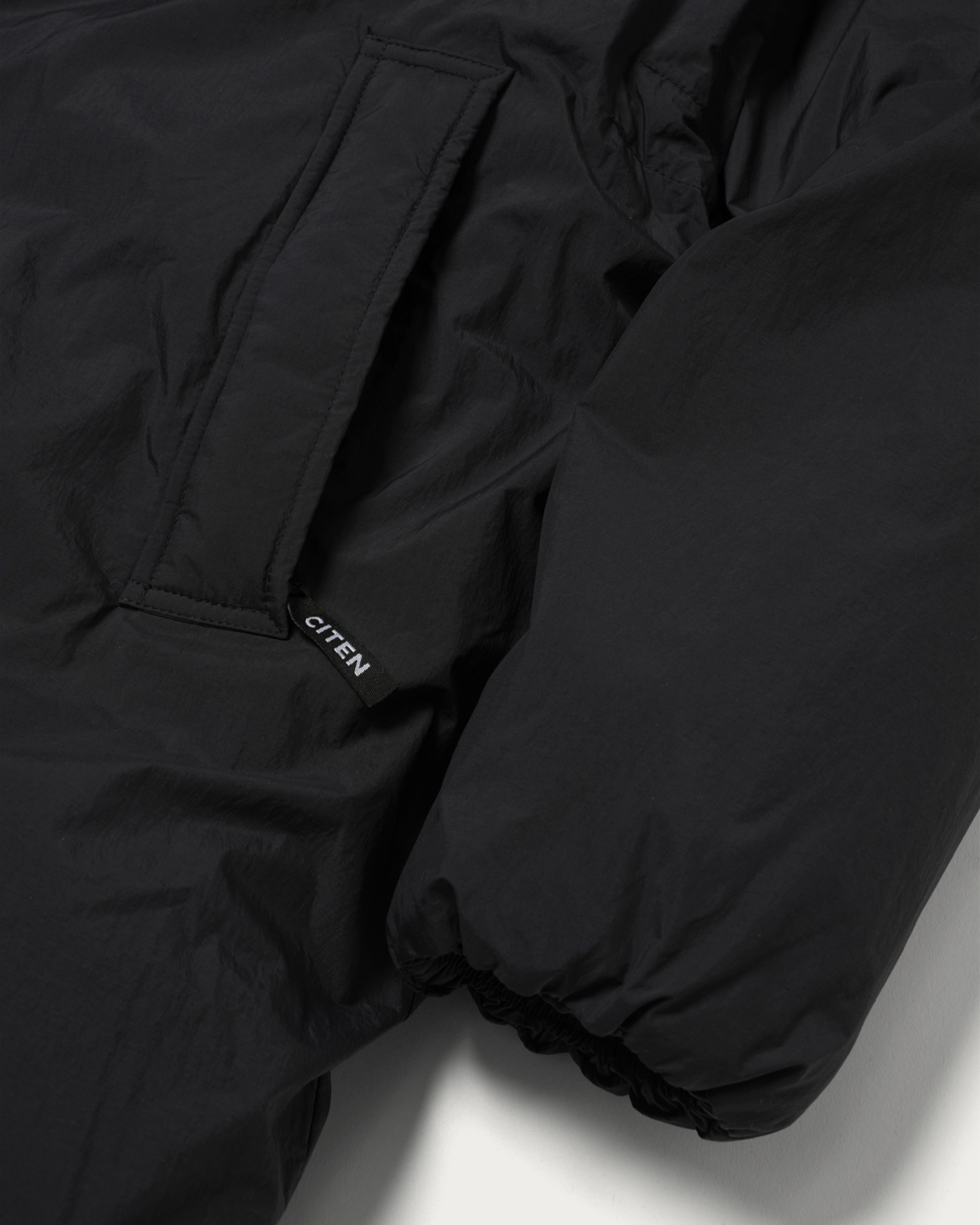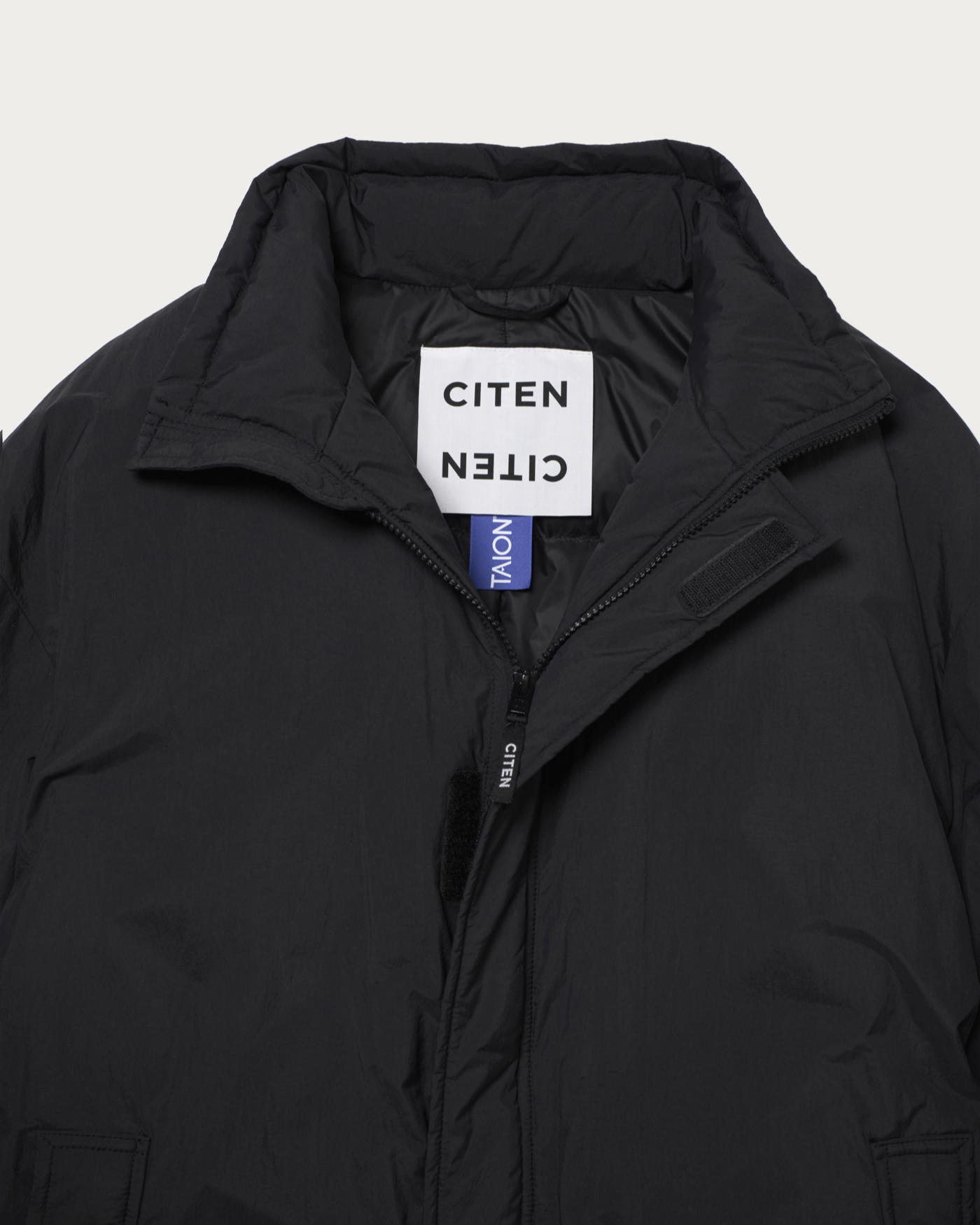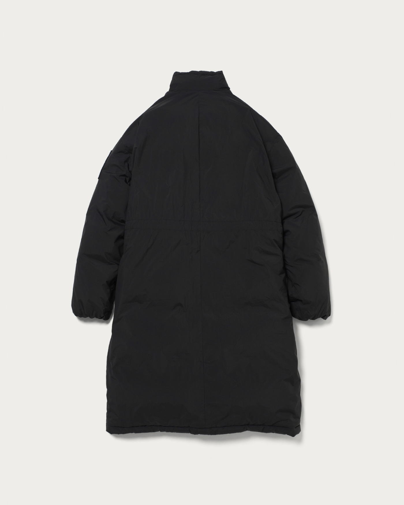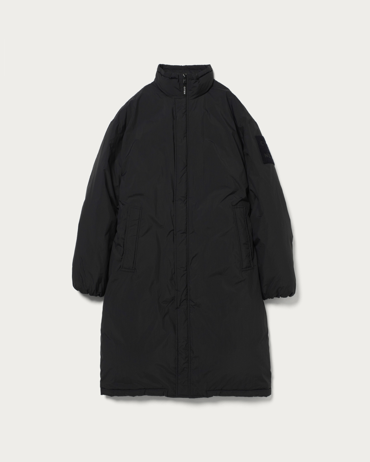 モンスターコートから着想を得て現代的なシルエットで別注したダウンコート。独特なタッチ感のある撥水機能付きのナイロン素材を採用。ダウンには800フィルパワーのホワイトダックダウンをふんだんに使用し、ボリューミーな見た目に反して実用性のある軽さが特徴です。
