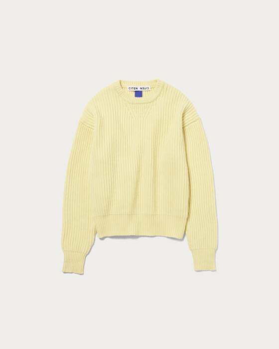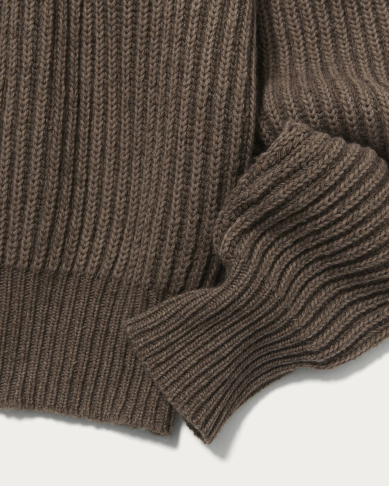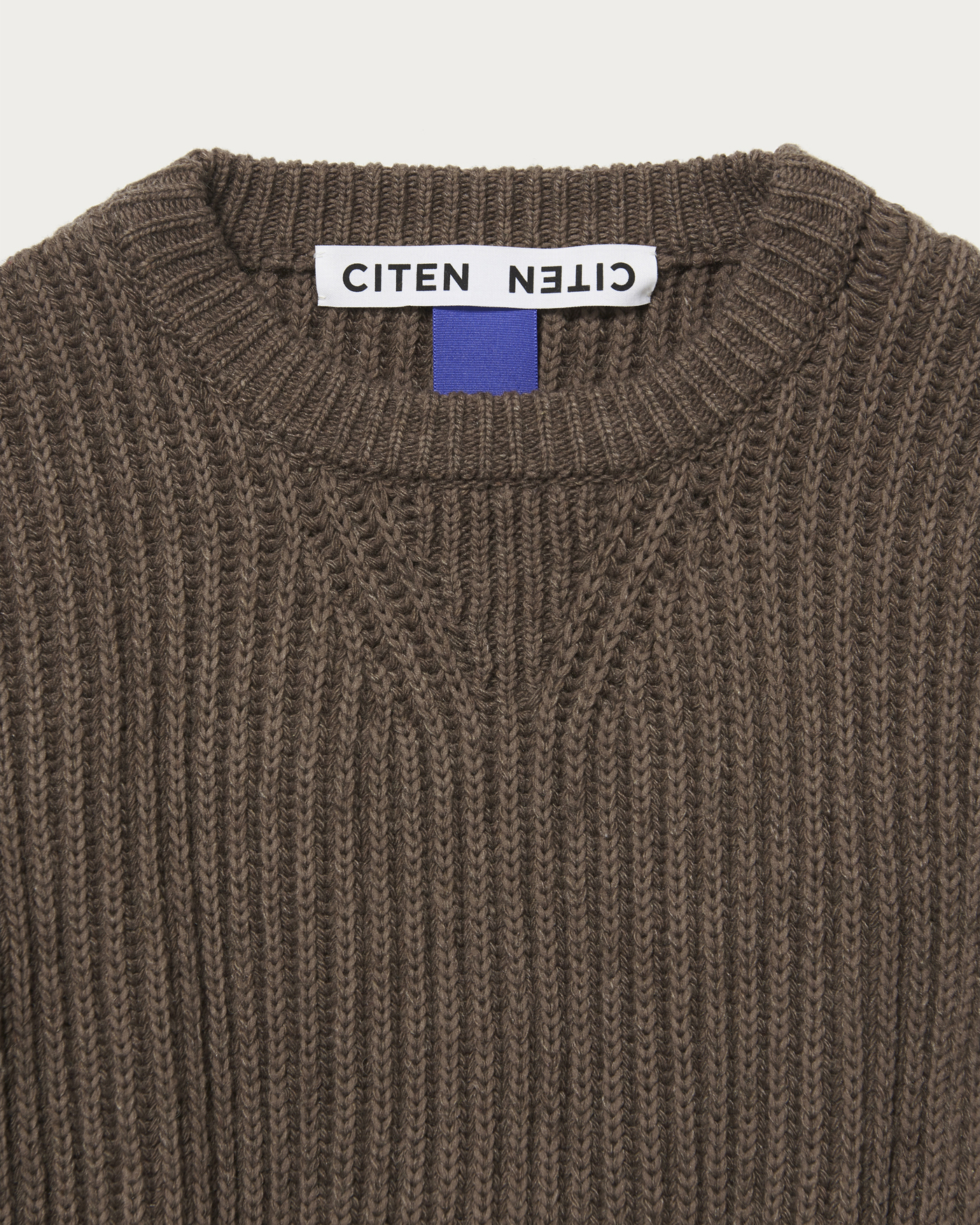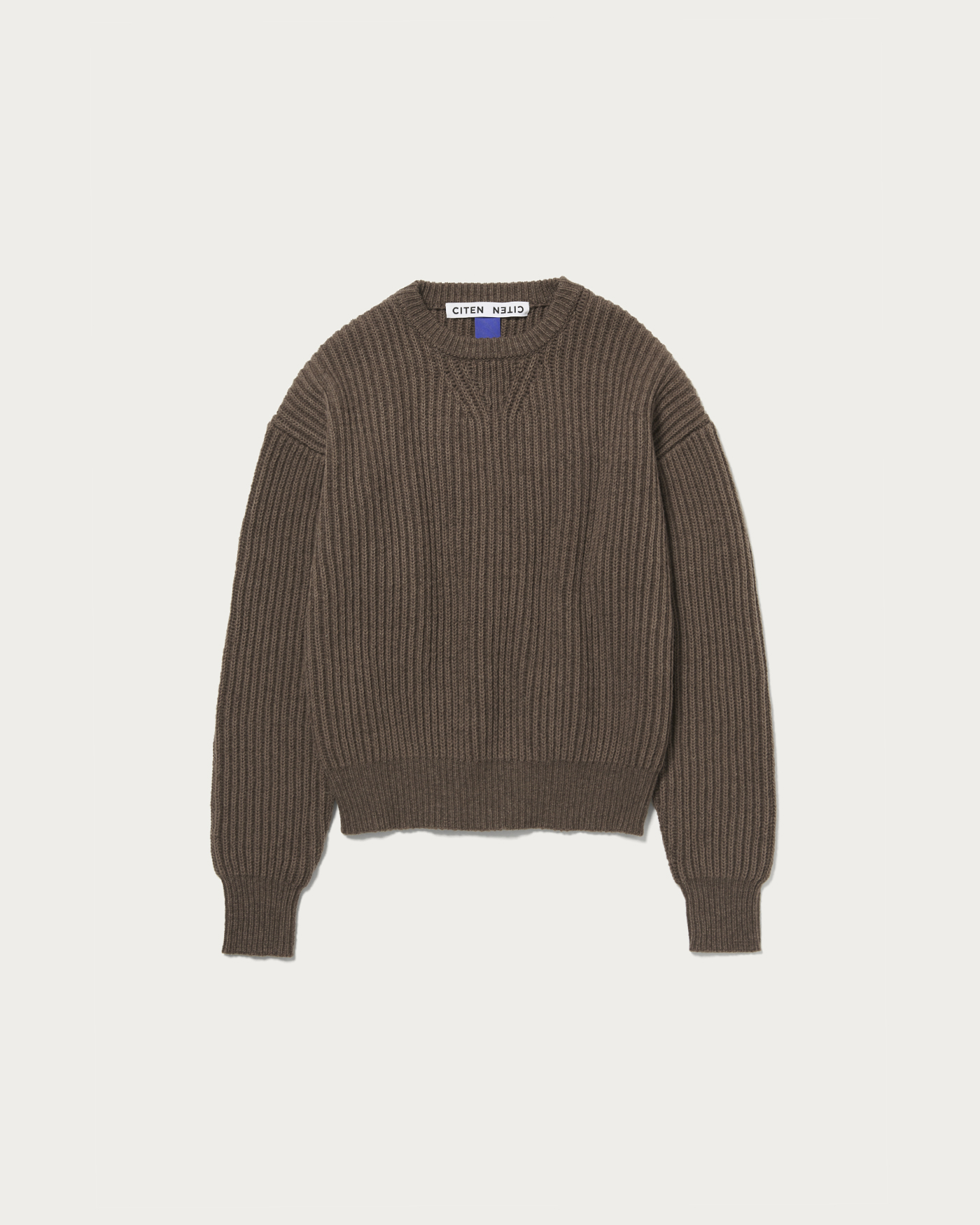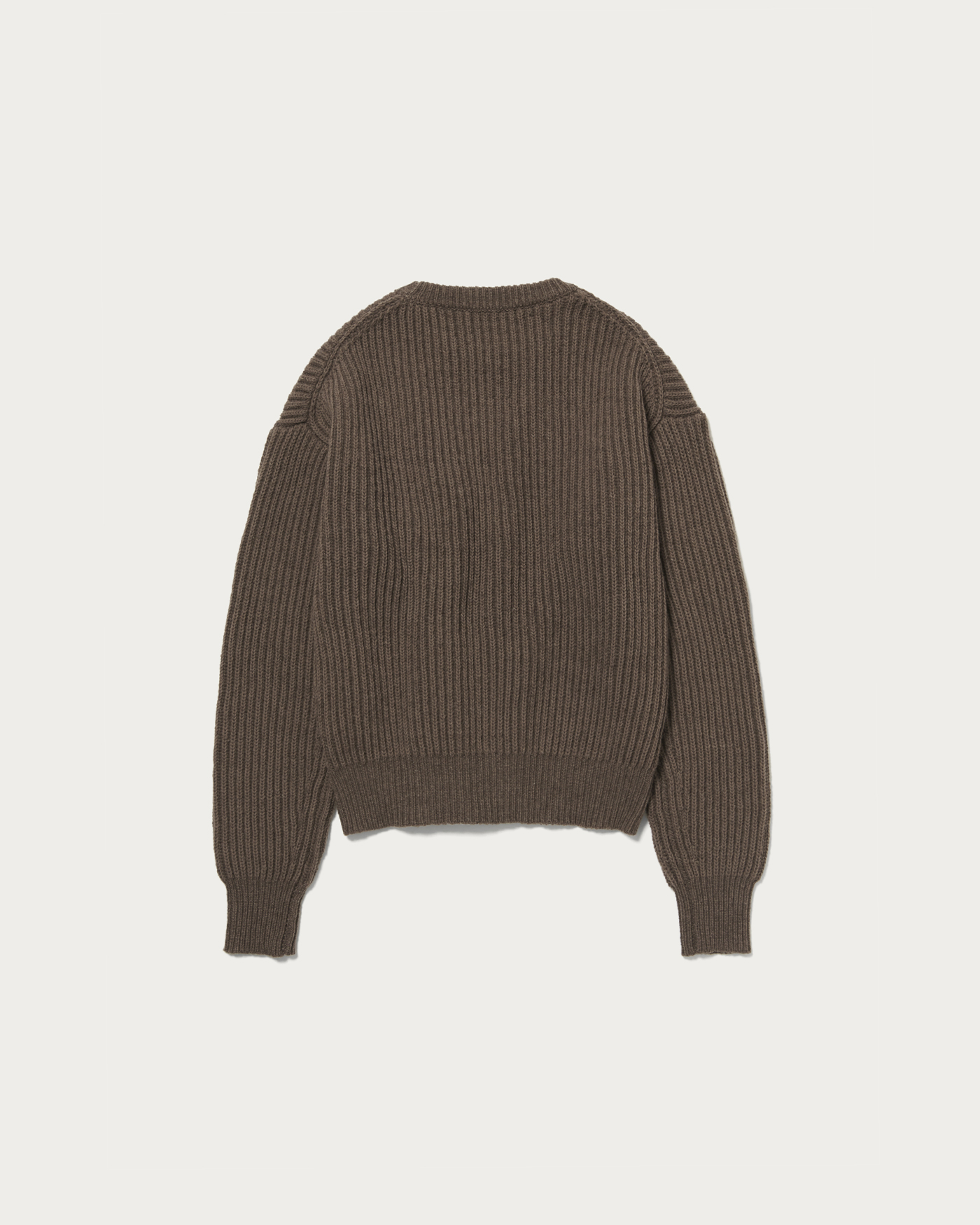 やわらかい風合いのウールブレンド素材を使用した畦編みニット。スウェット感覚で着られるようリラックスシルエットは意識しつつややコンパクトに仕上げました。Vガゼットをニットの編み方で表現しているのがポイントです。