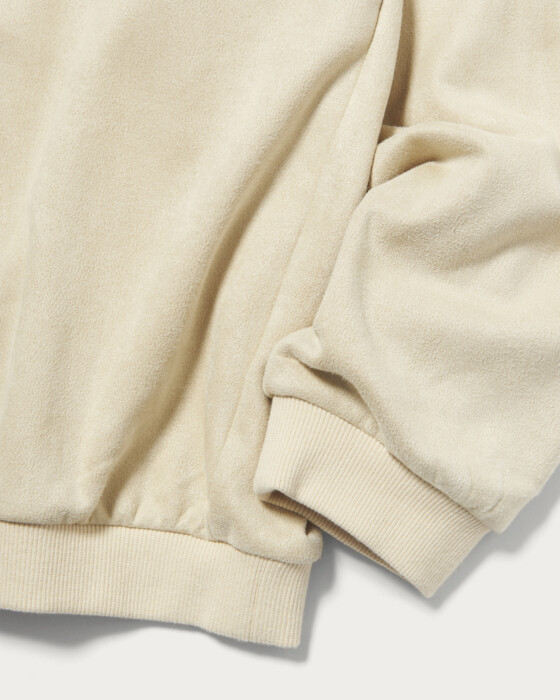 裏面をフリース素材にしたカットソー素材を採用したプルオーバーシャツ。丸みのあるリラックスさを残しながらコンパクトなシルエットを意識しました。ステッチが極力見えないような縫製をし、クリーンな仕上がりになっています。