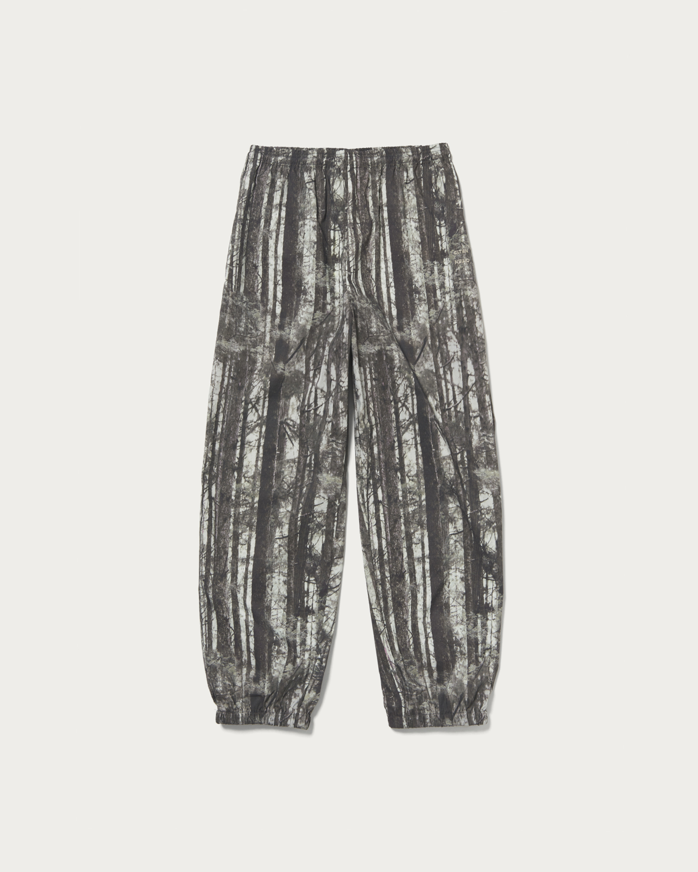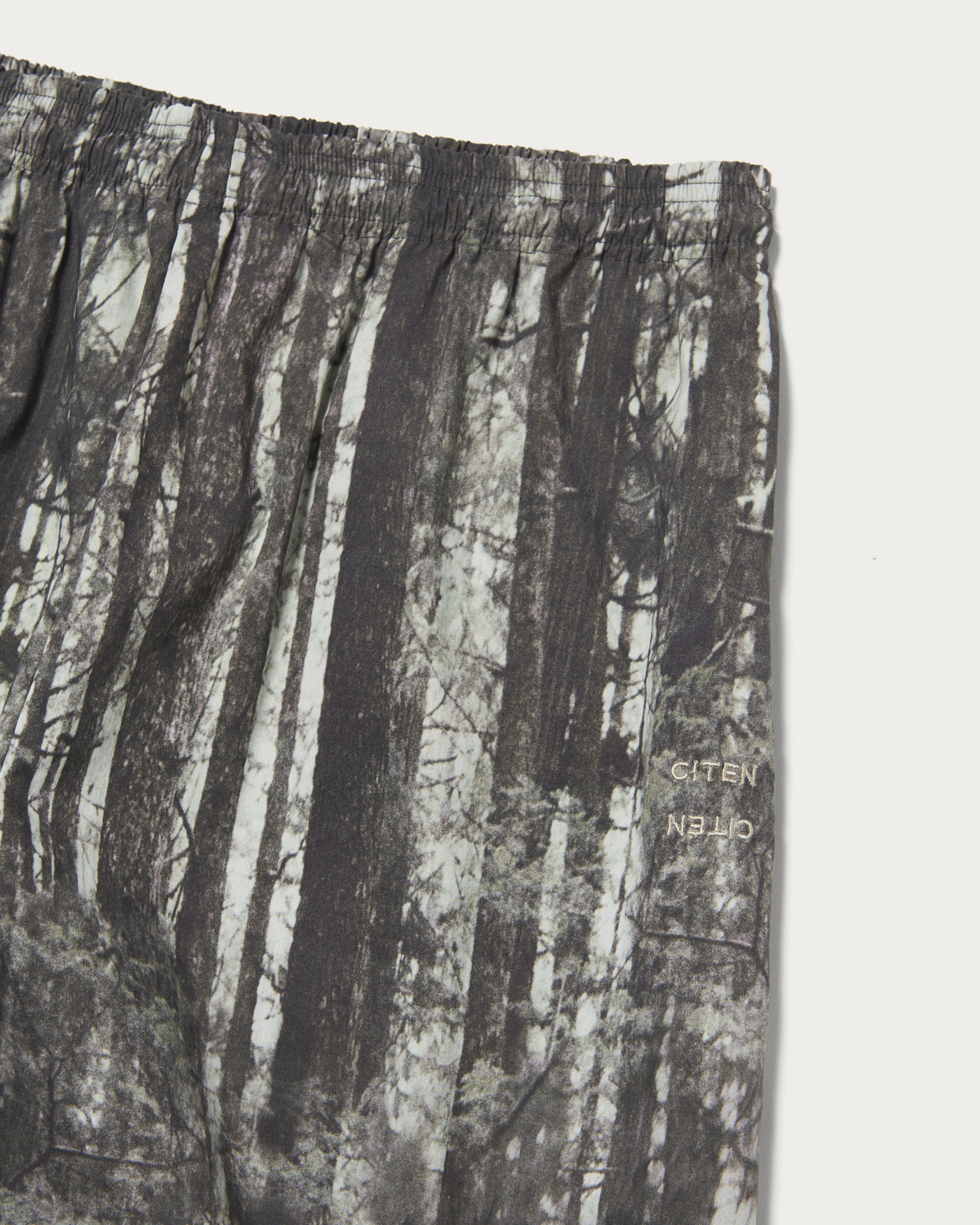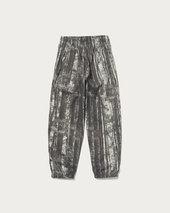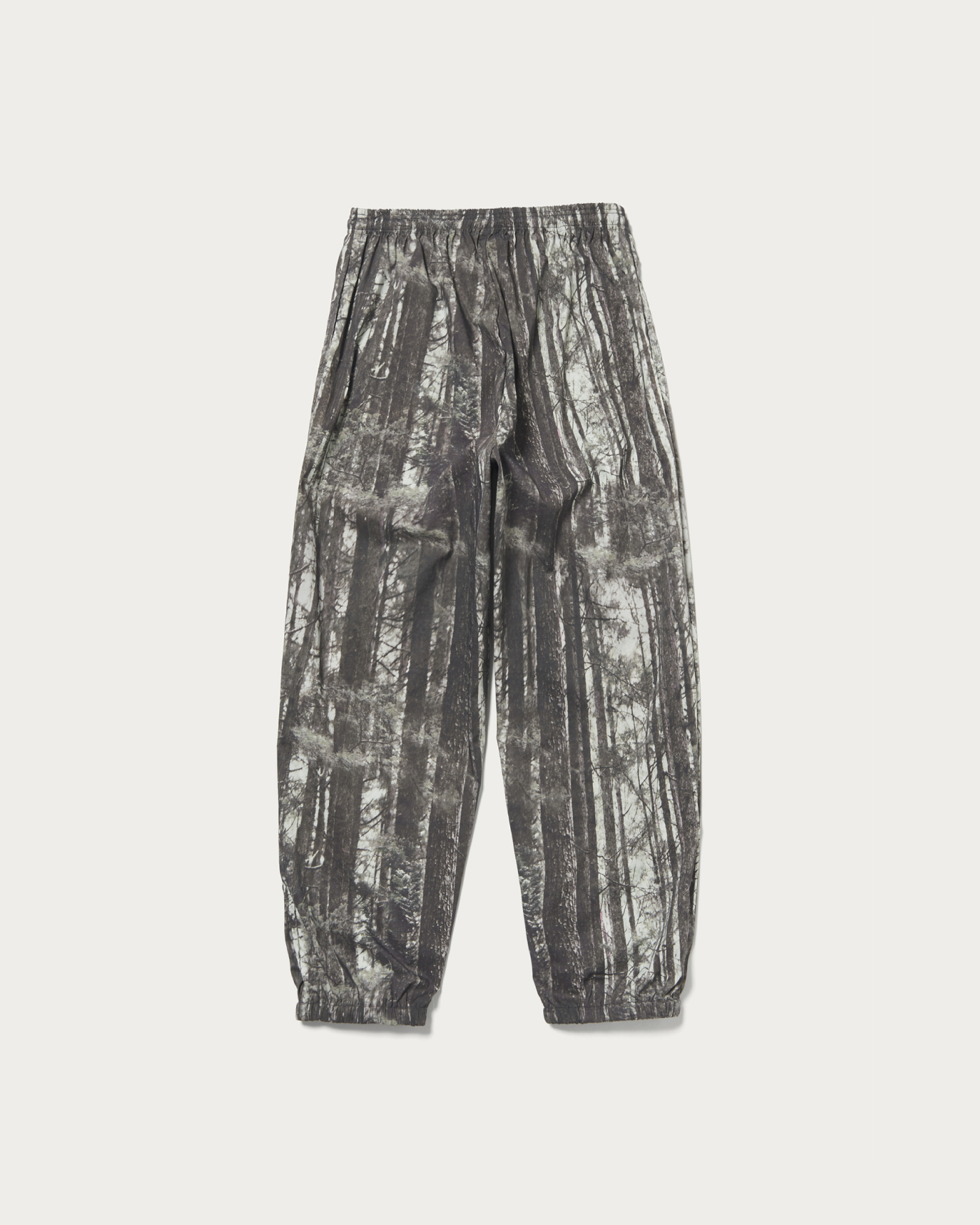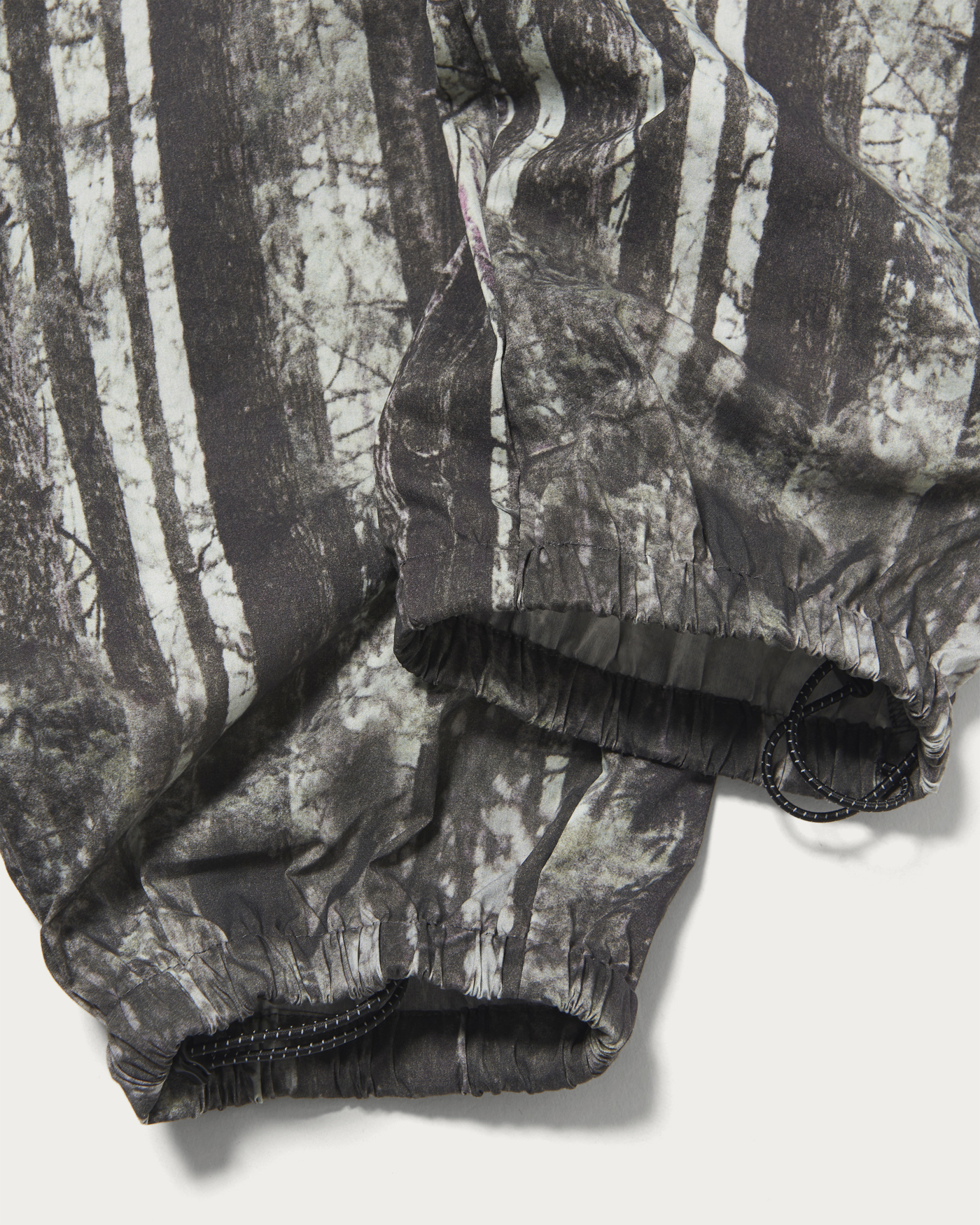 定番のスウェットパンツをベースに、よりイージーに履けるようワタリ部分とヒップにゆとりをもたせたツリーカモ柄をプリントしたイージーパンツ。イエローのウエストのスピンドルや裾のリフレクターコードなど随所にポイントとなる要素を入れています。