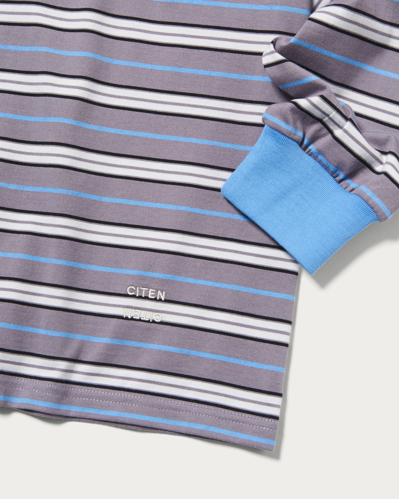 オリジナルデザインのボーダー生地を使用したロングスリーブTシャツ。手持ち感のあるしっかりとした生地は1枚でもサマになる様に絶妙に調整されています。
