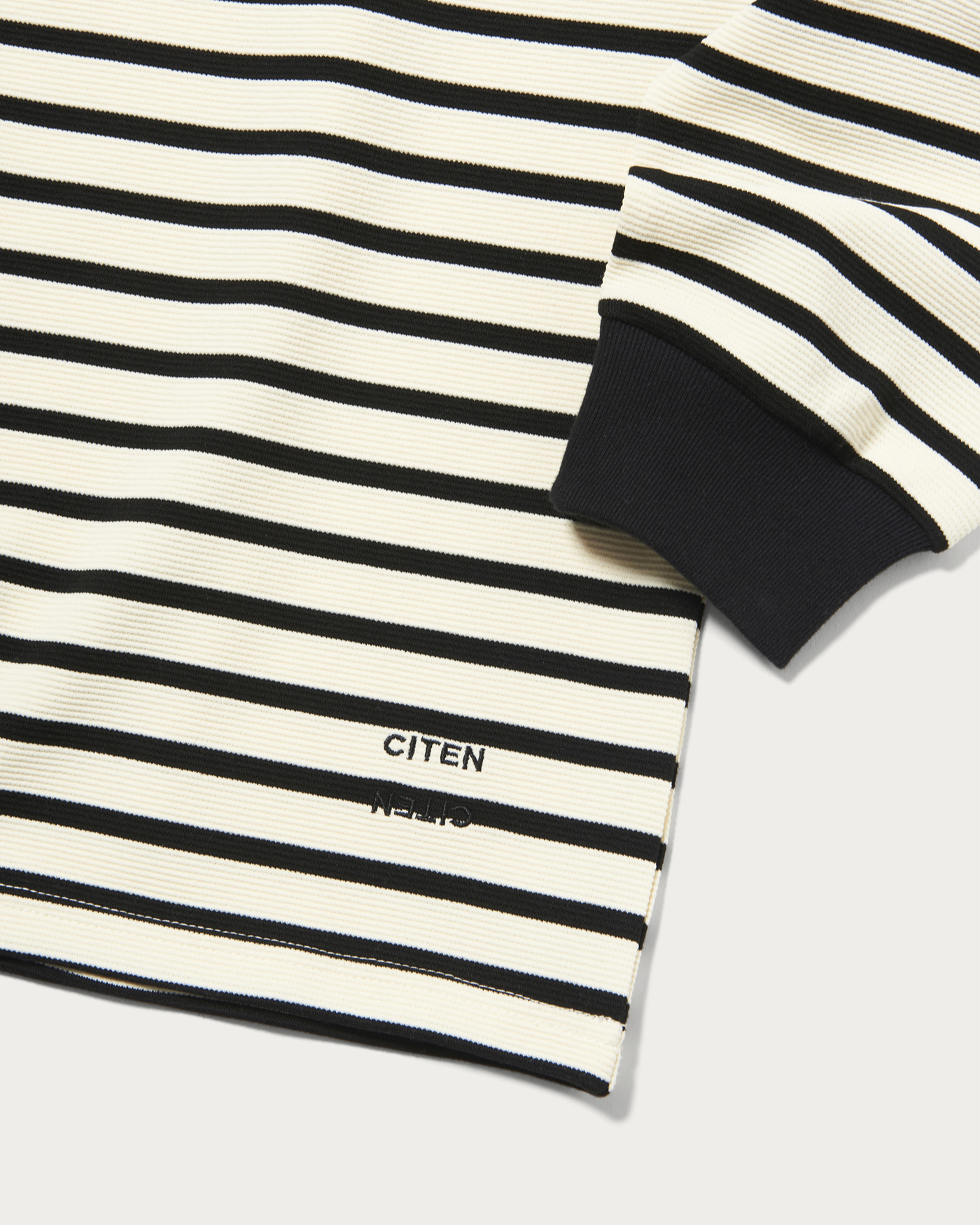 立体感のあるボーダーが特徴のロングスリーブTシャツ。リブをブラックにする事で締まった印象になるよう仕上げました。ボーダー柄の中に入った裾のCITEN刺繍もさりげないデザインポイントです。