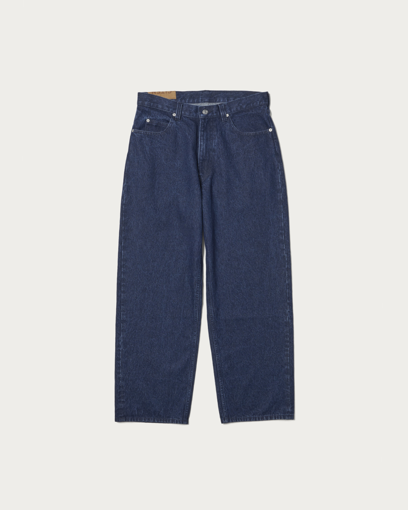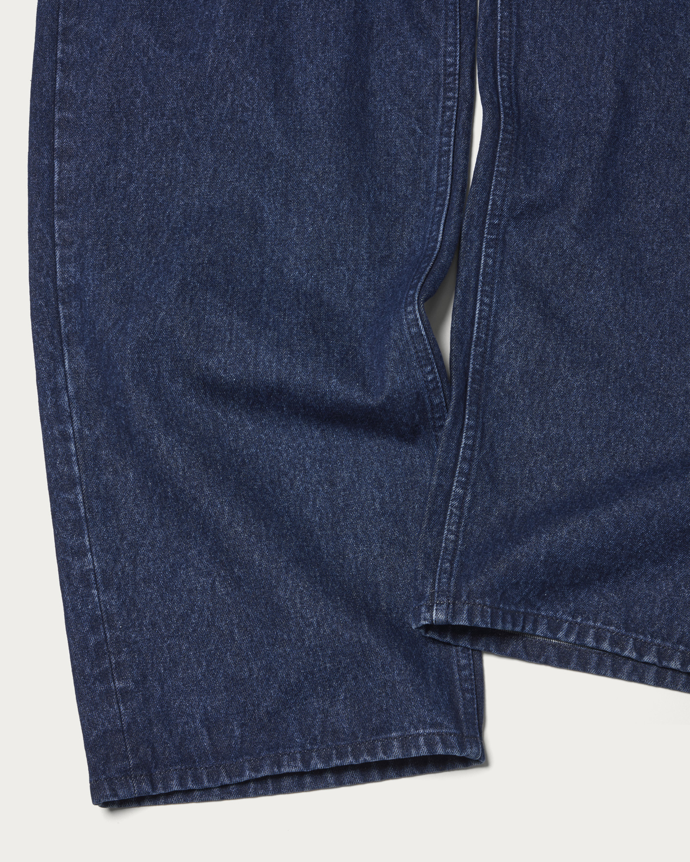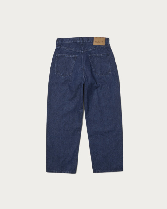 12オンスのシボ感がある特徴的なデニム生地を使用したバギーシルエットのデニムパンツ。ウェスト周りは少しタイトに設計し、股下をきれいなコクーンシルエットになるようにデザインしました。バックポケット上のCITENパッチも変更。同素材のジャケットをあわせセットアップとしても着用いただけます。