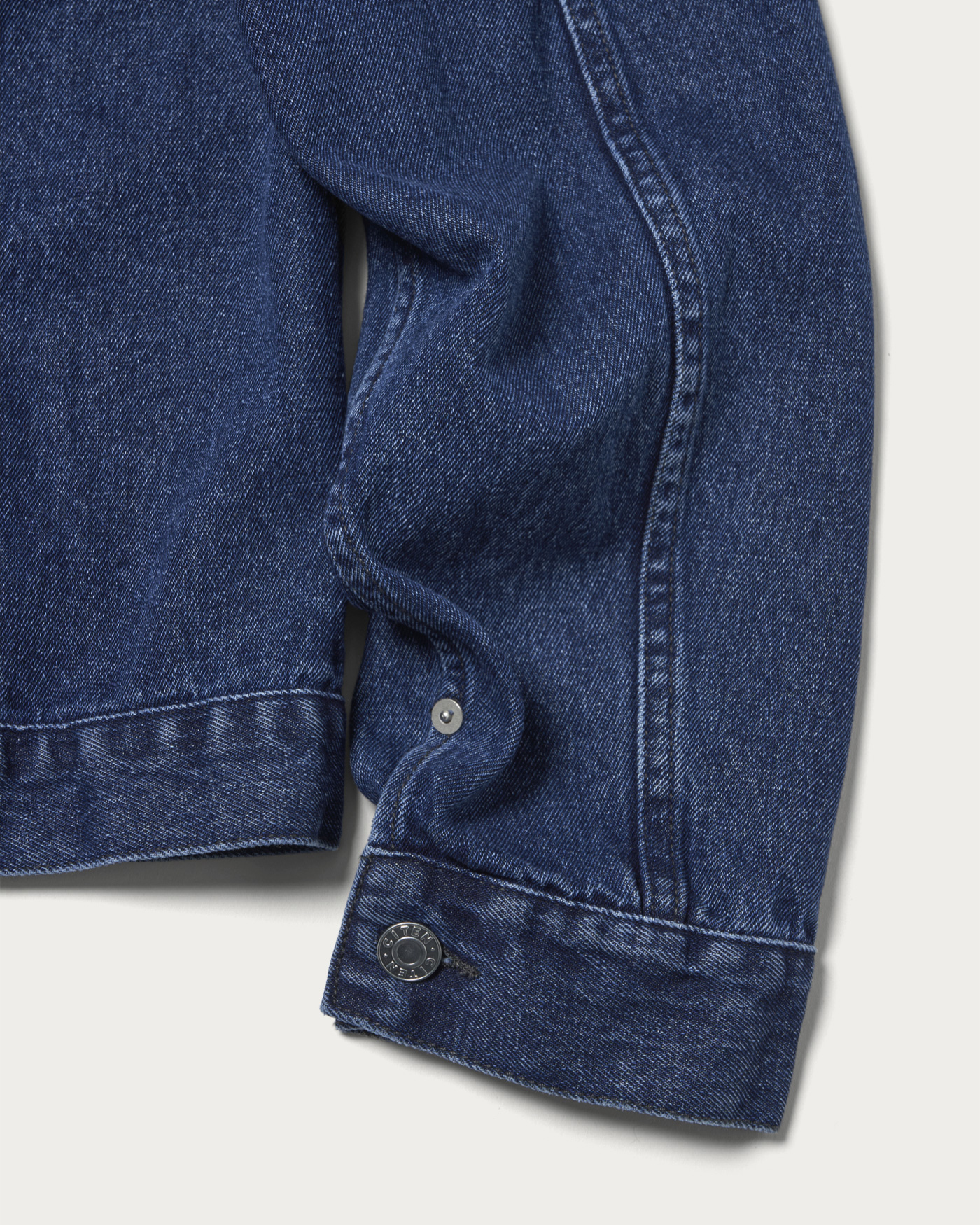 12オンスのシボ感がある特徴的なデニム生地を使用したデニムジャケット。袖のきれいな落ち具合や少し短くした着丈はレイヤードの幅を広げてくれます。同素材のパンツをあわせセットアップとしても着用いただけます。