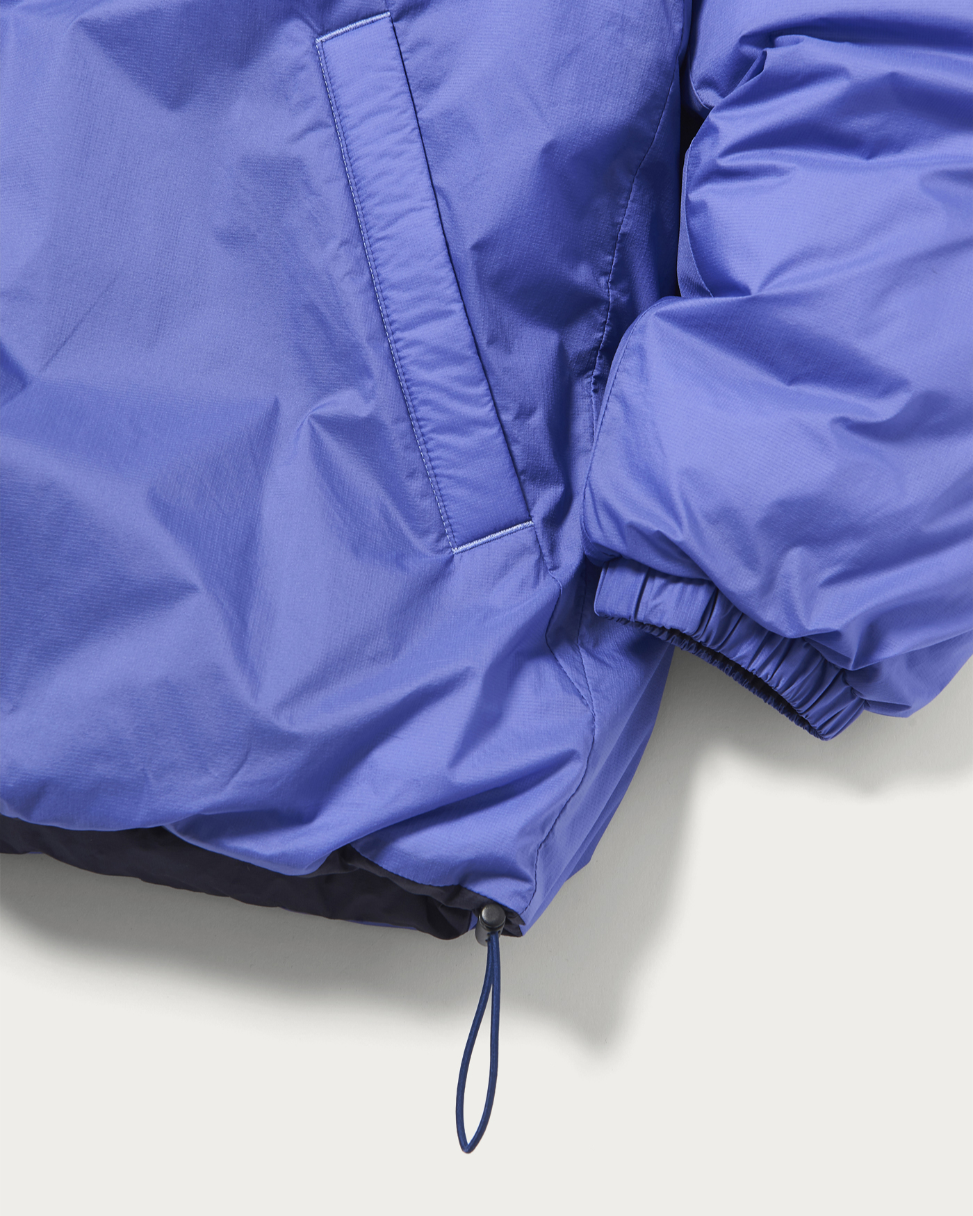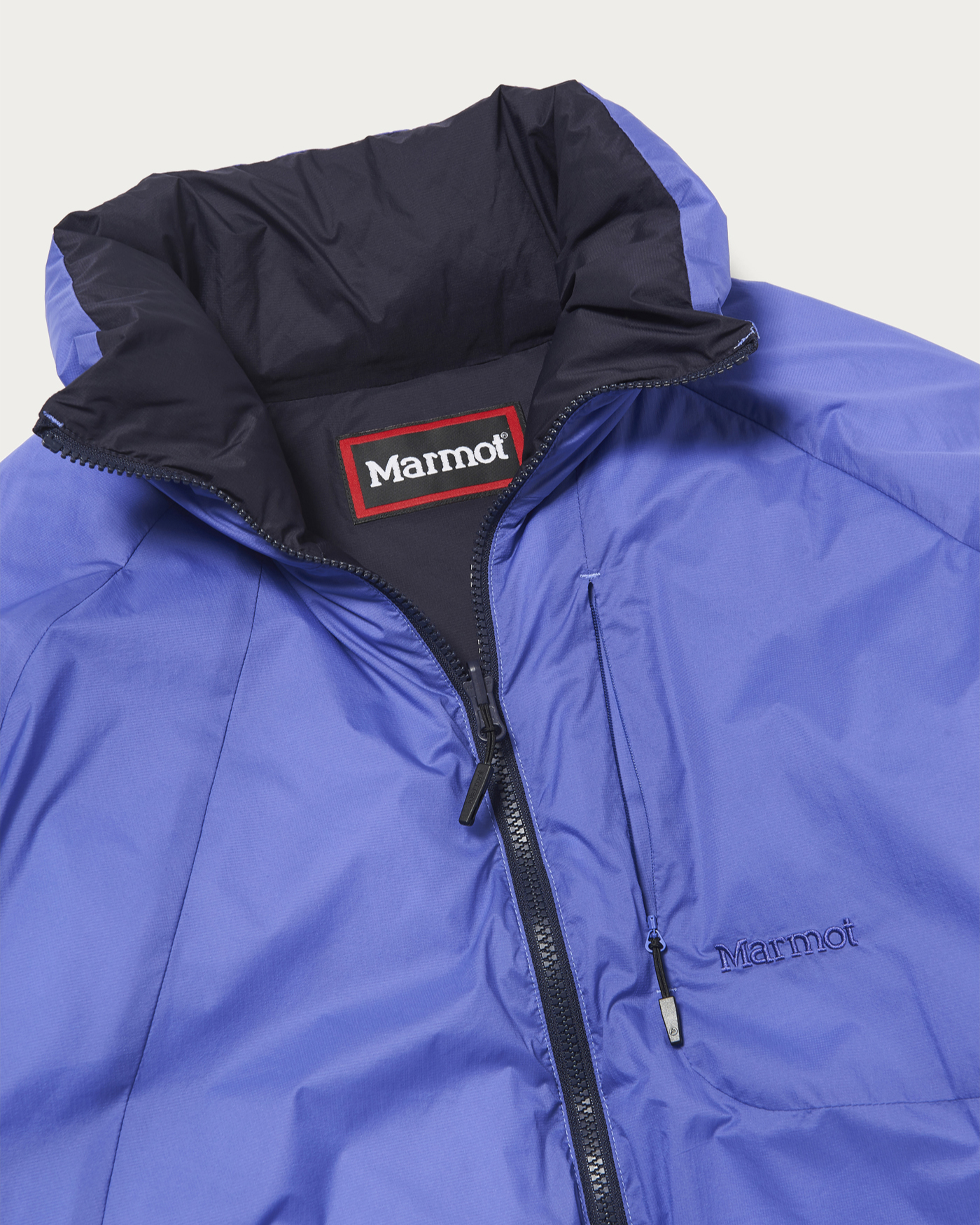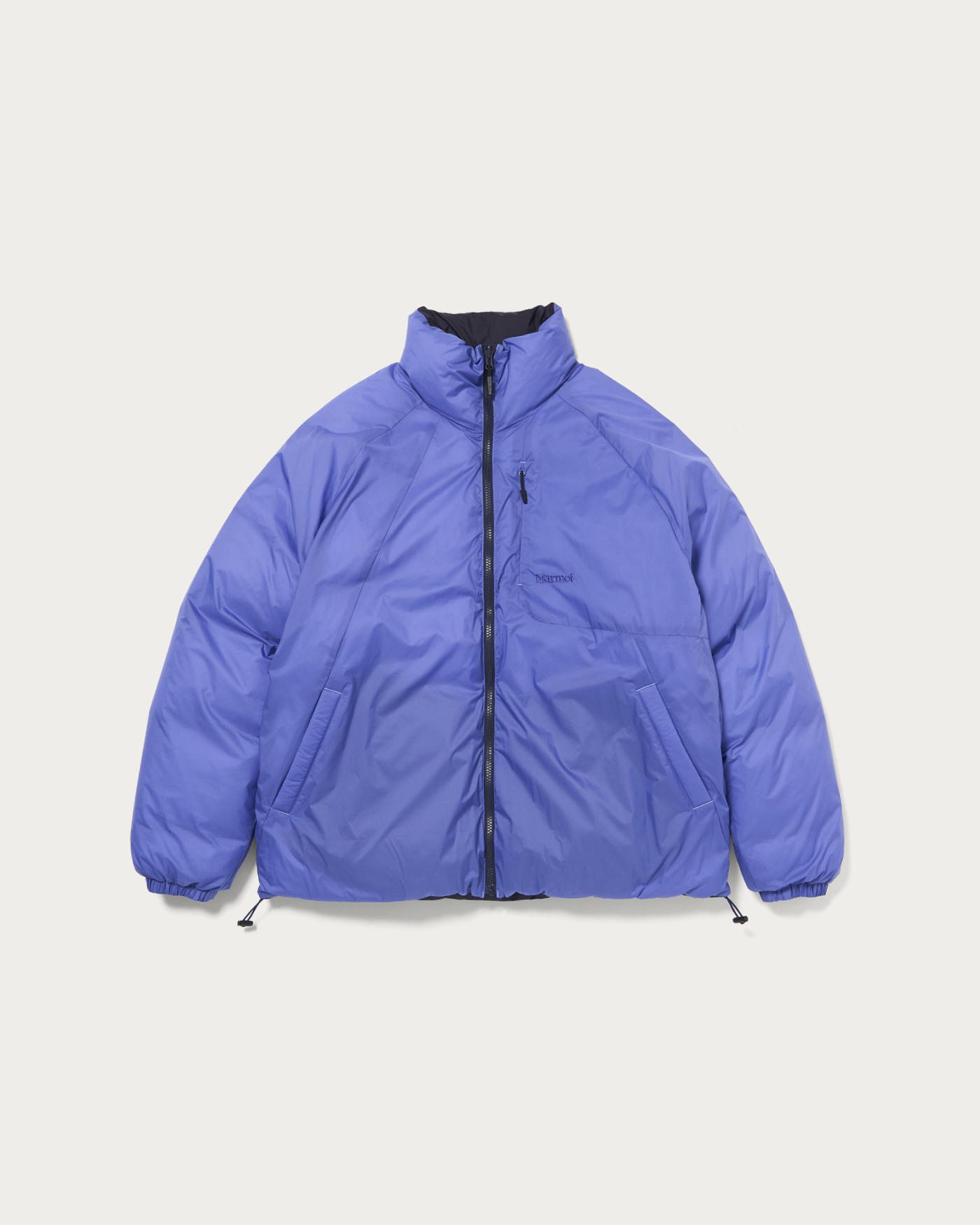 〈Marmot(マーモット)〉との別注企画。軽量ながら耐久はっ水性の高い15デニールナイロン生地を使用。750フィルパワー撥水ダウンを組み合わせ、水濡れを防ぎつつ高い保温性を実現。配色のリバーシブル仕様で、スタイリングに合わせた着こなしを楽しめる一着。