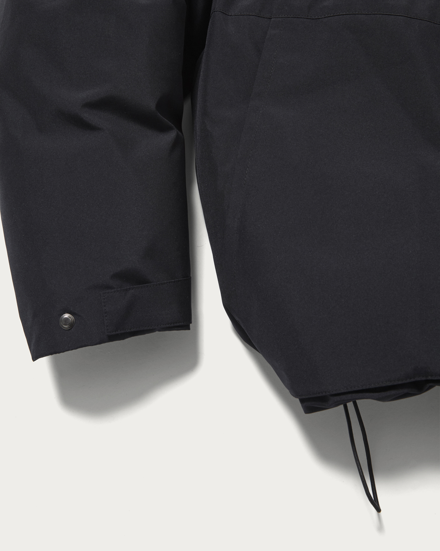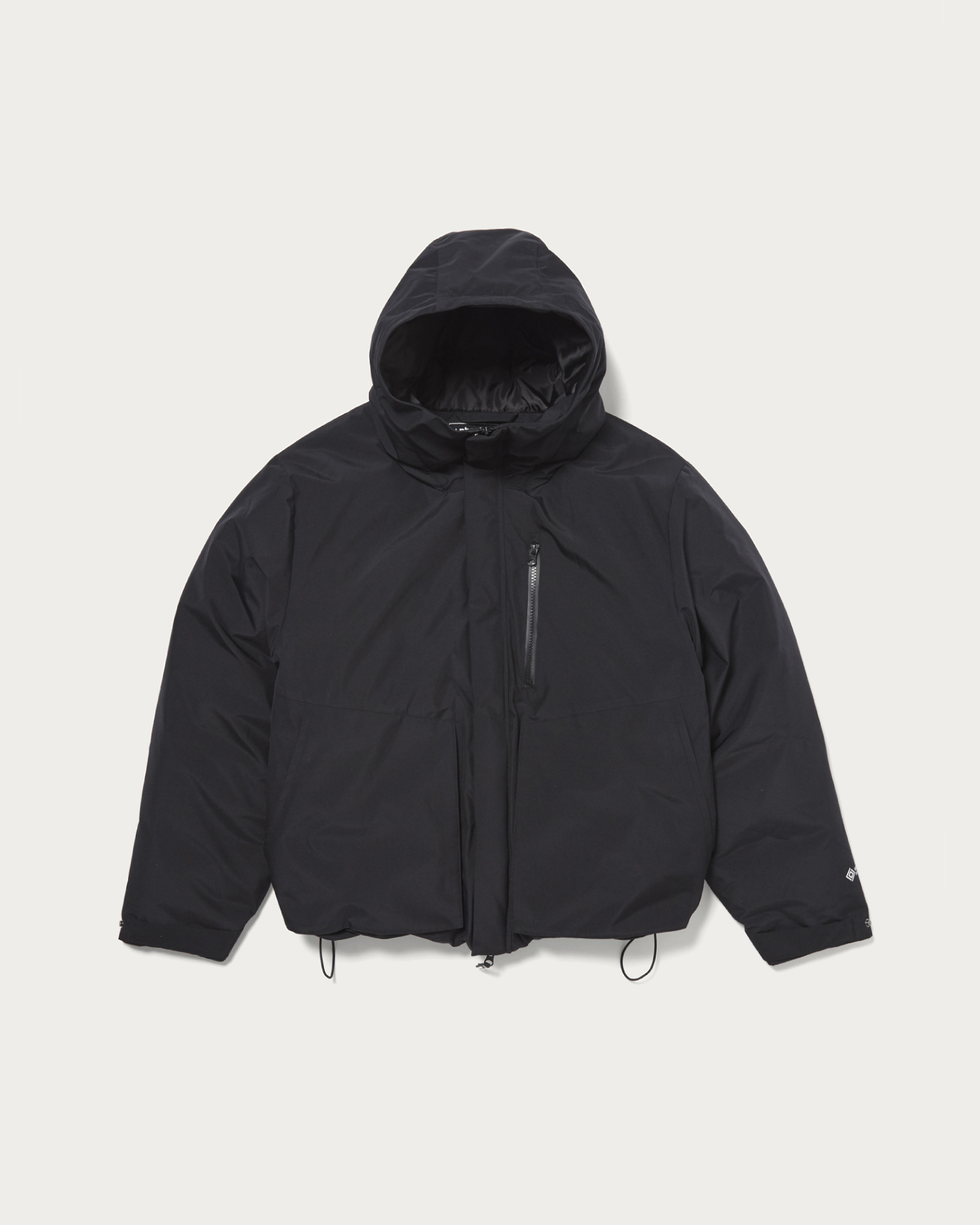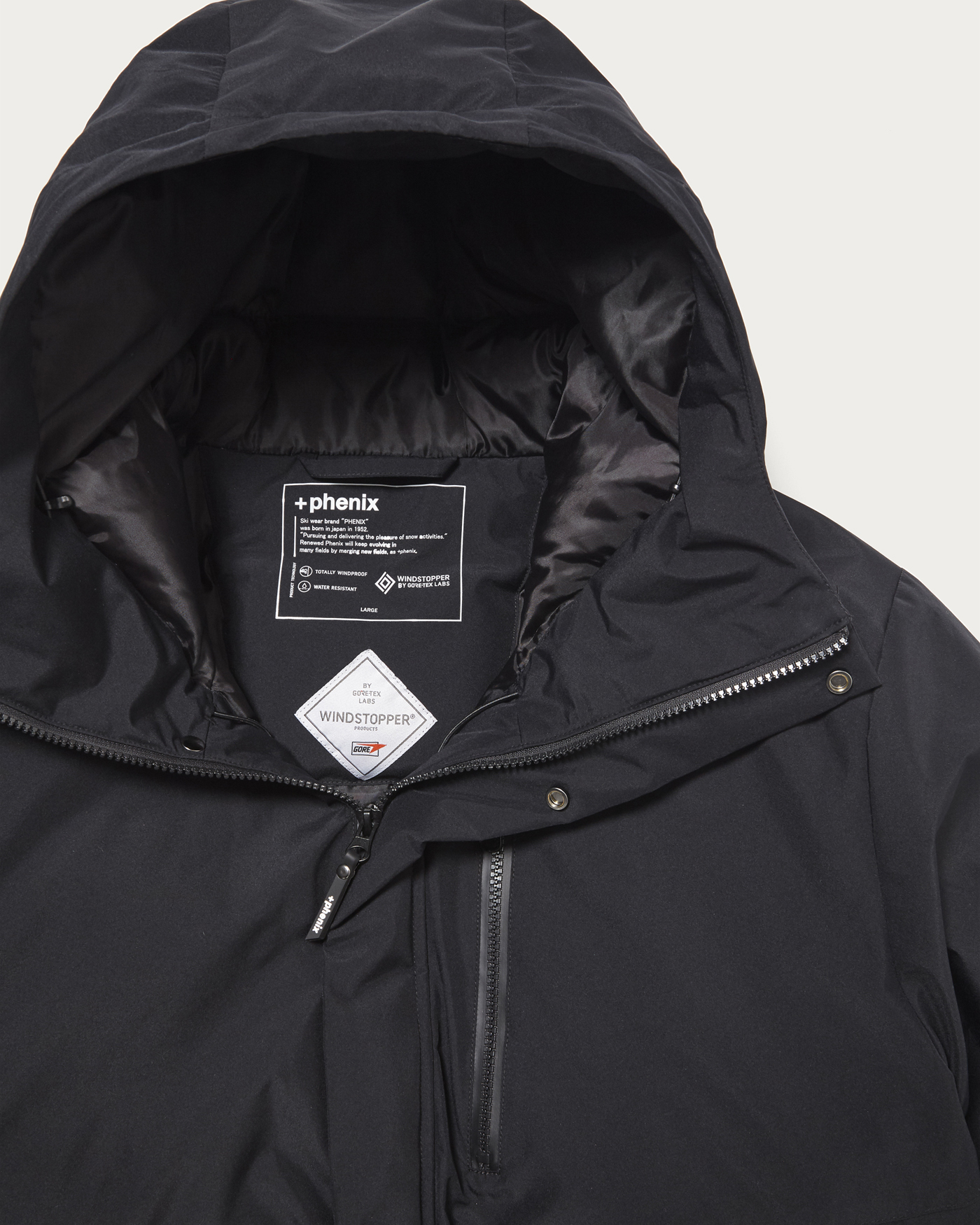 〈+phenix(プラスフェニックス)〉との別注企画。型から別注したフーデッドブルゾン型ダウンジャケット。表地にゴアテックス社のWINDSTOPPERを使用し、撥水性と防風性を兼備。シンプルにそぎ落としたディテールと表生地の素材感が調和し、都会的で洗練された印象を演出。機能性とデザイン性を両立させた一着。