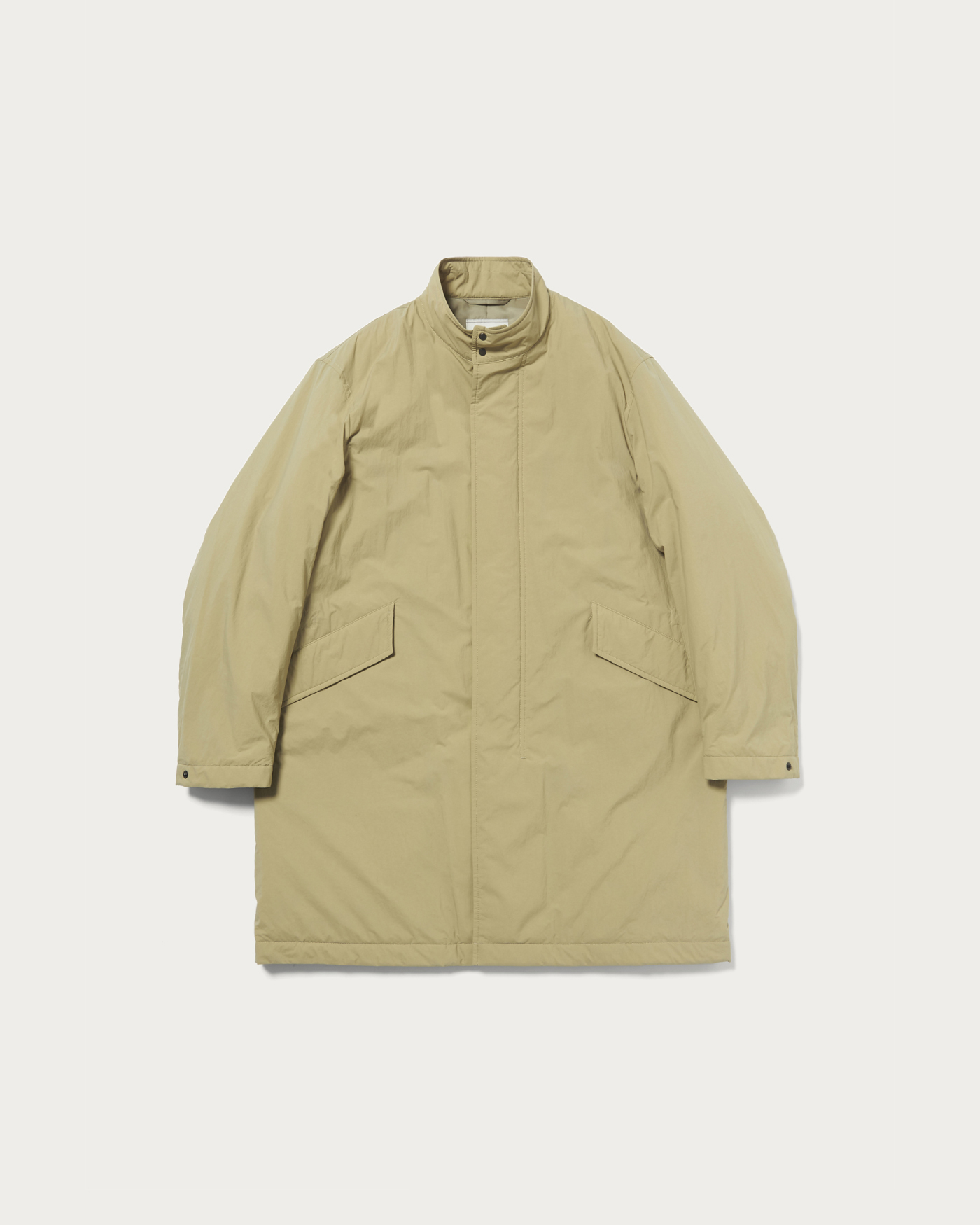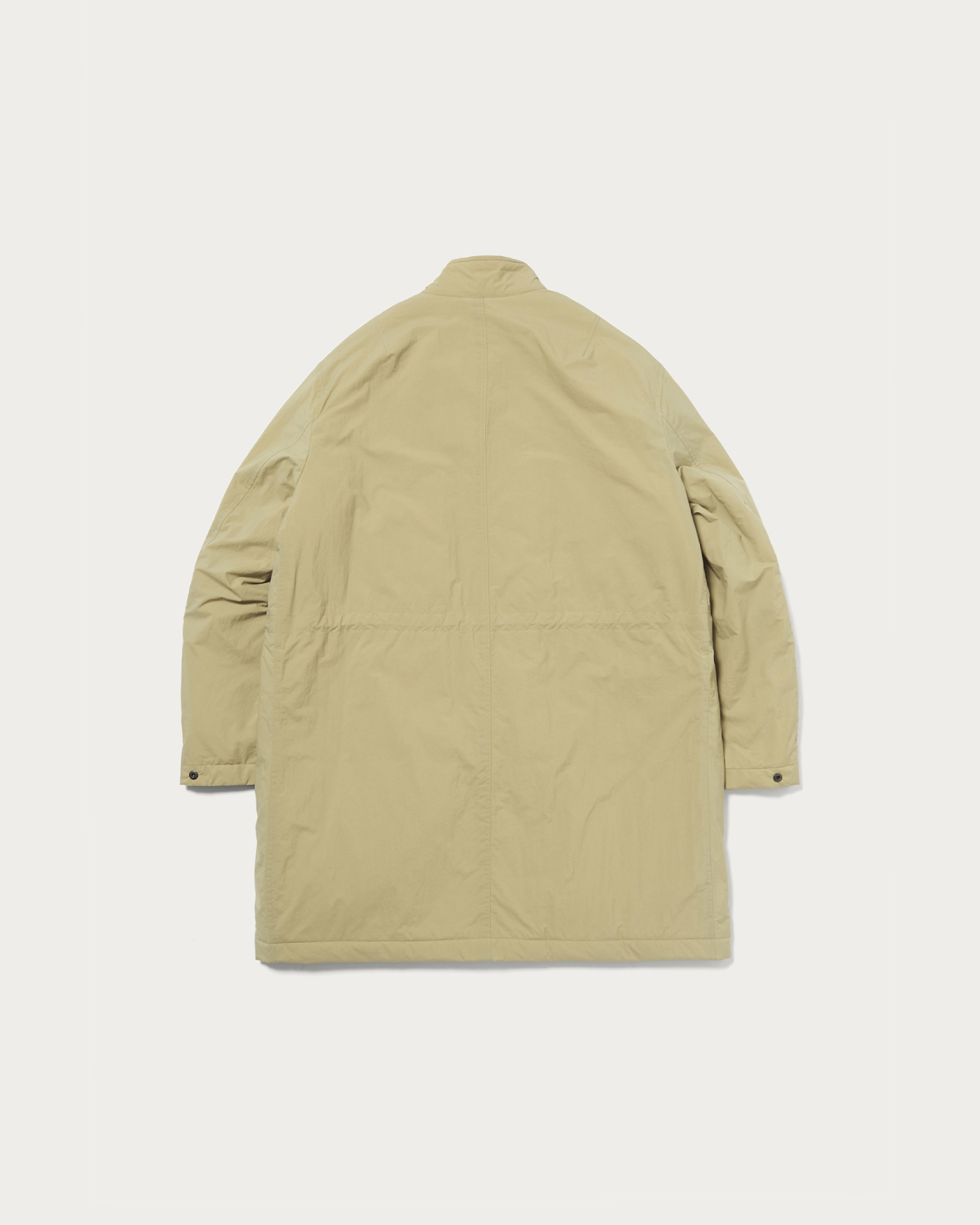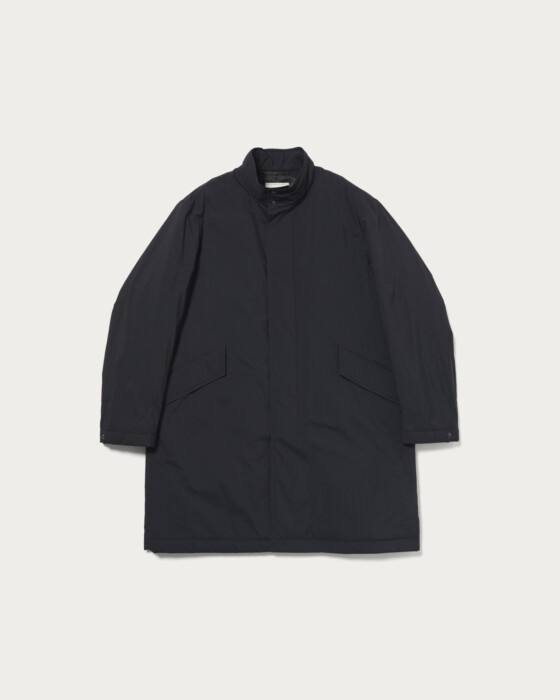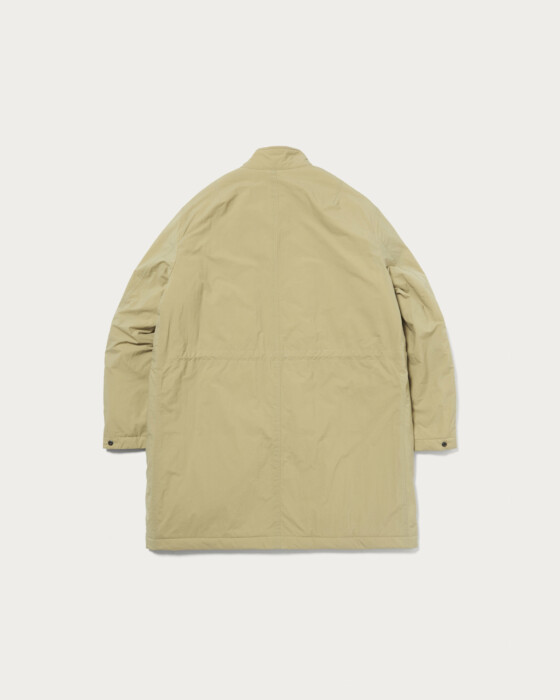 歴史的名品M65フィールドパーカーを着想源に、現代的な機能性と着心地を両立させたデザイン。撥水性に優れたラフな素材を使用し、中綿入りでも軽快な着心地を実現。ミリタリー由来ながら、スーツのビジネスアウターとしても、デニムなどカジュアルシーンにもマッチする汎用性の高い一着。