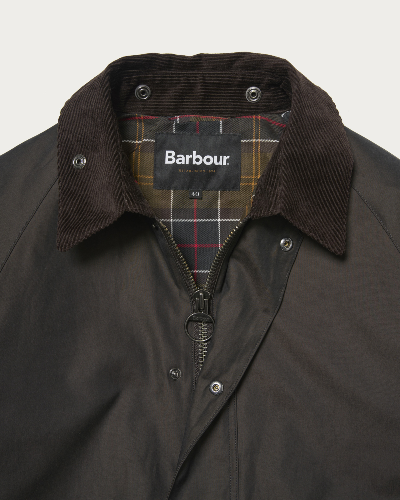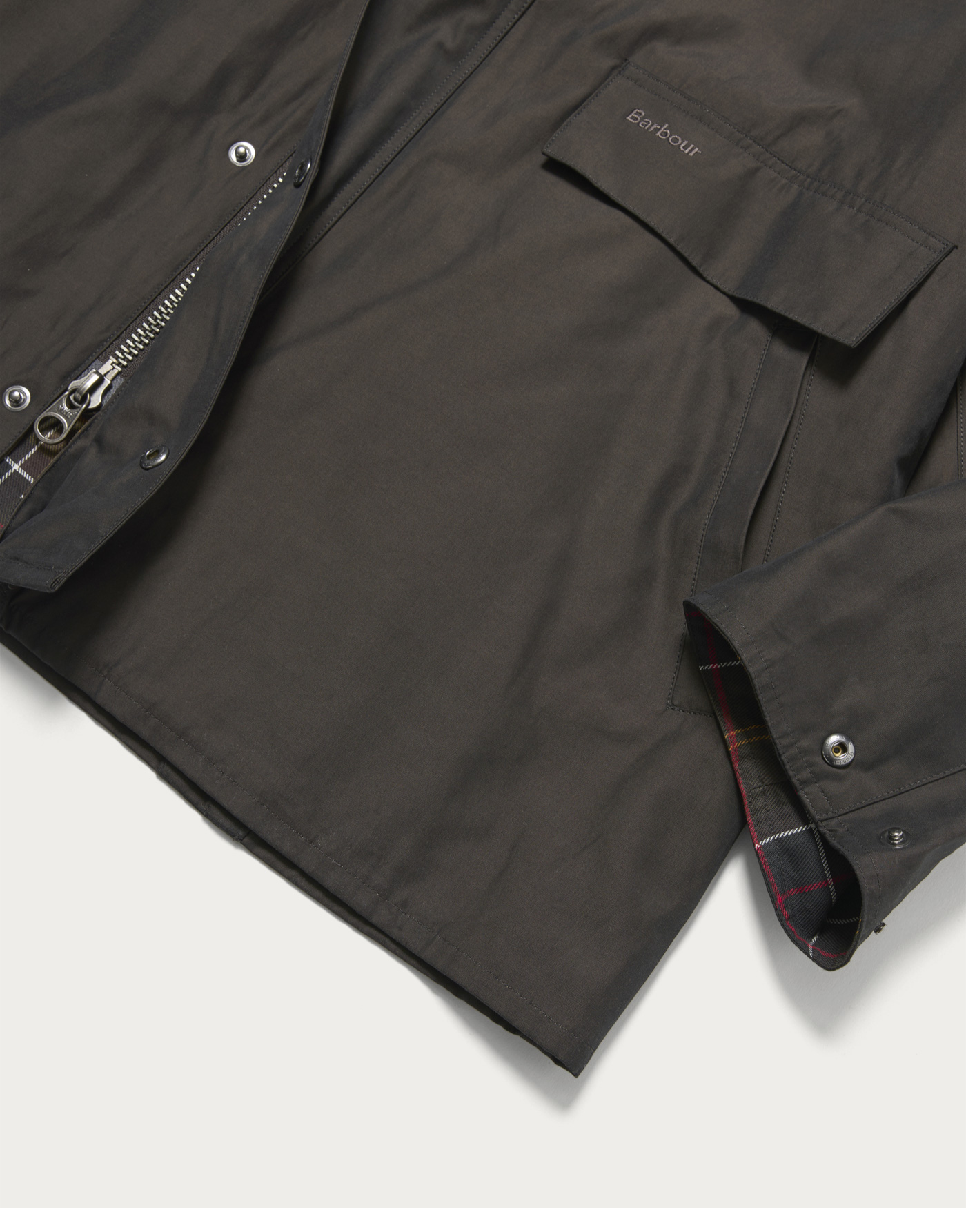 〈Barbour〉を象徴する「BEDALE」をベースに、アーカイブデザインをもとにフロントポケットをカスタムし、すっきりとした表情に。ON⇔OFF問わず幅広いスタイリングに対応する、モダンなデザインが魅力の一着です。
