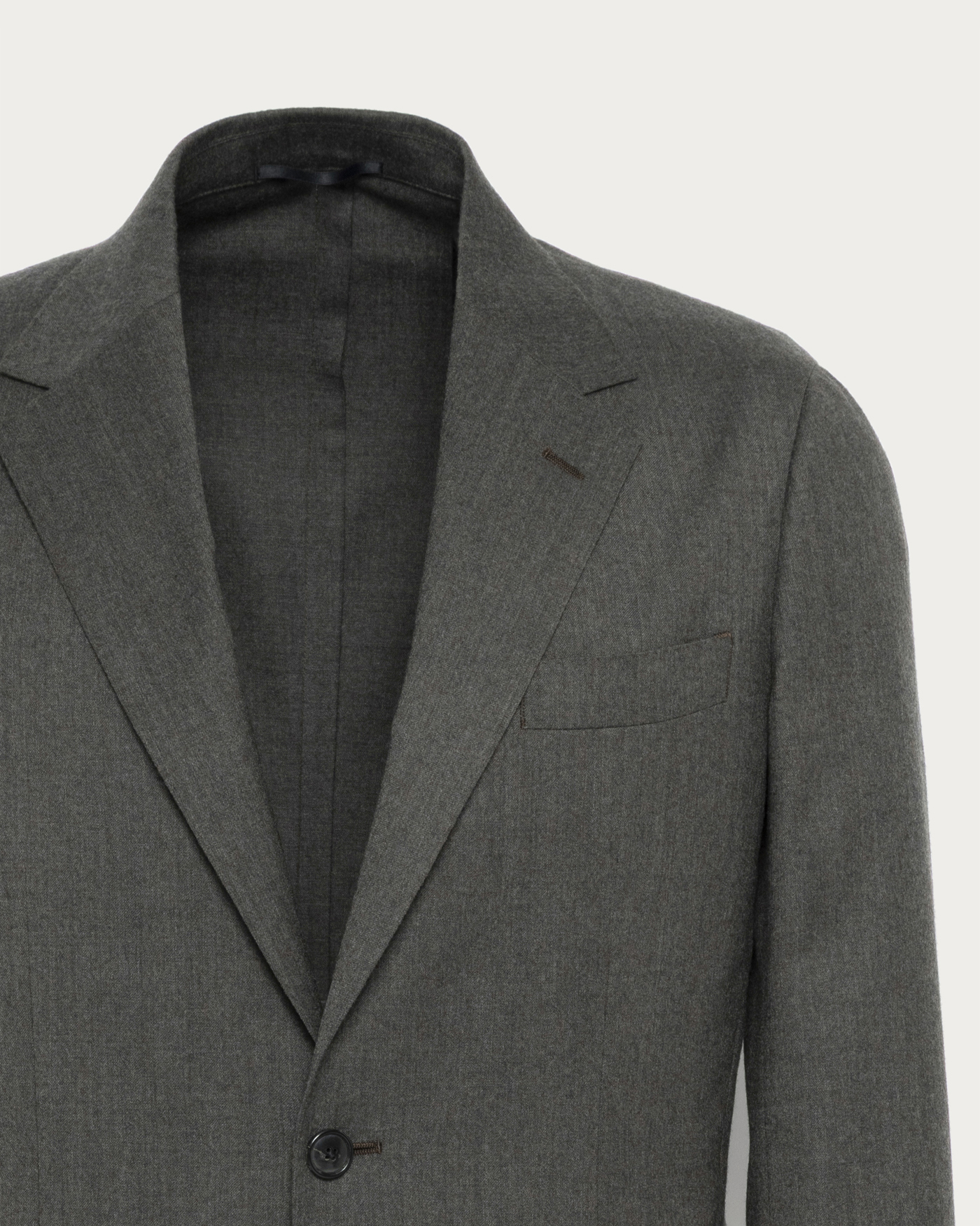 グリーンレーベル リラクシングのオリジナル素材「GLR CLOTH」を使用した、新開発のストレッチフランネル素材。非常にソフトで軽やかな風合いながら、きちんとした見え方を保つアンコン仕立て。タイドアップでのセットアップはもちろん、単品ジャケットとしても活躍。心地よさと品格を両立した一着。