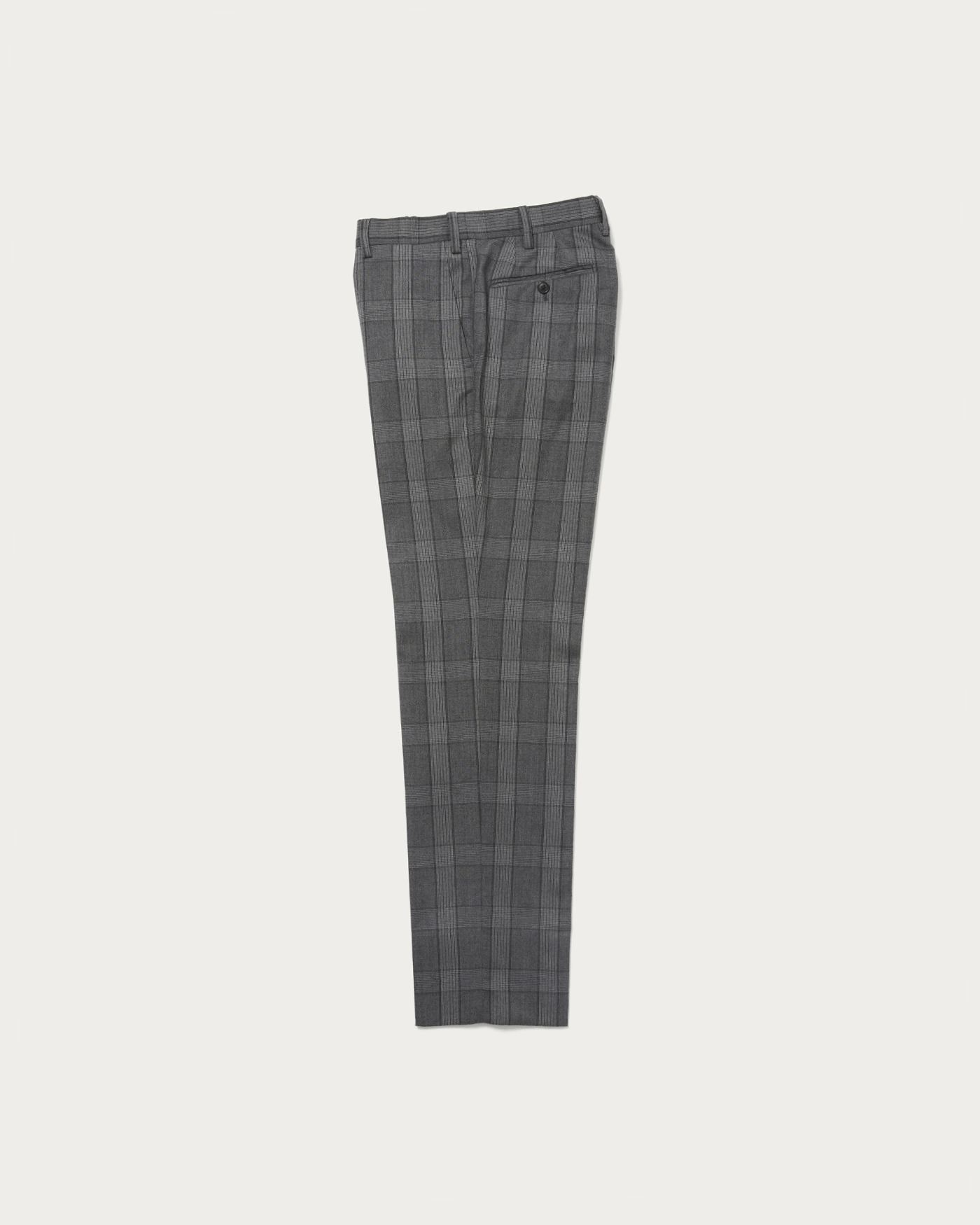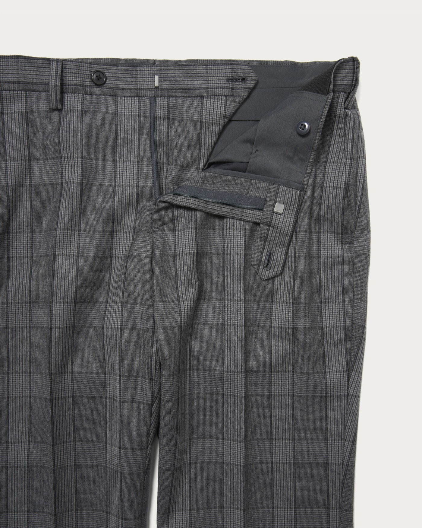 グリーンレーベル リラクシングのオリジナル素材「GLR CLOTH」を使用した、新開発のストレッチフランネル素材。ダークグレーはグレンチェック、ダークブラウンは千鳥柄でジャケットと統一感を演出。ウエストアジャスター付きスリムノータックで、同素材ジャケットとのセットアップはもちろん、単品スラックスとしても活躍。軽やかでソフトな風合いと美しいシルエットを備えた一本。