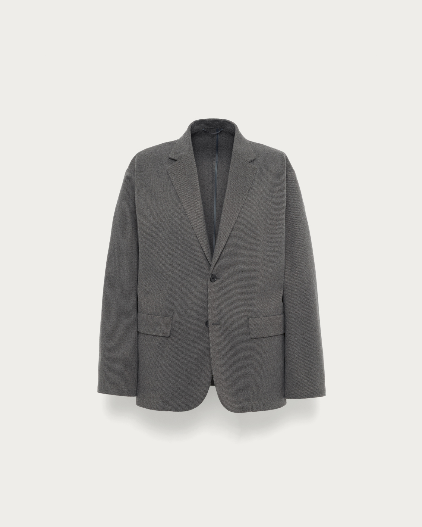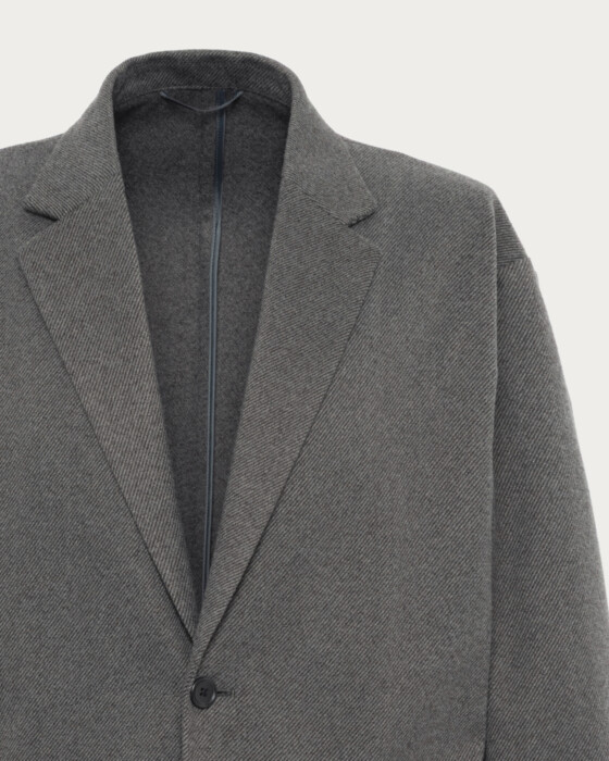 秋冬のワンダークロスシリーズ。染まり方の異なるポリエステル糸を組み合わせて織ることで、深みのある表情を実現。さらに起毛加工を施し毛並みを整えることで、ウールのような高級感のある素材に仕上げたジャケット。肩が少し落ちたリラックス感のあるカジュアルなシルエットで、秋冬のさまざまなスタイルに合わせやすい一着。