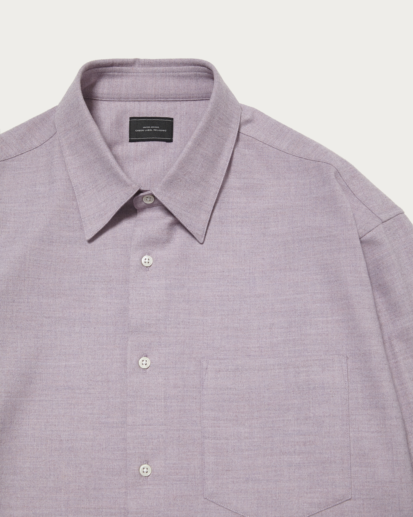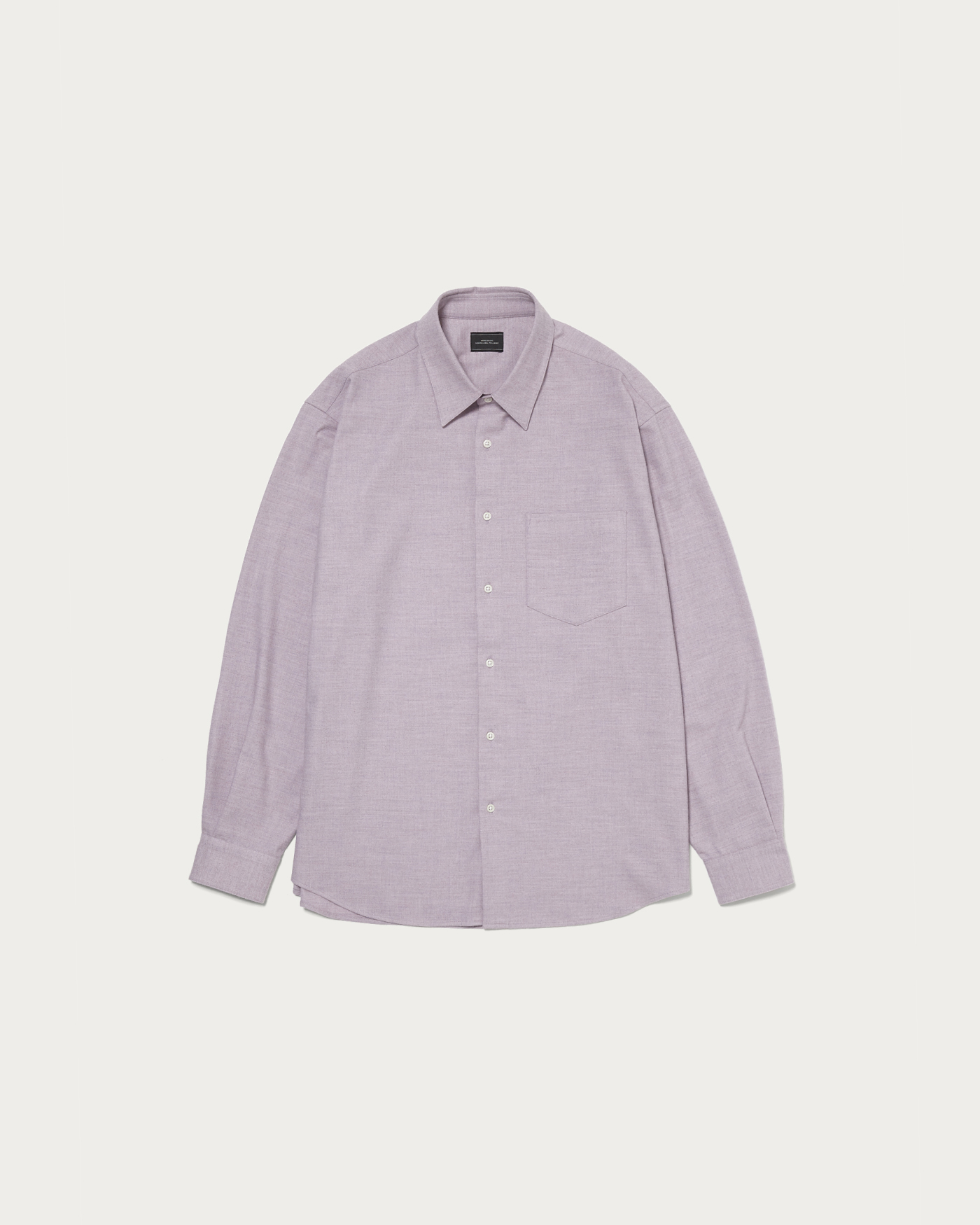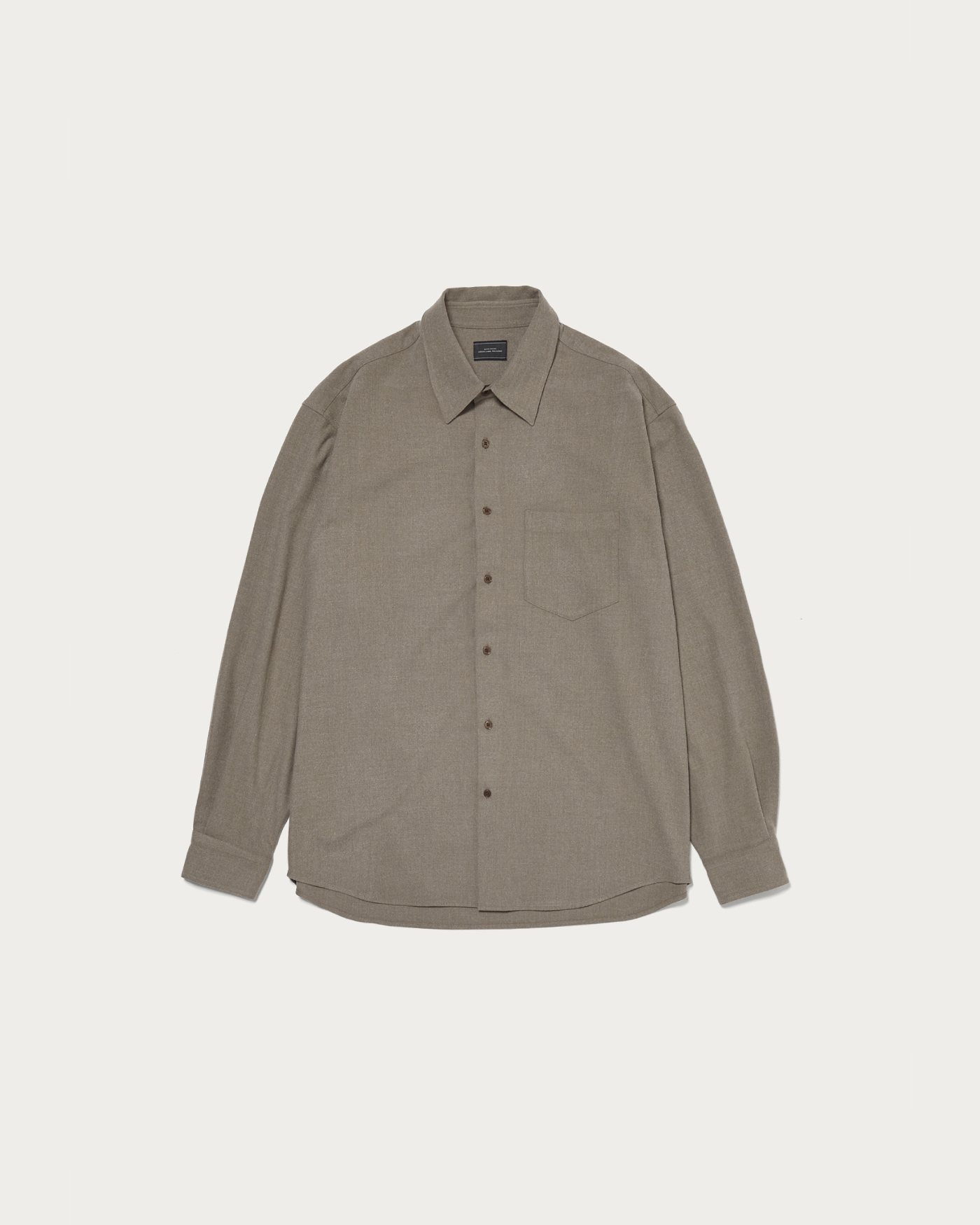 上品なT/Rフラノ素材を使用したジャストルーズシャツ。ゆったりとしたシルエットながら肩が落ちすぎず、リラックス感がありつつもだらしなく見えないのがポイント。