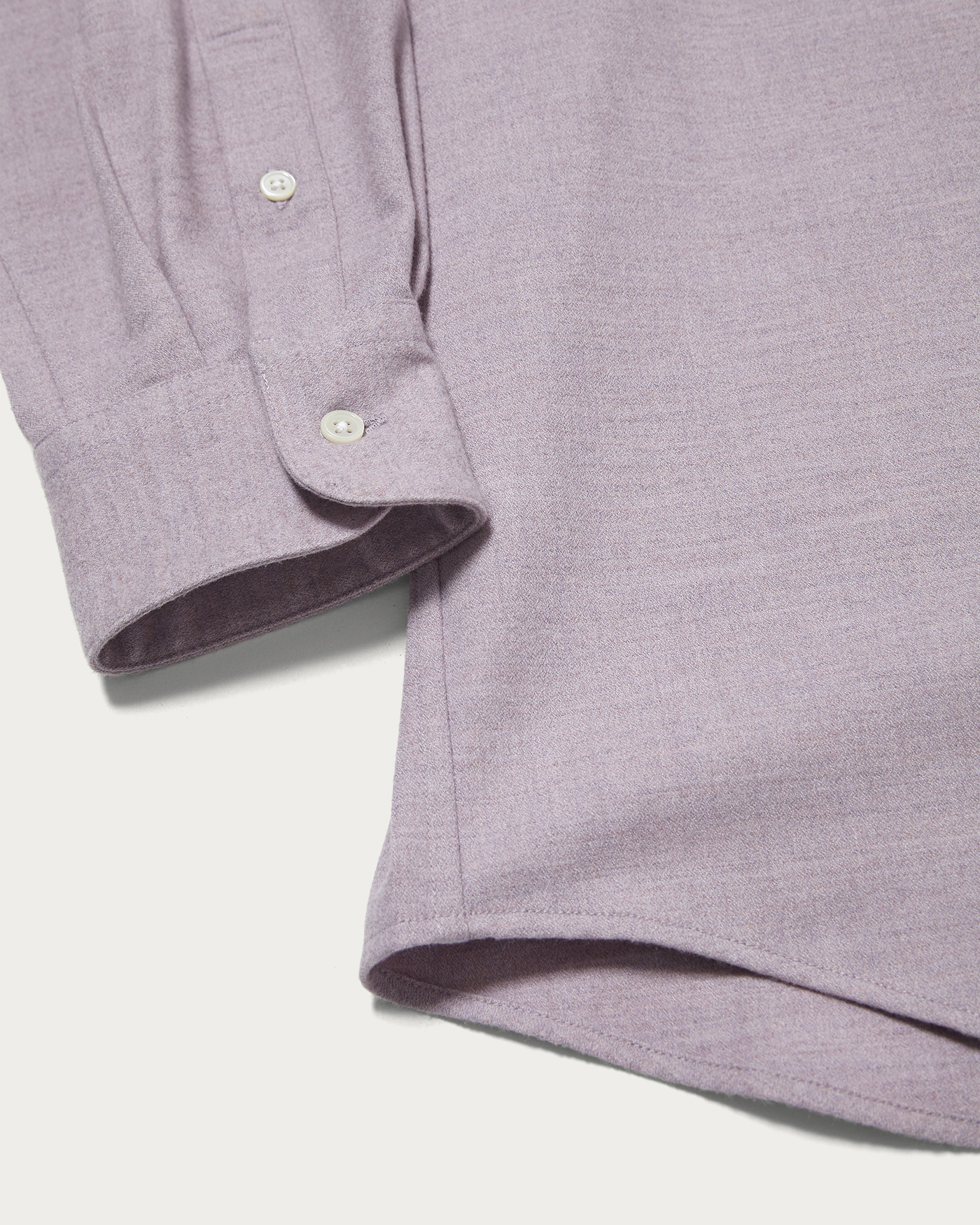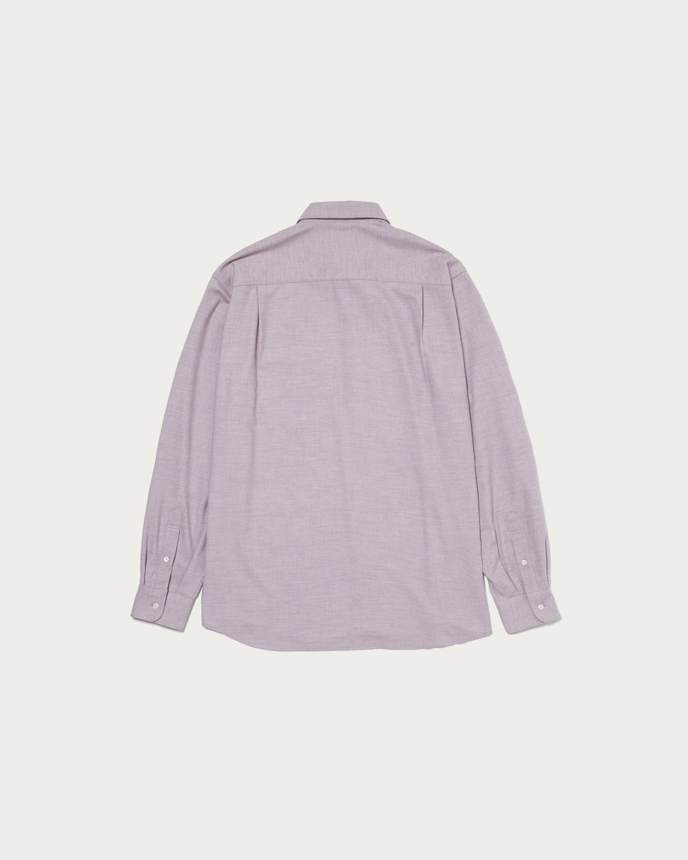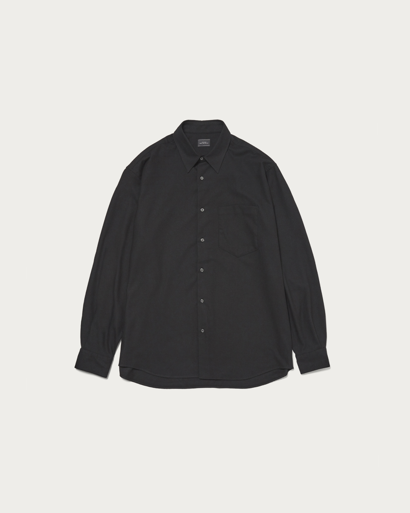 上品なT/Rフラノ素材を使用したジャストルーズシャツ。ゆったりとしたシルエットながら肩が落ちすぎず、リラックス感がありつつもだらしなく見えないのがポイント。