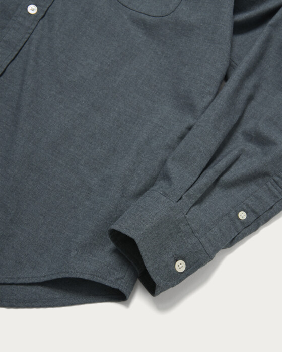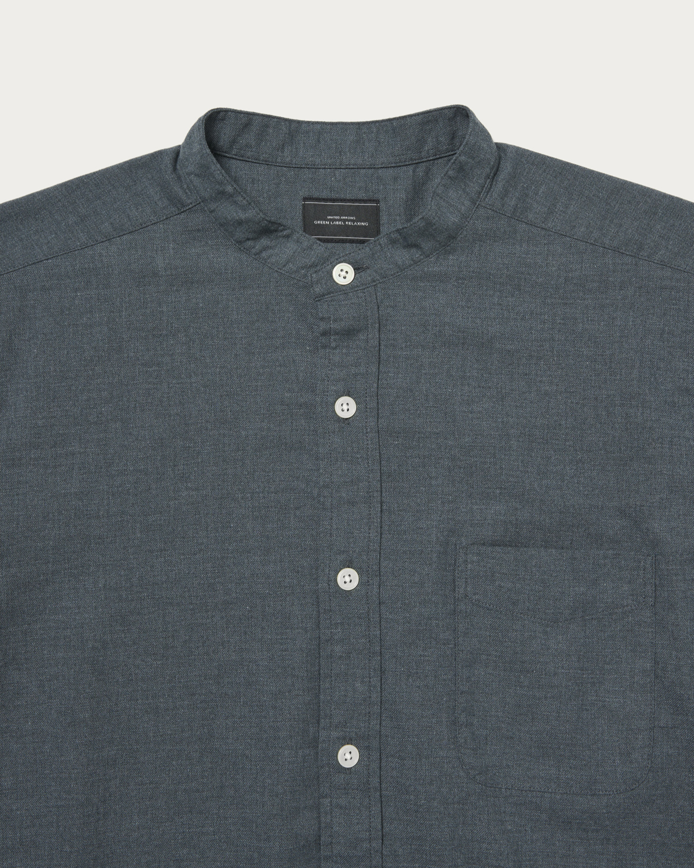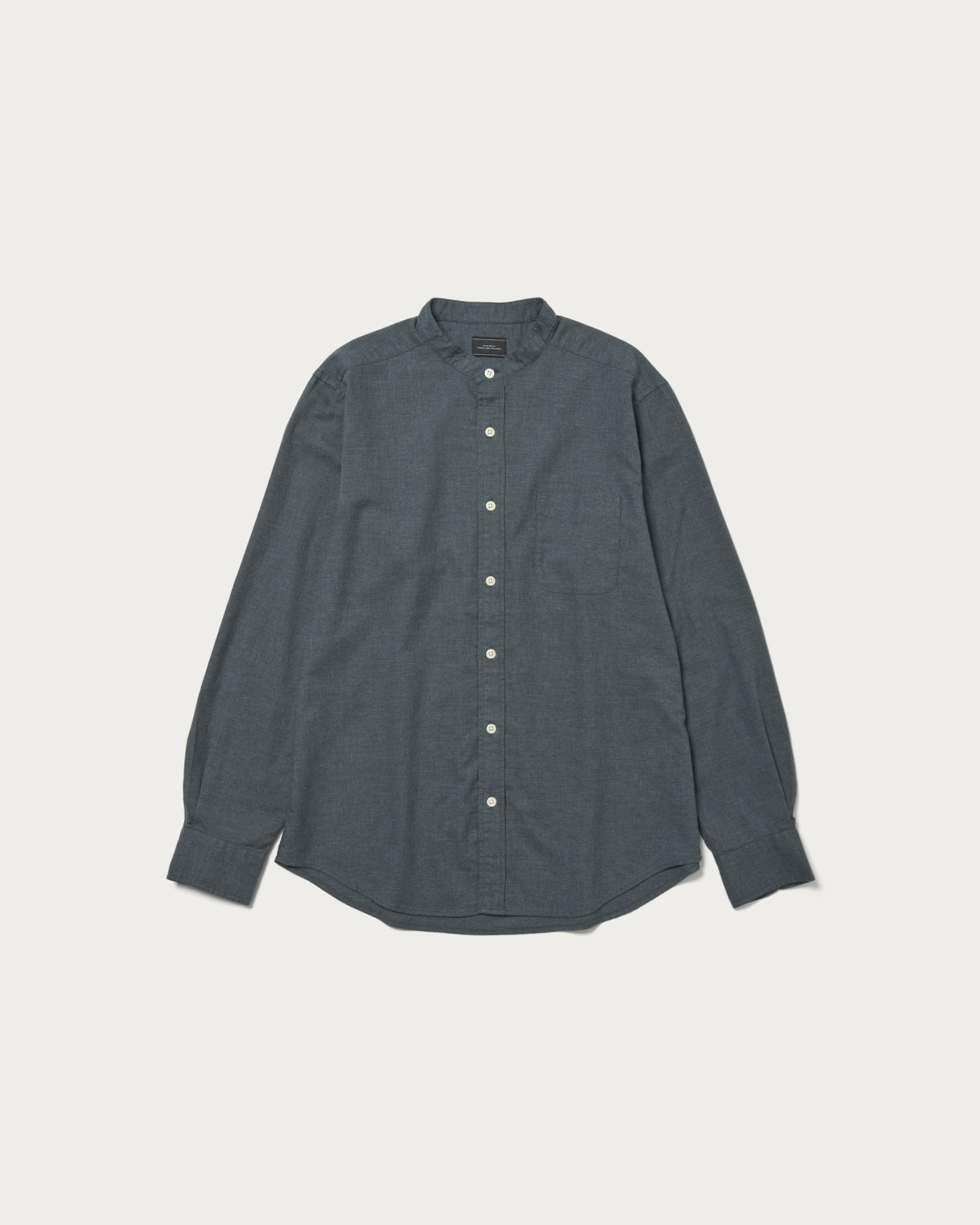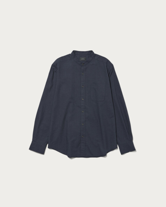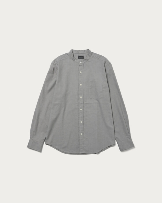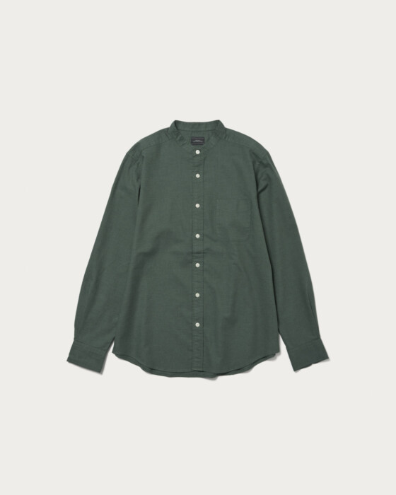特殊仕上げを施したコットンビエラ素材を使用。程よい伸びと、着るほどに身体に馴染む快適な着心地が魅力です。ジャストなフィット感とバンドカラーのデザインで、一枚着としてもジャケットのインナーとしても活躍します。
