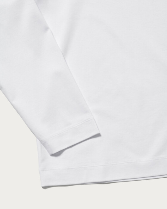 細番手糸を使いと滑らかさとツヤを実現したポンチ生地。ジャケットやシャツのインナーに最適なモックネックデザインで、快適な着心地と上品な表情が魅力です。