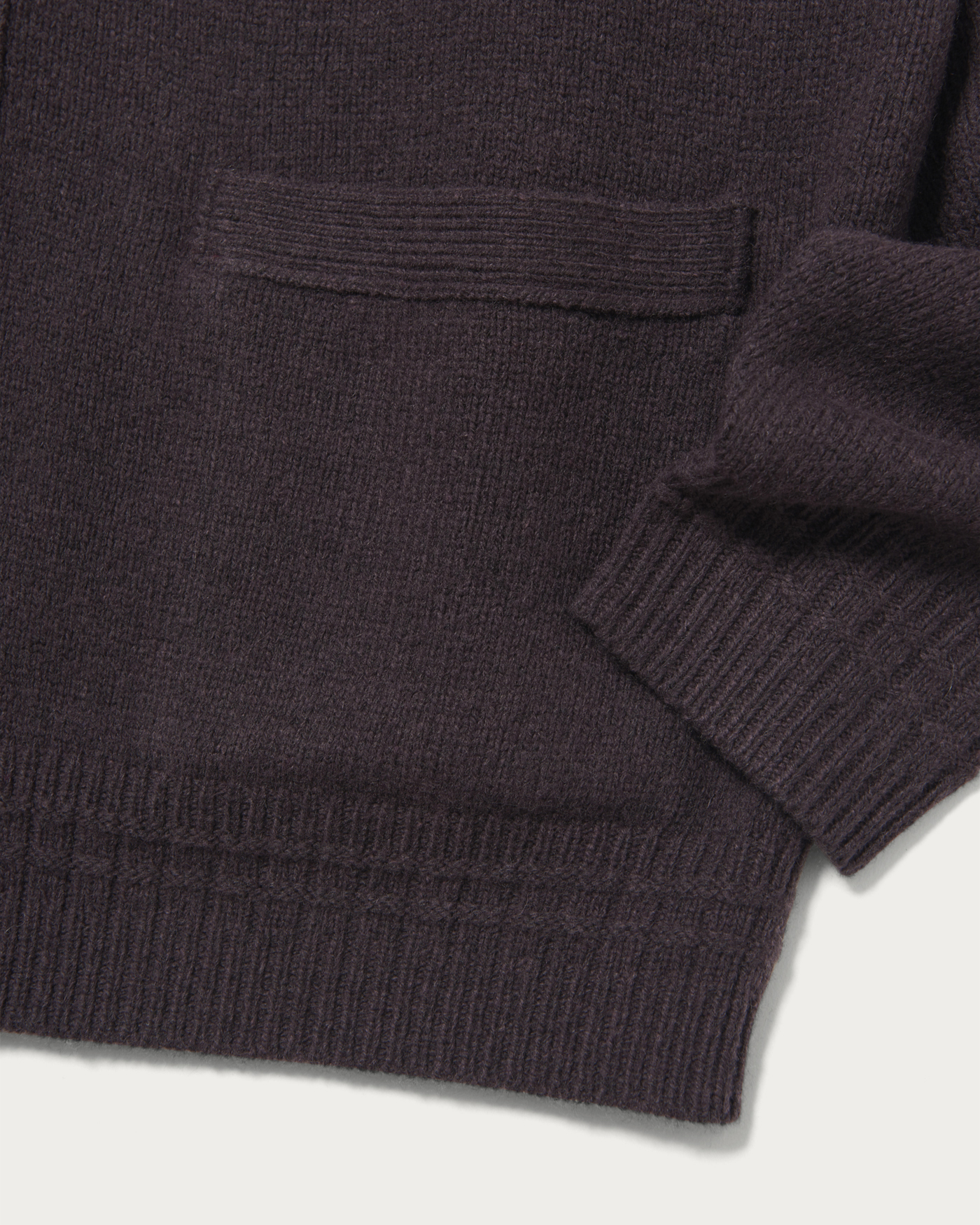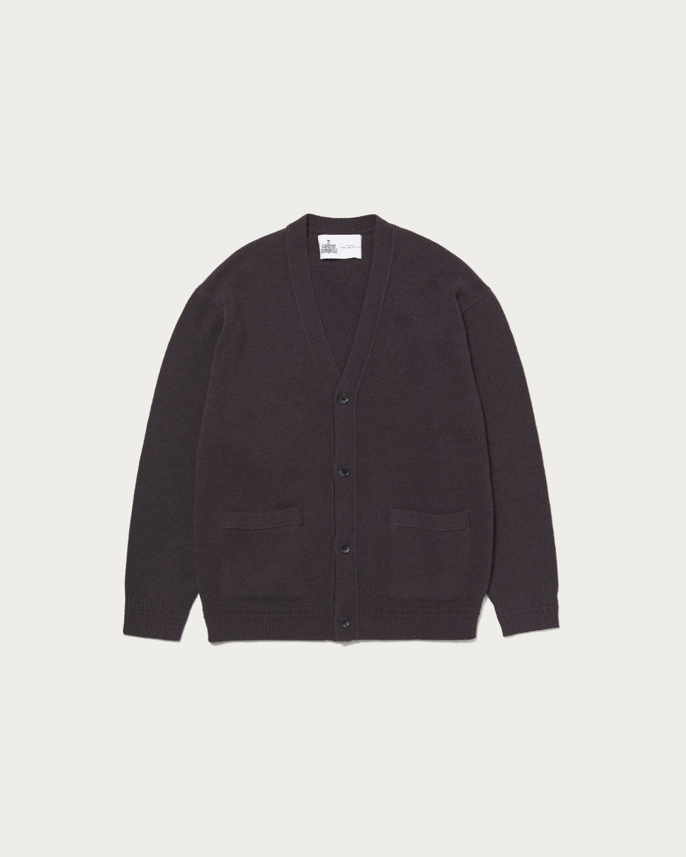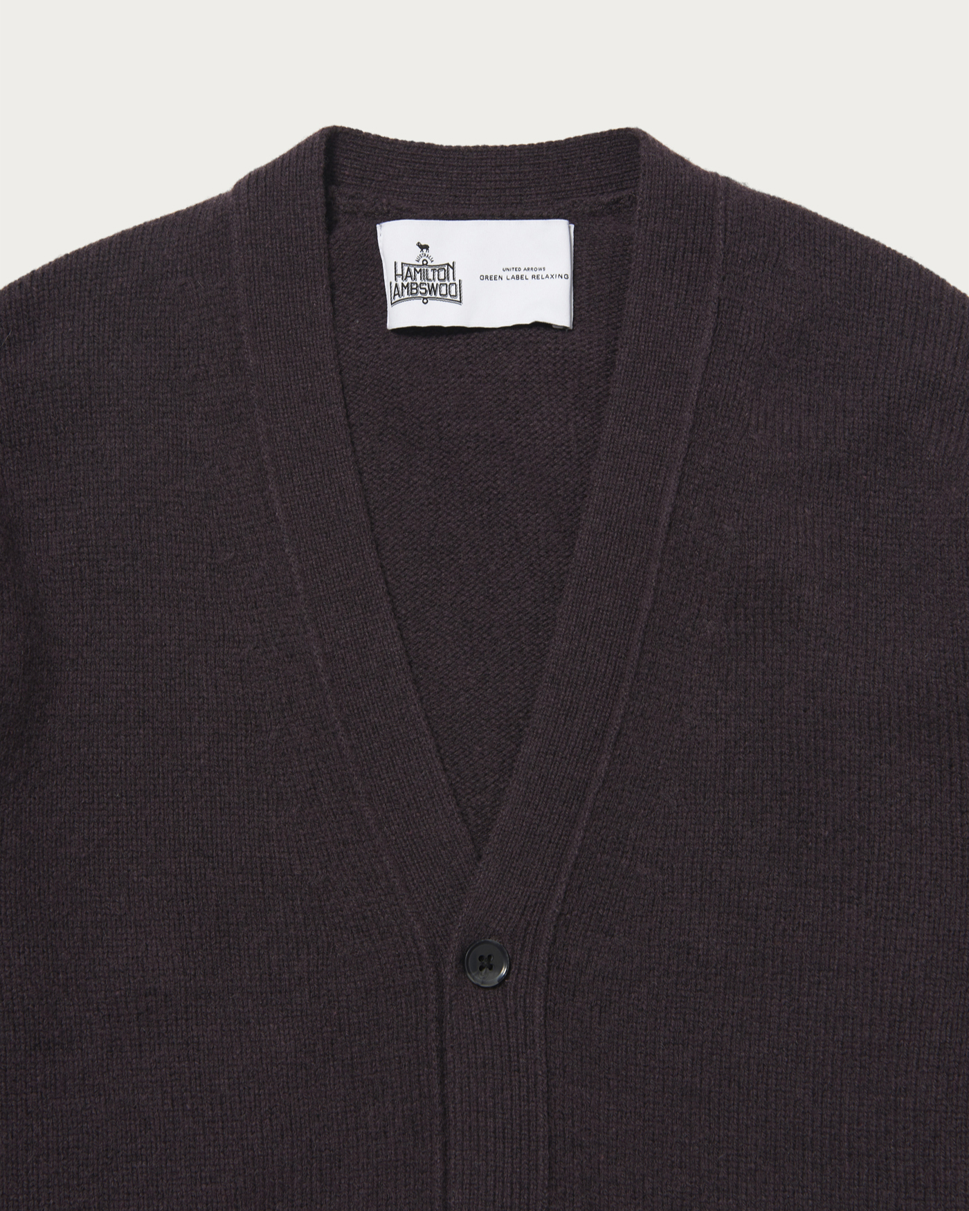 袖口と裾リブに編み目の変化やタックを加え、ニットらしいデザイン性をアクセントとしたカーディガン。程よくゆとりを持たせたシルエットで、快適な着心地を実現。素材にはハミルトンラムズウールをブレンドした糸を使用。オーストラリア・ハミルトンは高級羊毛の生産農家が多く集まる地域で、恵まれた環境で育った仔羊の羊毛は、なめらかで光沢のある質感が特徴。