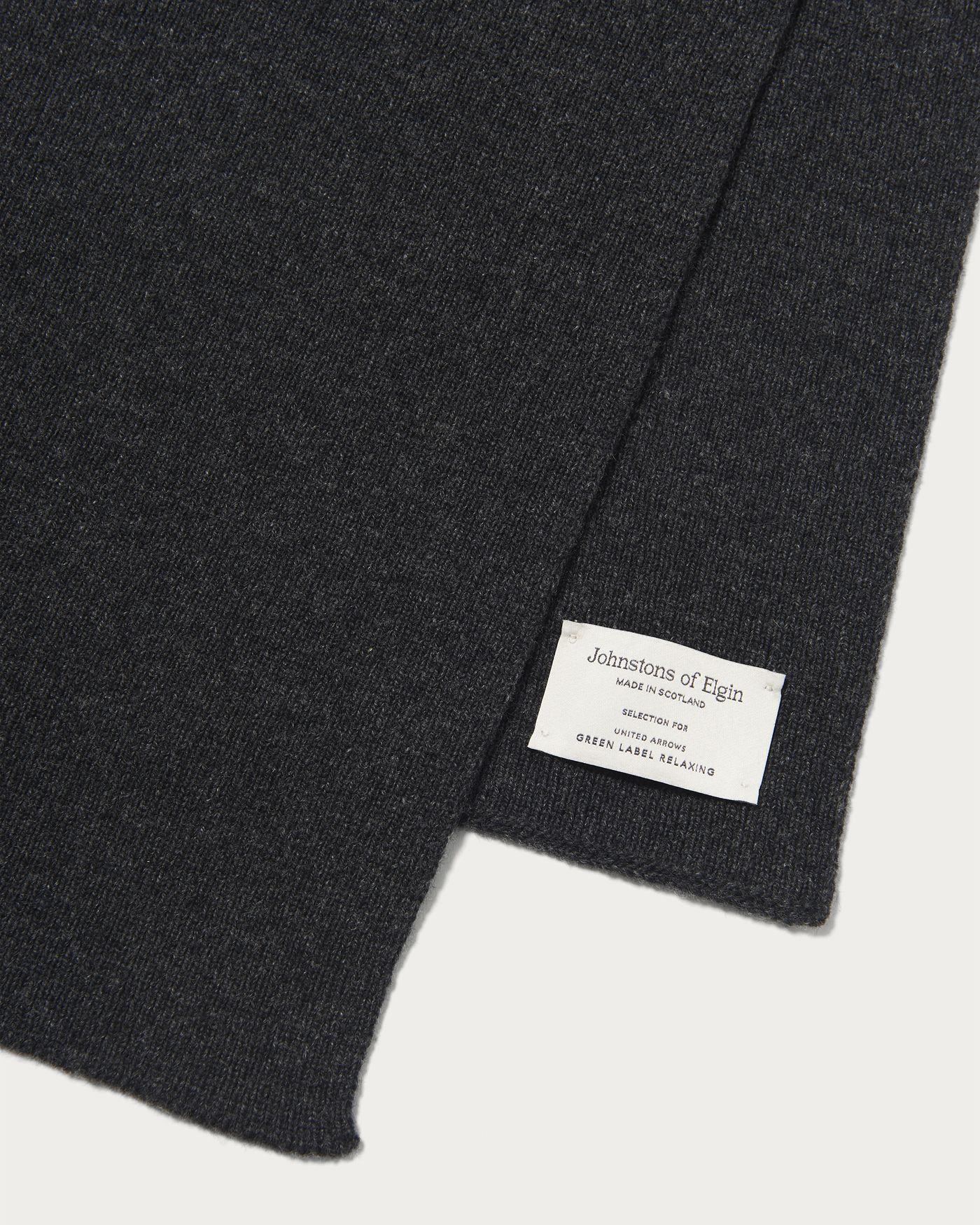 1797年にスコットランド北東部エルガンで創業した老舗ブランド〈Johnstons of Elgin〉のリブマフラー。素材にはグリーンレーベル リラクシング限定展開のウールカシミヤを使用し、シンプルながらも上質な質感と仕上がりの違いが際立つ一品。贅沢な柔らかさと暖かさで、日常の装いに上品なアクセントを添える。