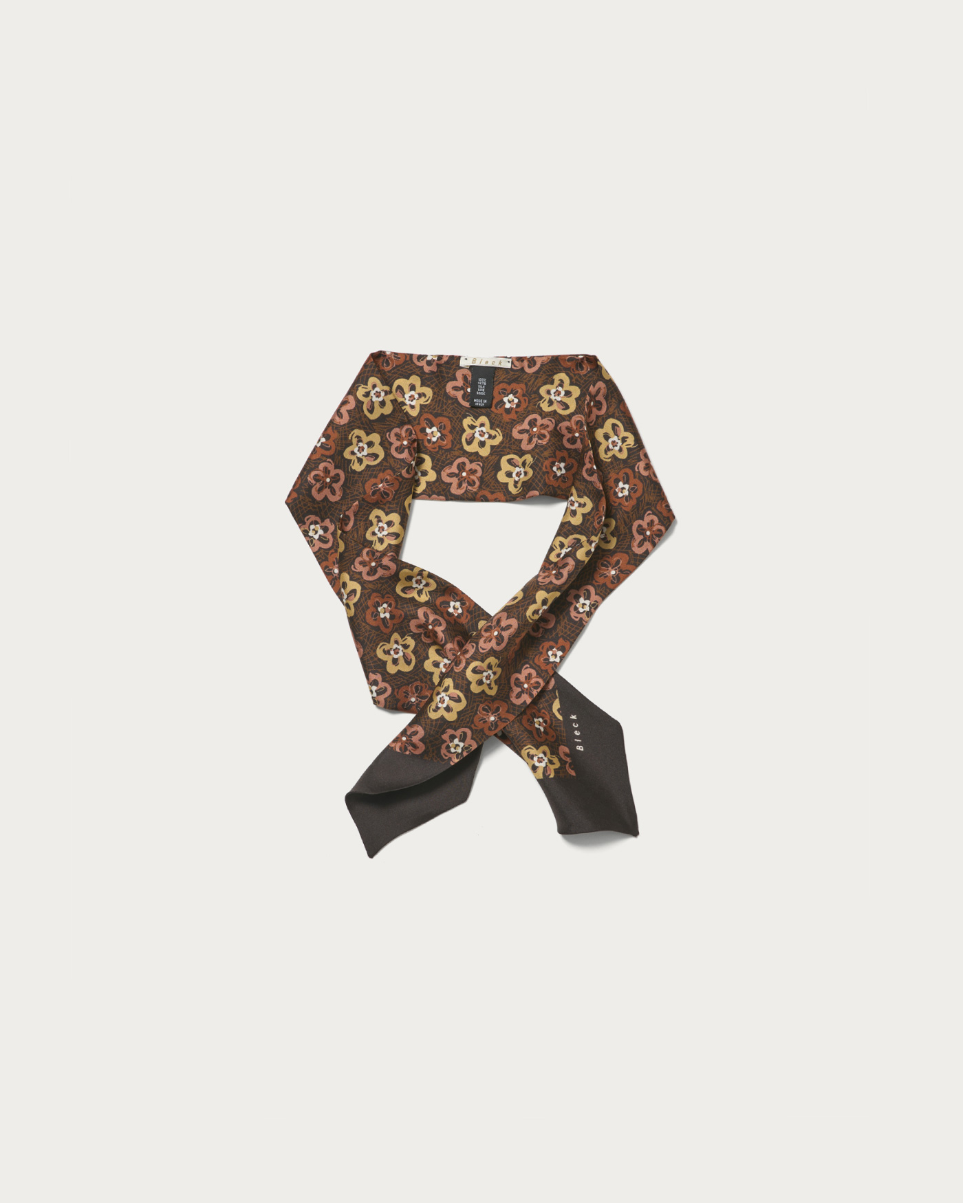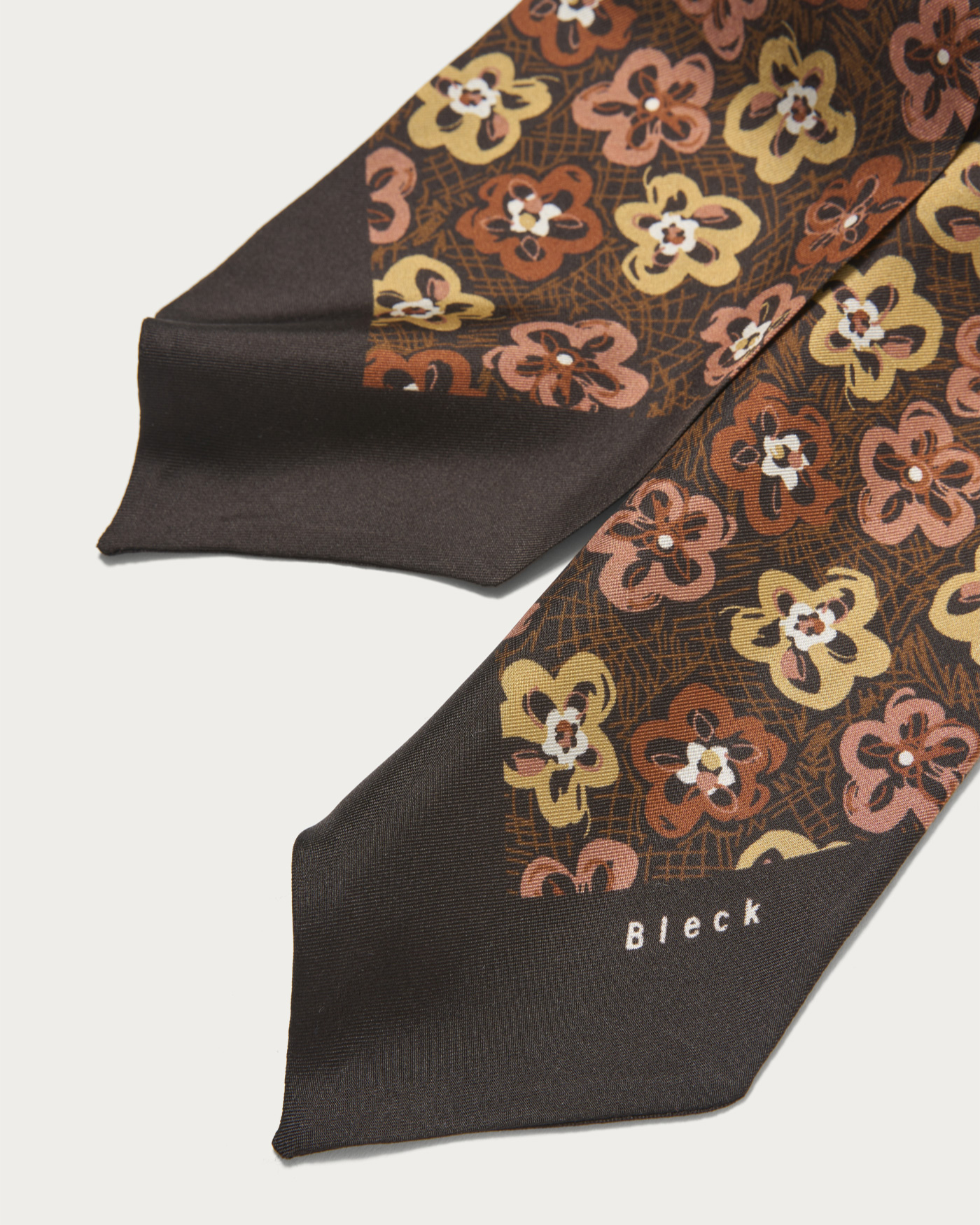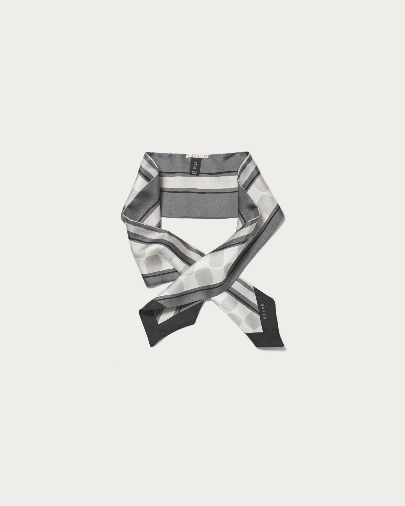 イタリアのシルクブランド〈Bleck〉より、ブランドらしいモダンな色柄が特徴のスカーフ。直感的に巻くだけでスタイルを格上げしてくれる一枚。