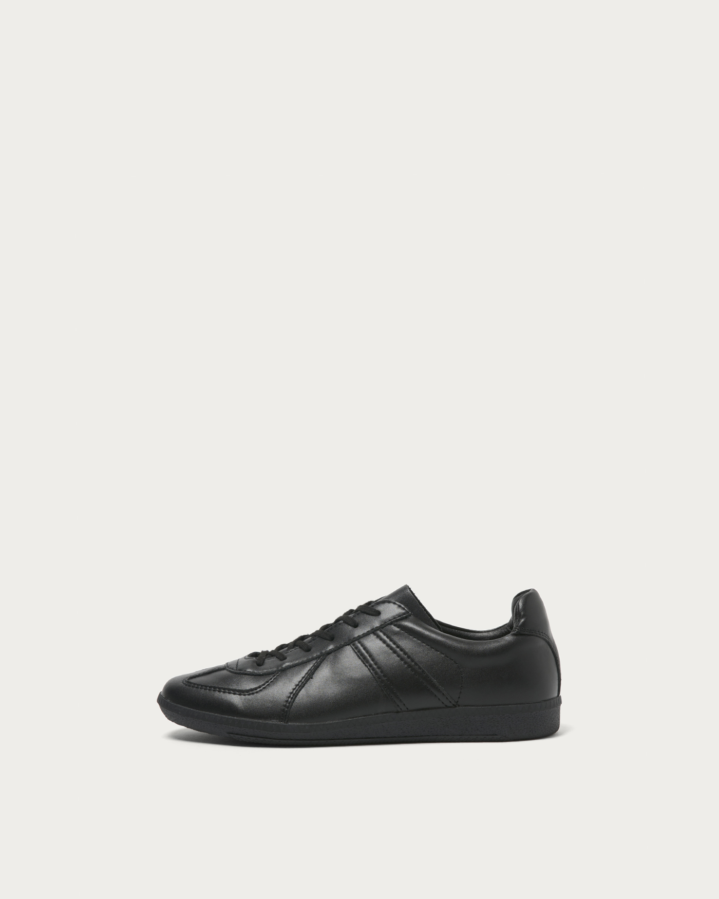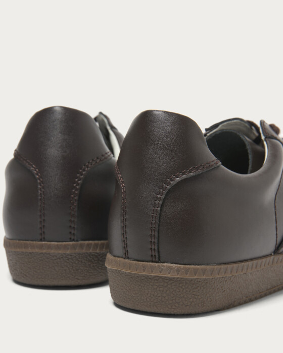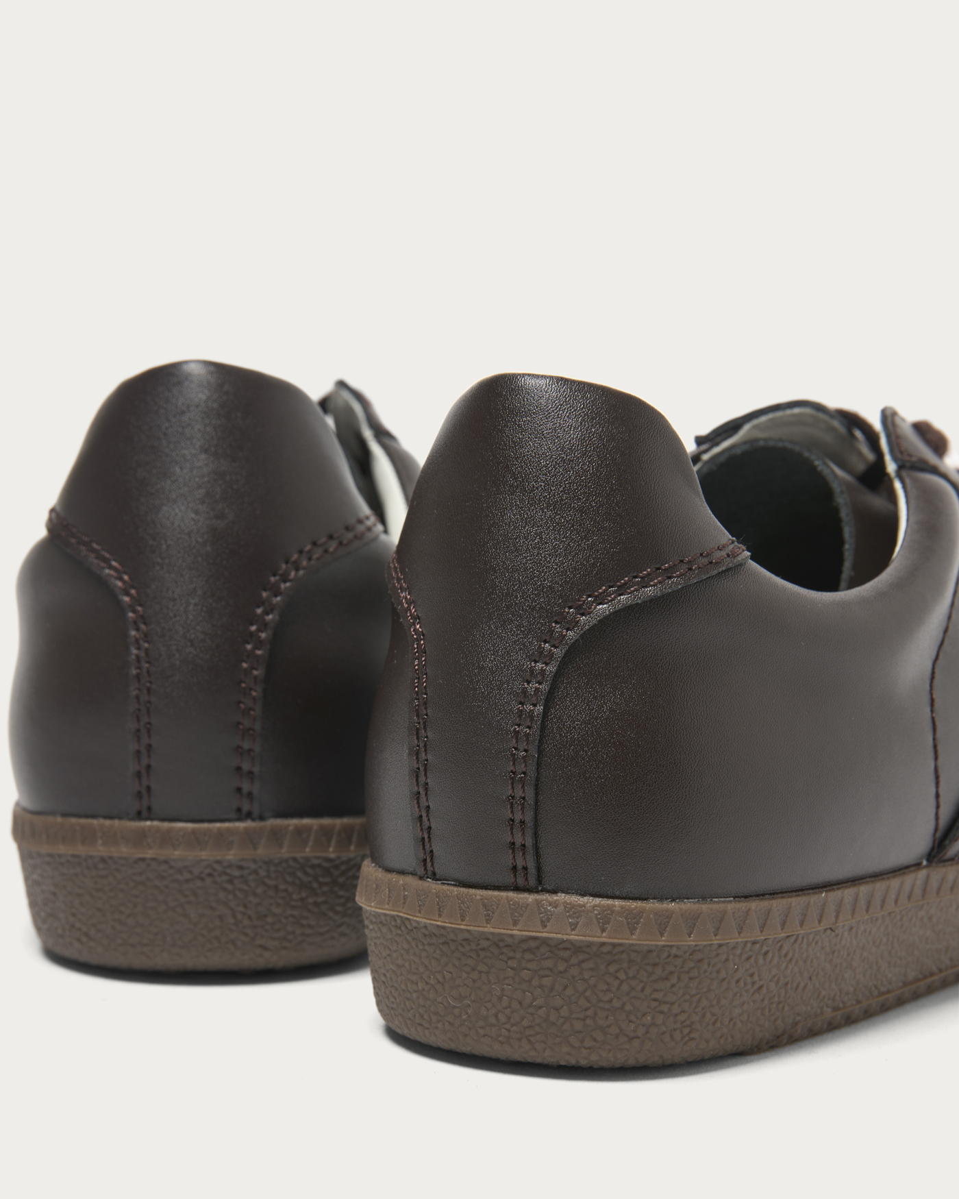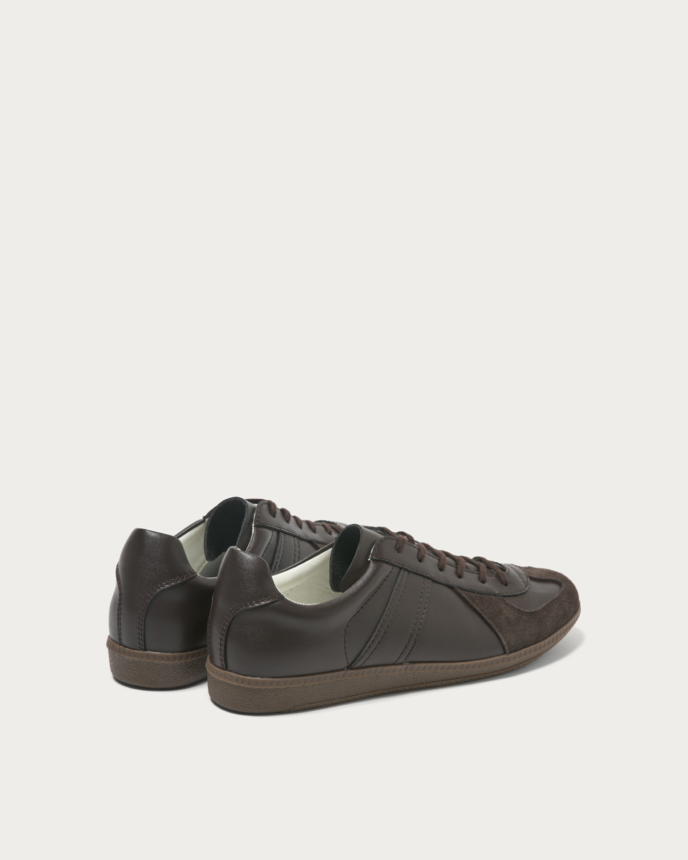 1970~80年代に西ドイツ軍で使用されていたトレーニングシューズである、ジャーマントレーナー。この歴史と伝統のあるデザインに、今期トレンドカラーでイチオシのブラウンを載せて、鮮度を出している。