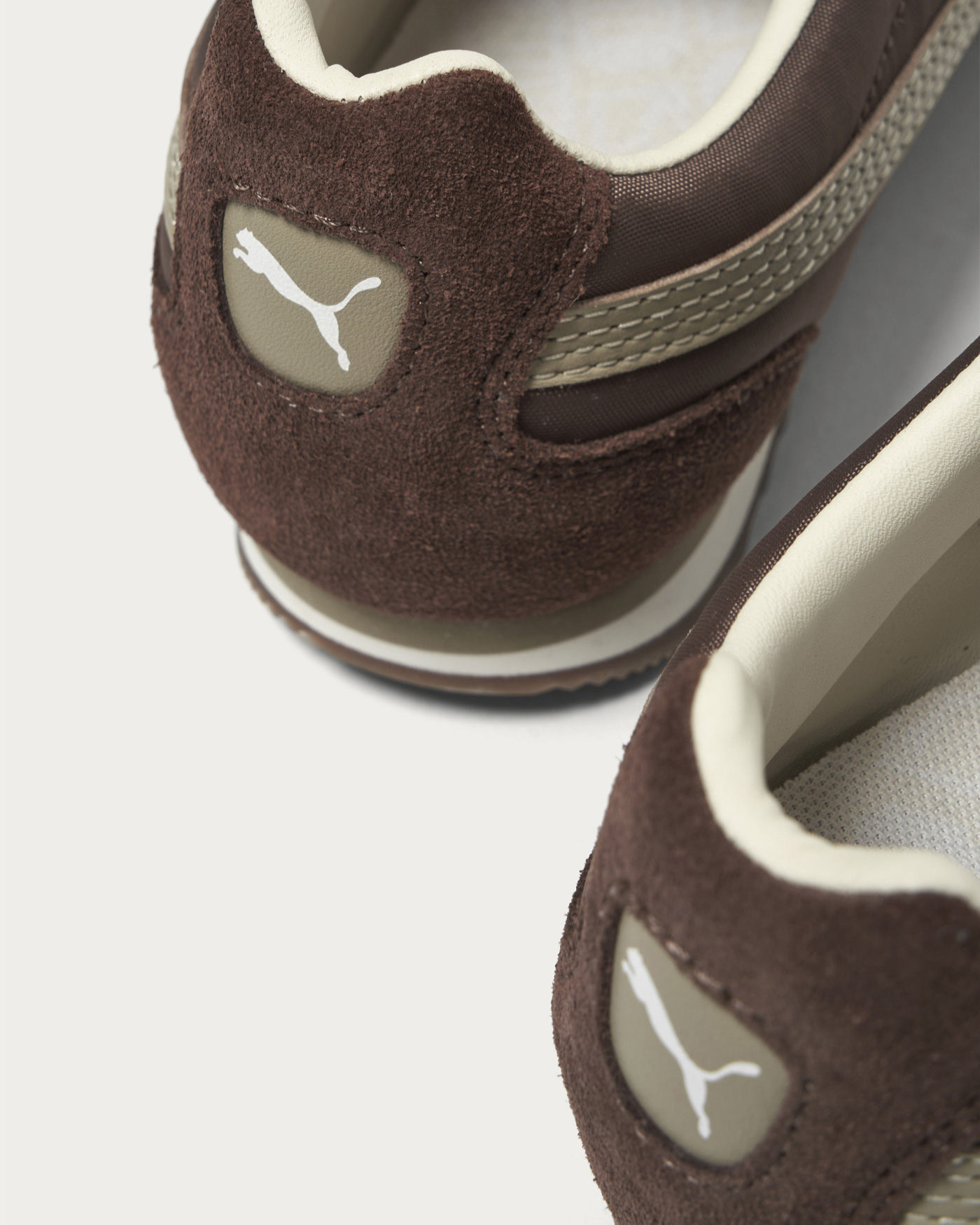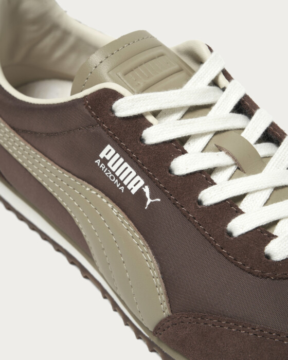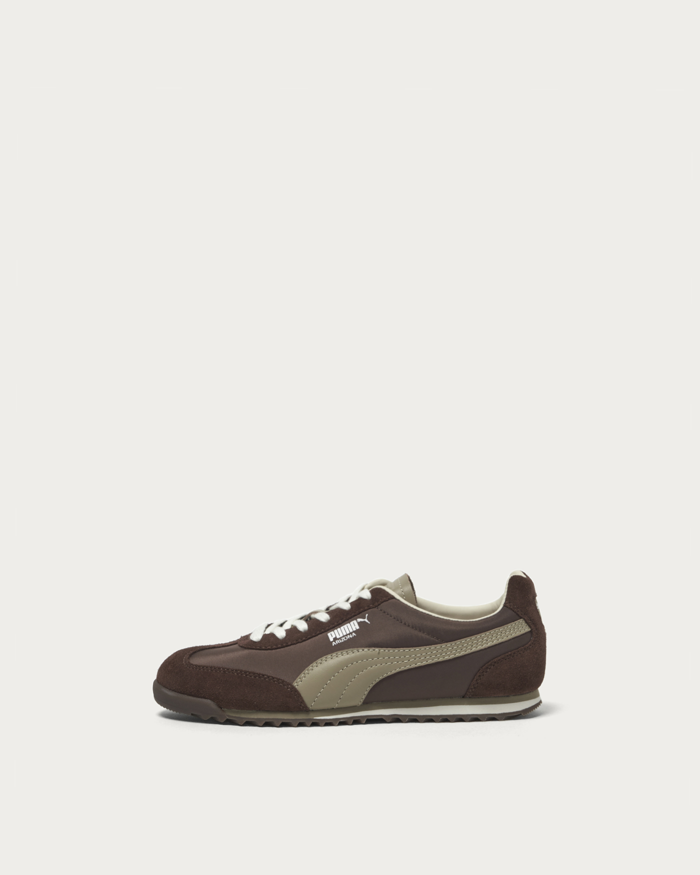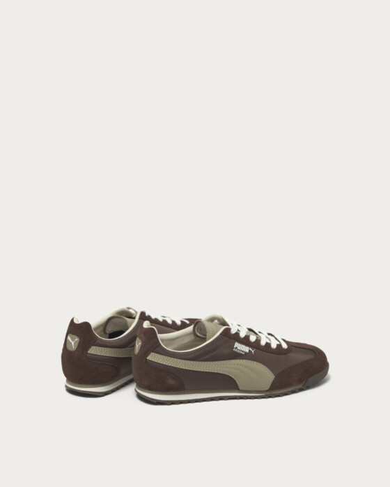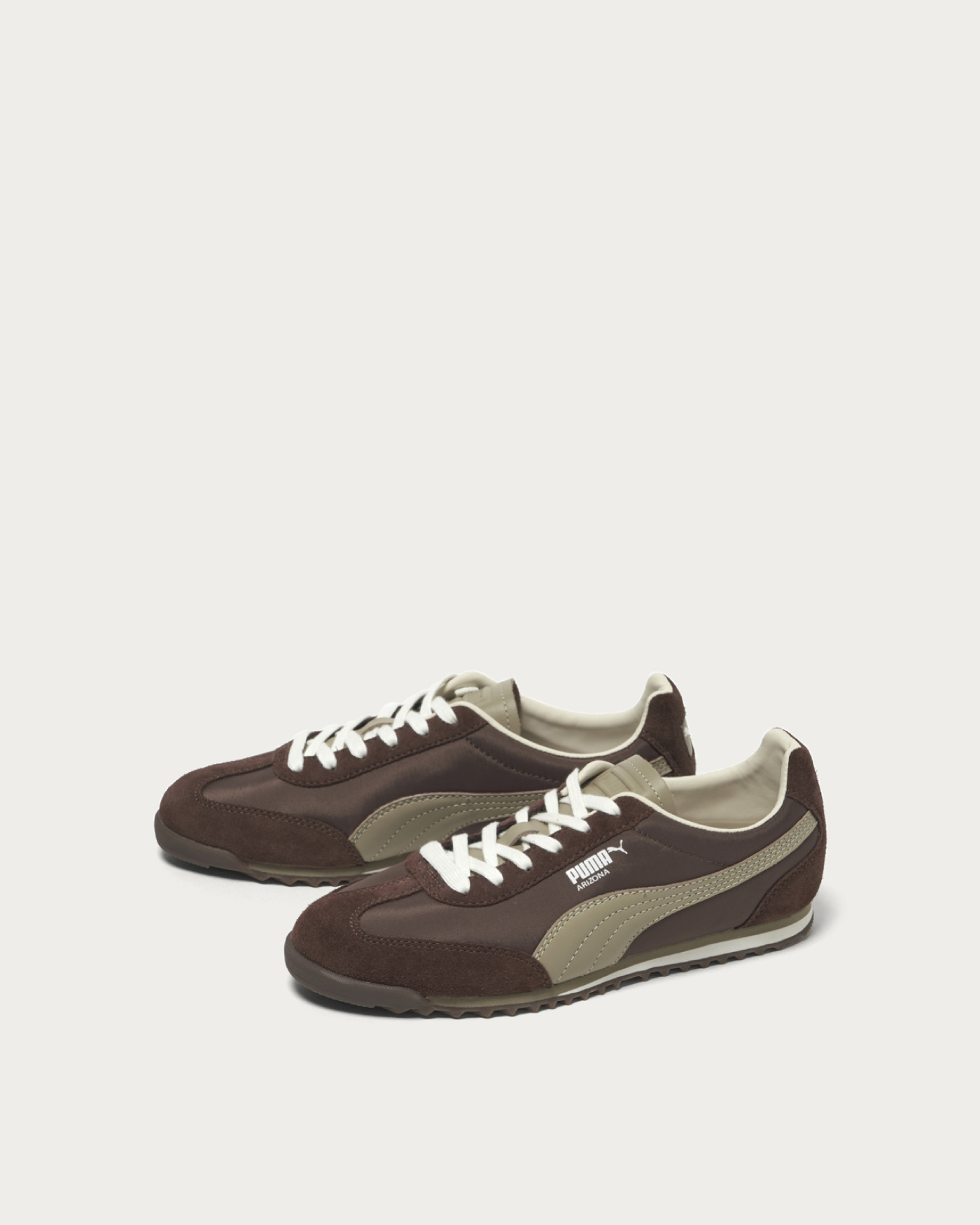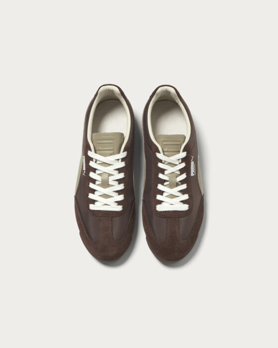 〈プーマ〉から1970年代に誕生したクラシックランニング名作モデル「アリゾナ」を別注。細身シルエットを維持し、ナイロンとスエードを組み合わせた素材感が特徴。トレンドのブラウンを基調にグレージュやオフホワイトを加えた上品なカラーリングで復刻しました。