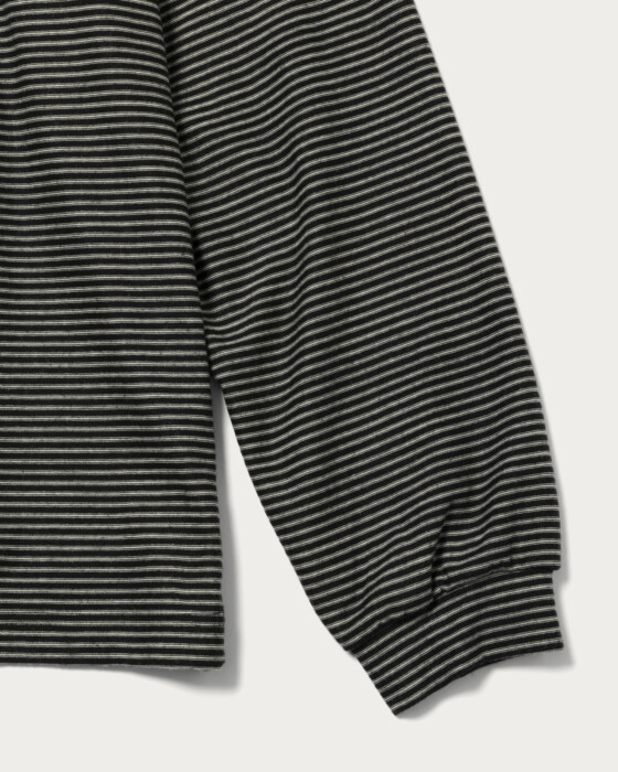 しっかりと目の詰まったメリノウールボディにピンボーダー柄を入れたロングスリーブシャツ。シックかつ静かな佇まいのイメージを持って(株)ニッケテキスタイルで別注作製したオリジナル柄です。