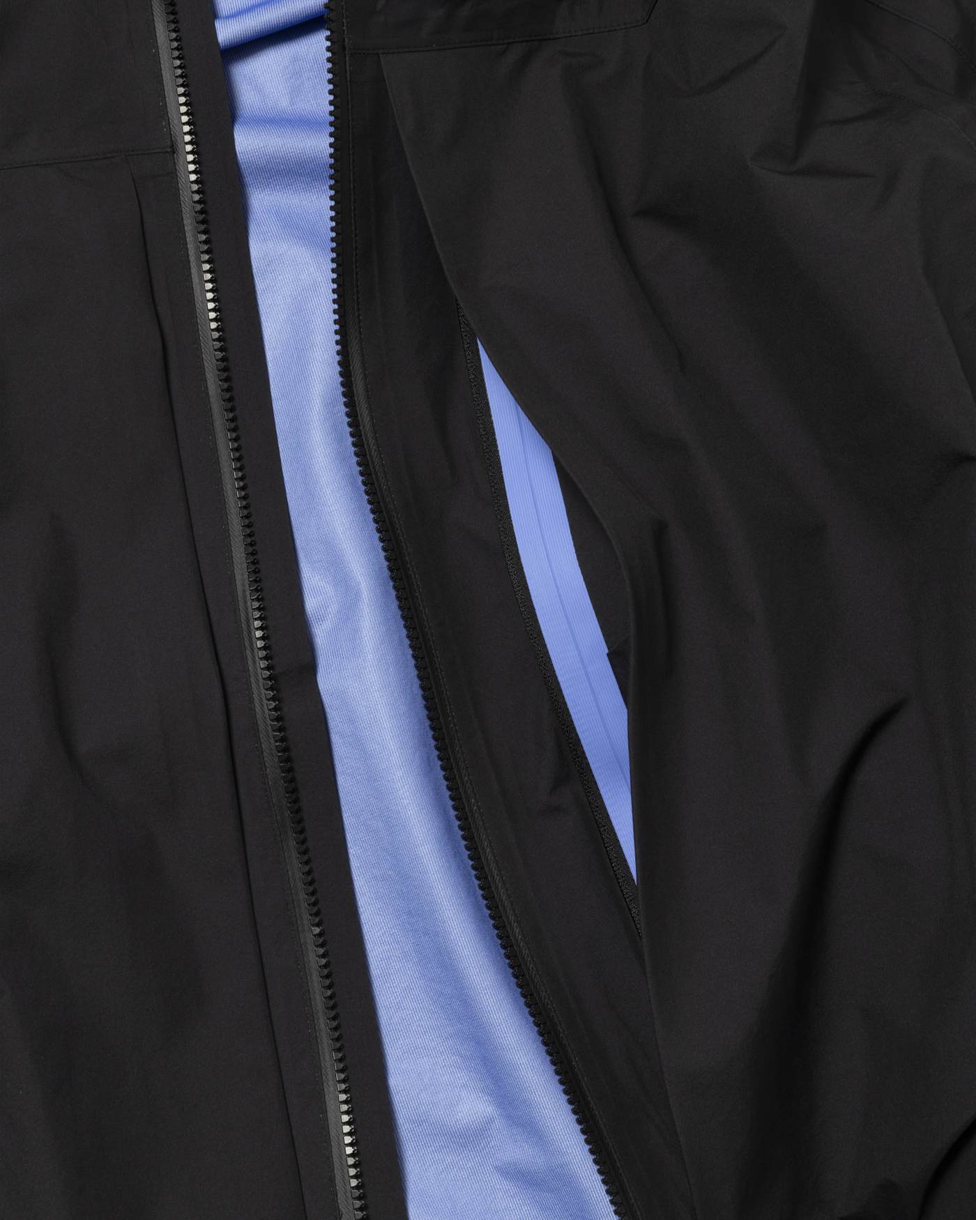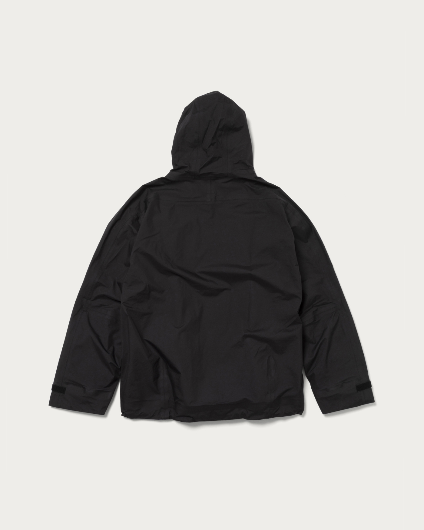 90’sムードが漂うブルーのライニングが目を引くマウンテンパーカ―です。撥水・防水・透湿・防風機能を備えた3レイヤーファブリックを採用。各縫目はシームテープ処理により水の侵入を防ぎフロントジッパーは防水仕様のビスロンアクアガードを採用。前身頃に付くステルス仕様の大型ポケットはセンターと脇の両側からアクセスが可能です。