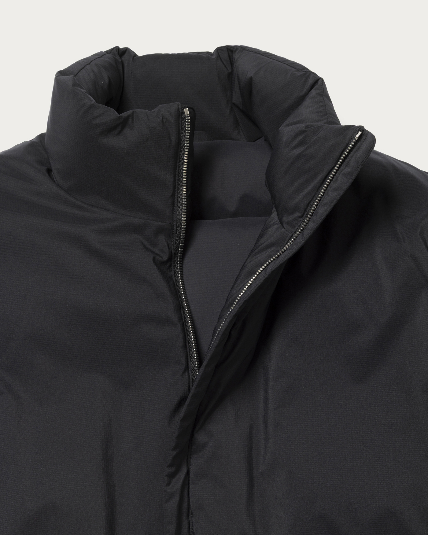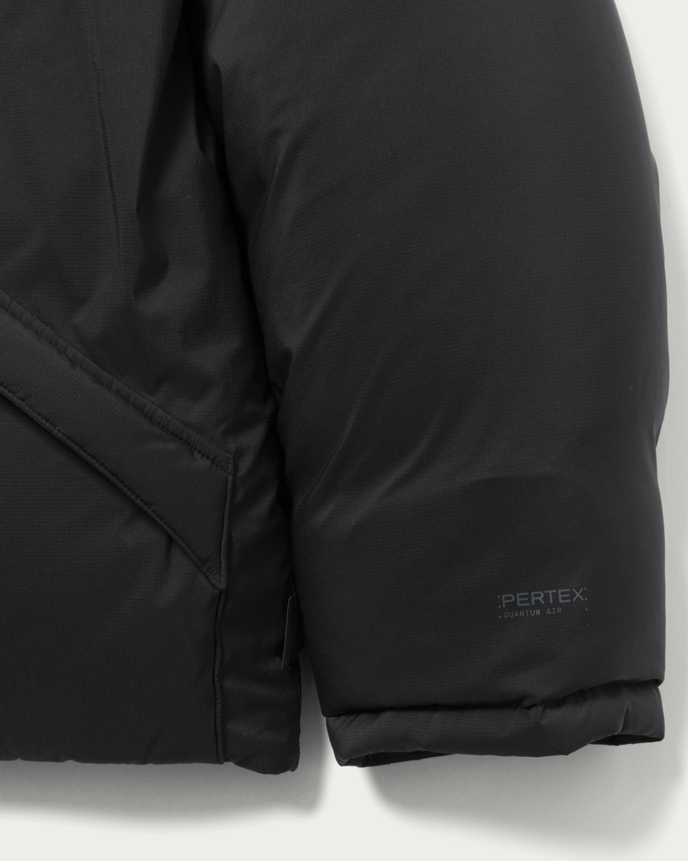 機能素材「PERTEX® QUANTUM AIR」生地を採用したスタンドカラーのダウンジャケットです。軽やかな生地で、マットな光沢感が程よくファッション性を高めてくれます。700FPダウンをたっぷりと充填したブルゾン丈のデザイン。比翼フロントから覗く金属ファスナーにはYKK社のエクセラファスナーを使用。研磨されたエレメントの滑らかさが秀逸です。また裾に備わったドローコードにより細やかなシルエットの調整が可能で、少し強めに絞ってレングスを少し短くした頃合いの着方もおすすめ。筒形の袖でありながら袖口内側にはナイロン混のカットソーリブを搭載しています。