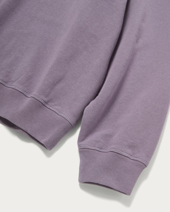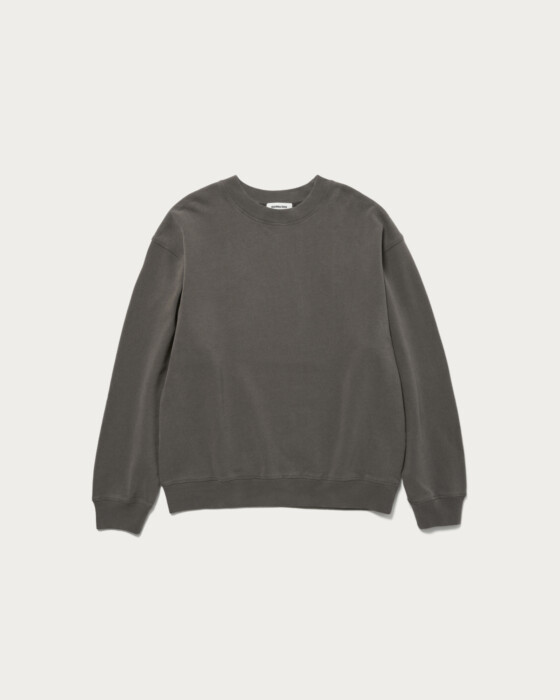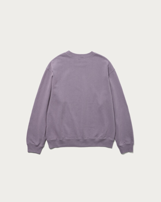 程よい肉厚感のフレンチテリーを使用し、特殊加工によって退色感を出したクルーネックスウェット。人気のブラックの他に、今シーズンらしいパープルとダークブラウンの新色をご用意しました。