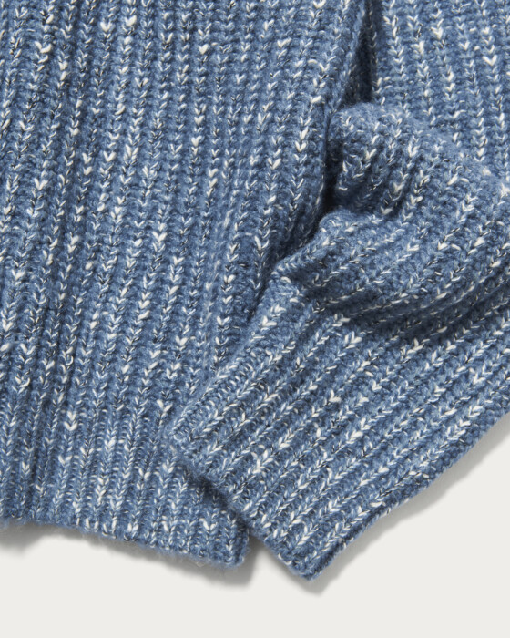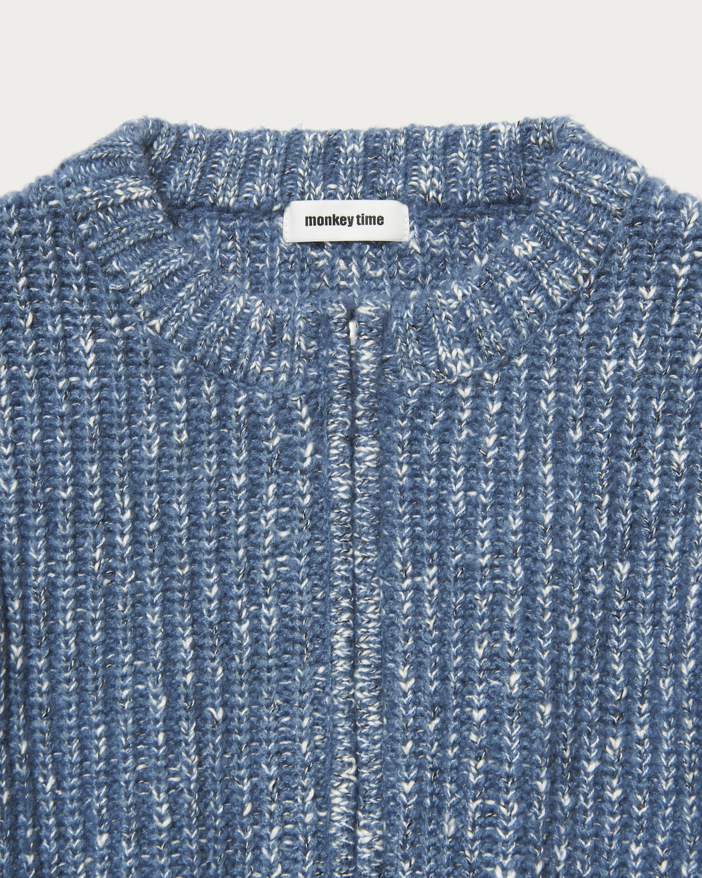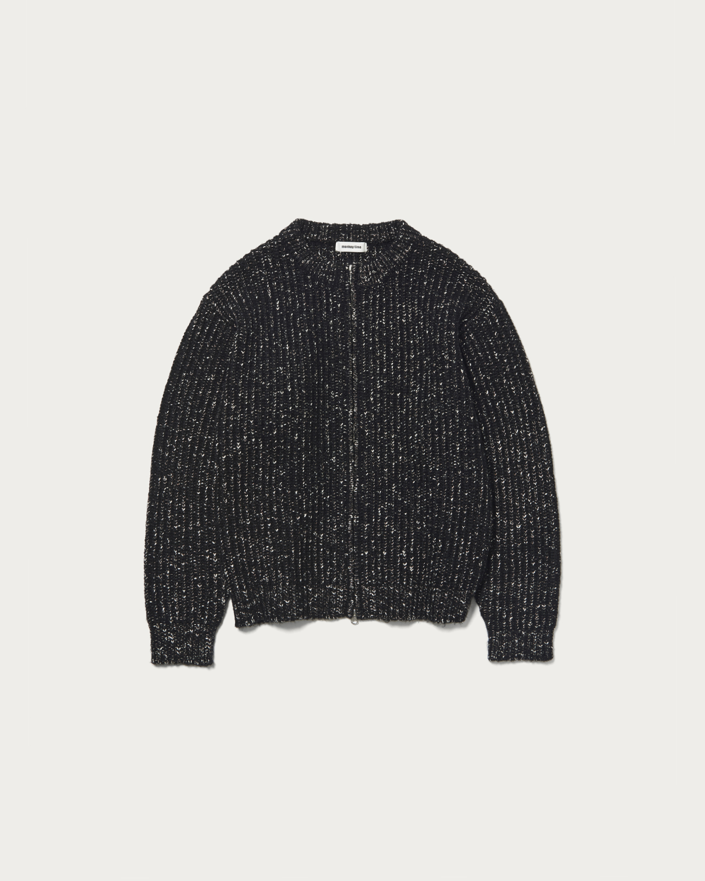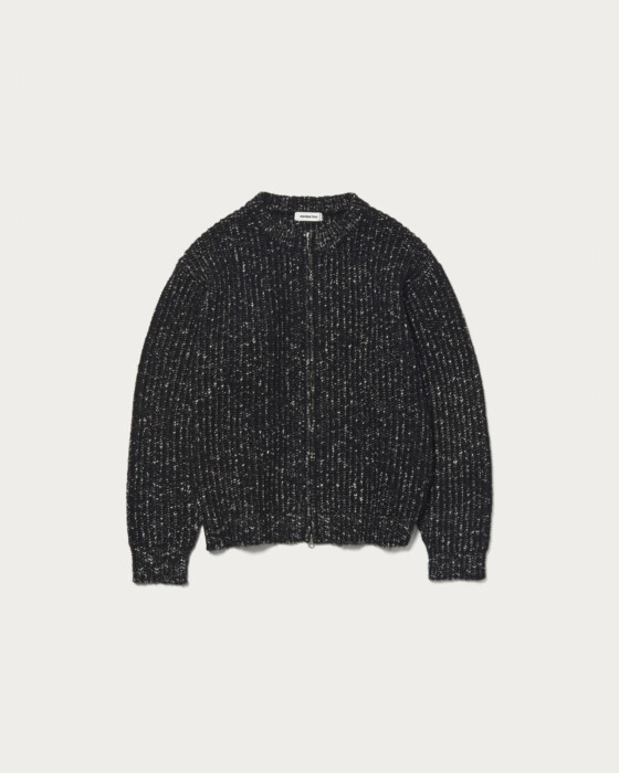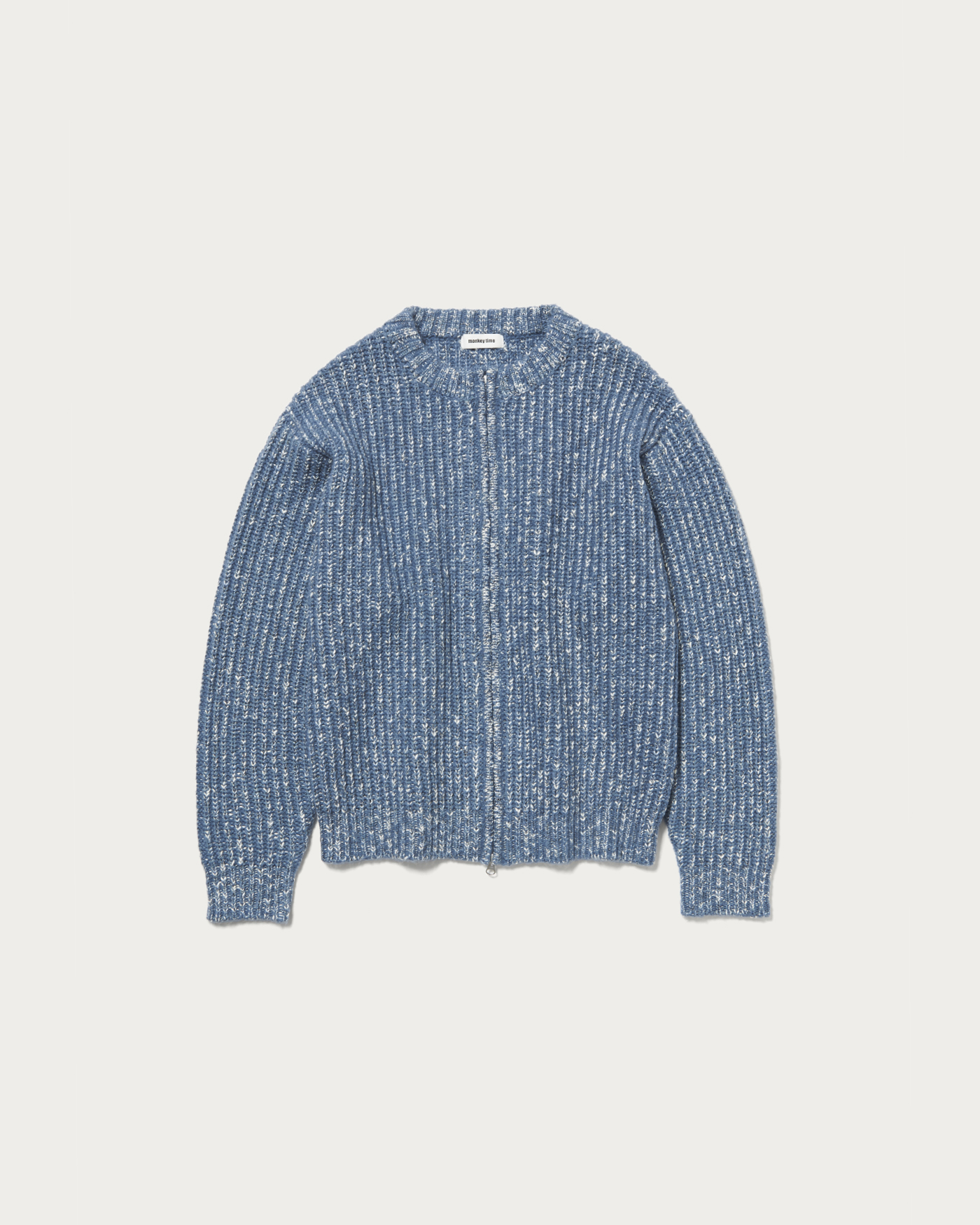スラブ感とミックス調が特徴的な糸を使用し、畦組織で編んだフロントジップニット。秋の羽織から防寒アウターのインナー使いまで、コーディネートのアクセントになるアイテムです。