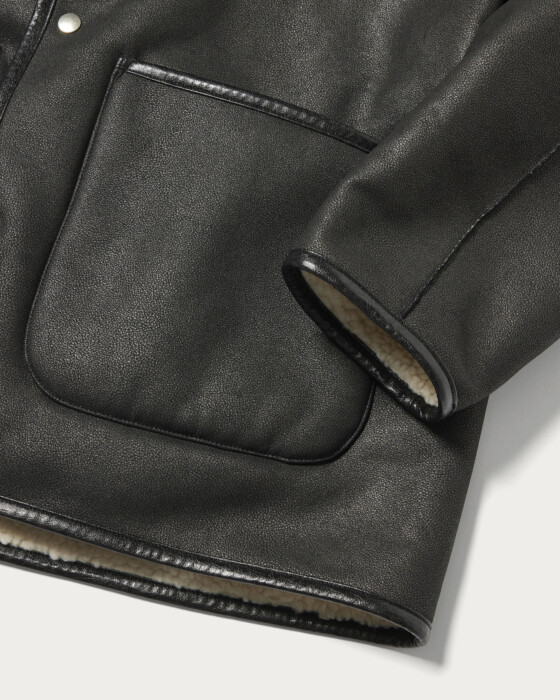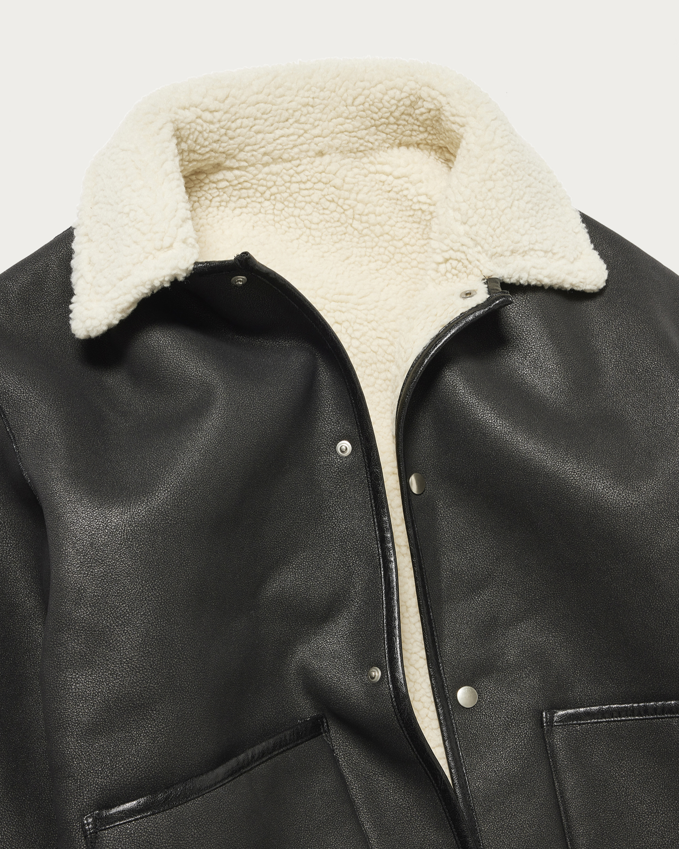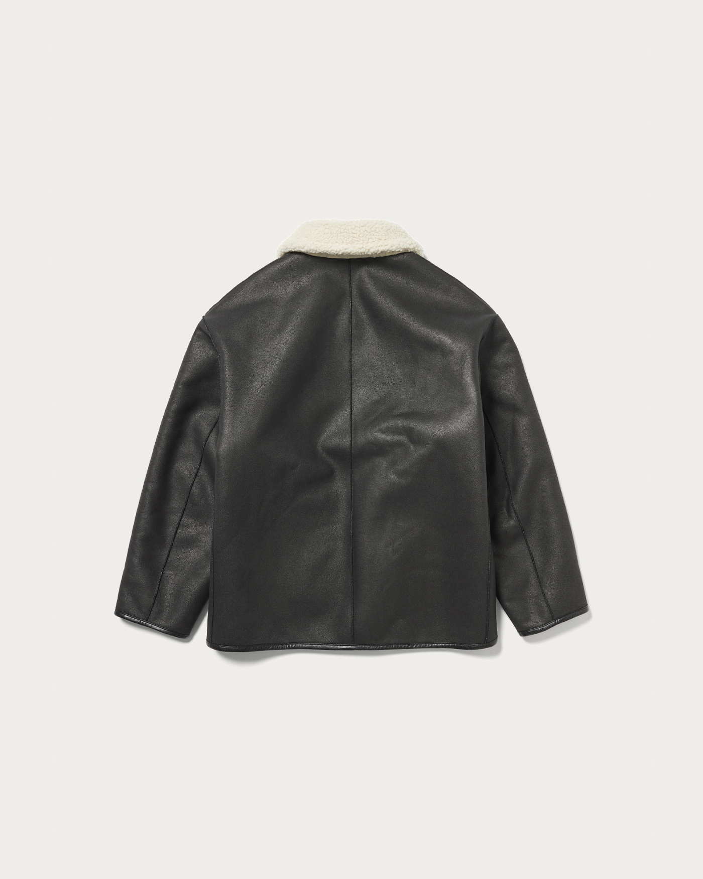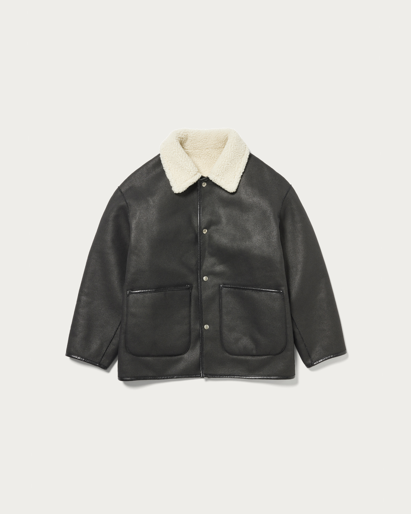 防寒性の高いムートンライクの素材を使用したカバーオール型ジャケット。縫い目の少ない縫製仕様で、リバーシブル(裏面はオールボア)として着用可能な今シーズン初登場のアイテムです。
