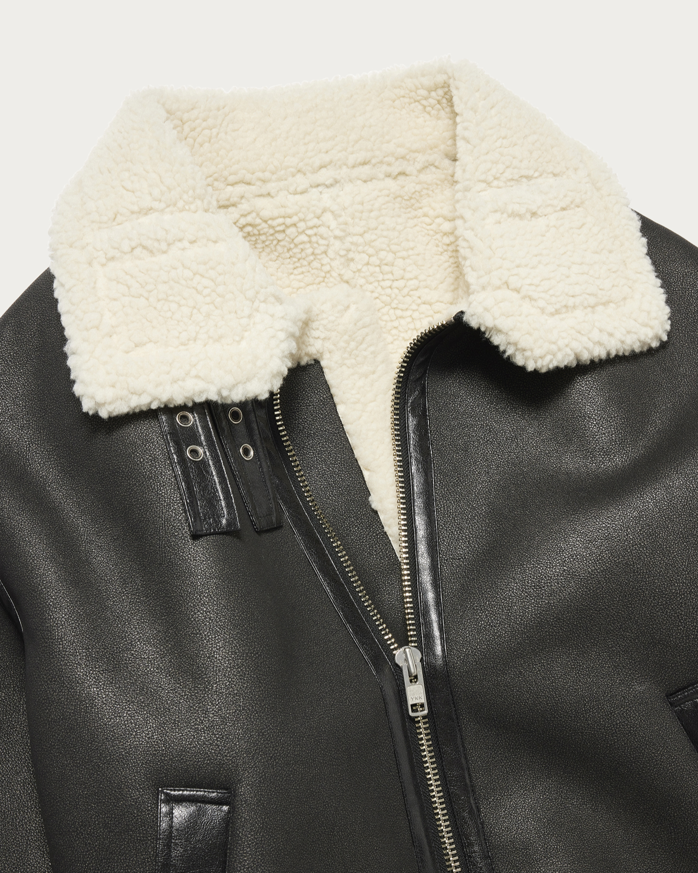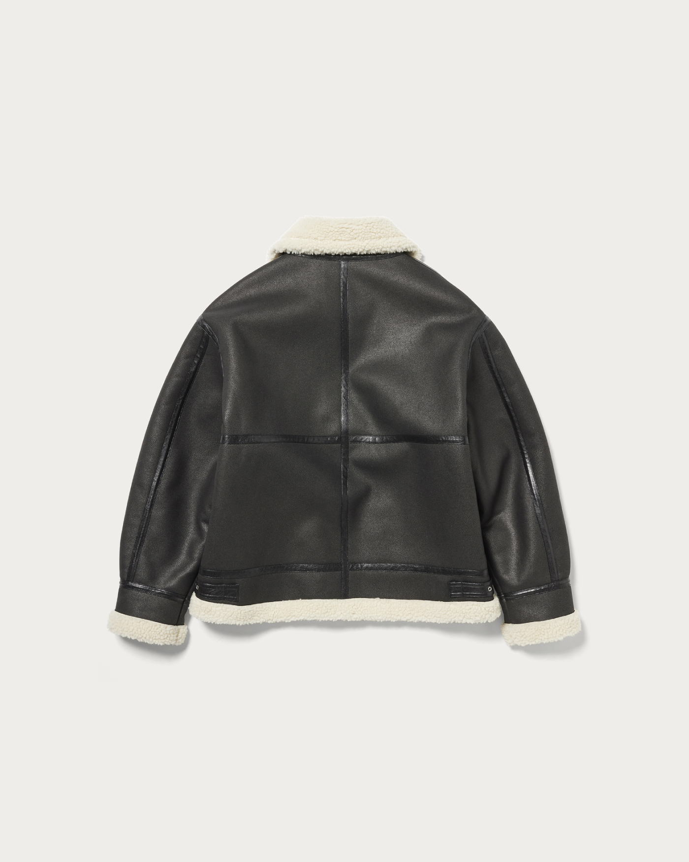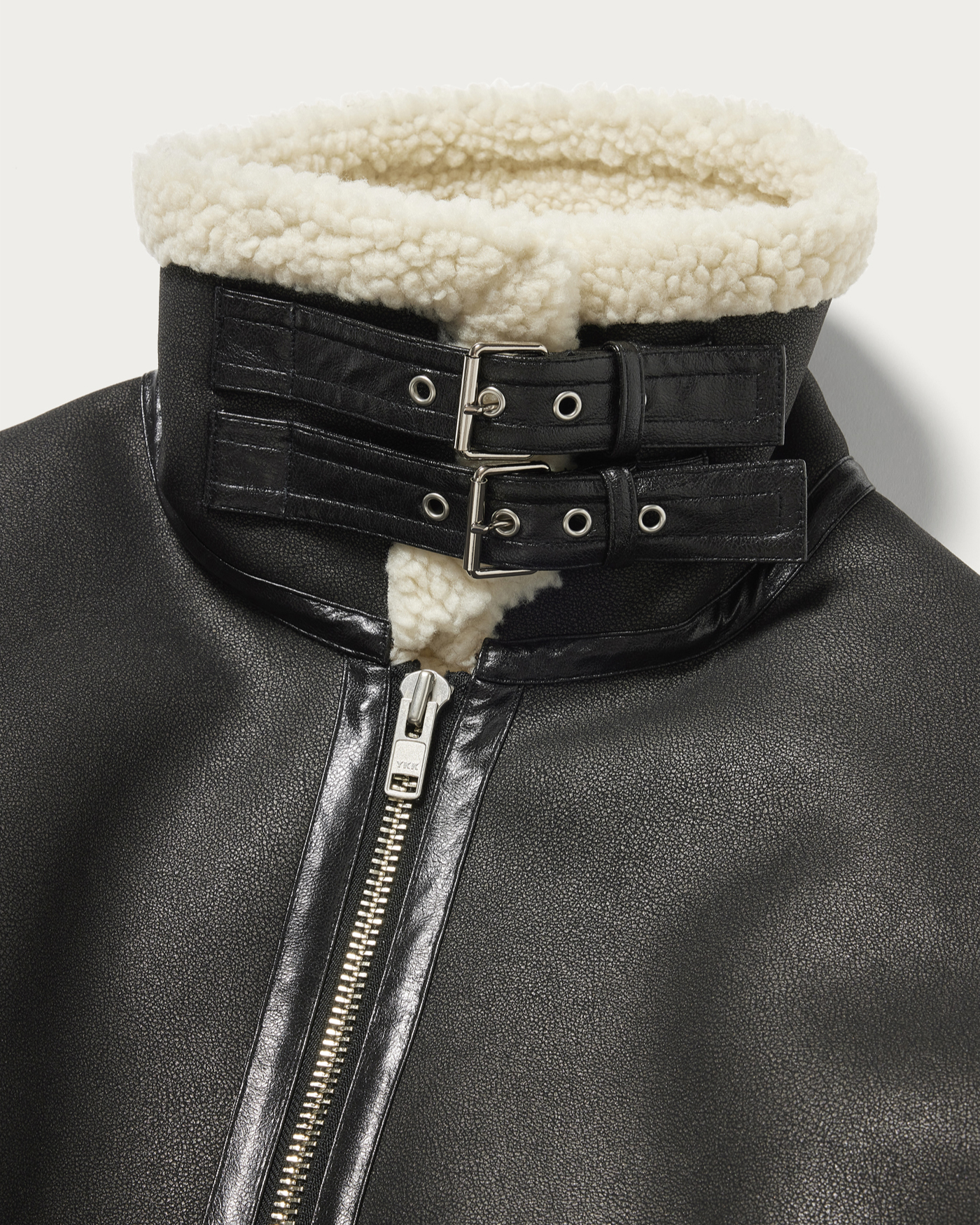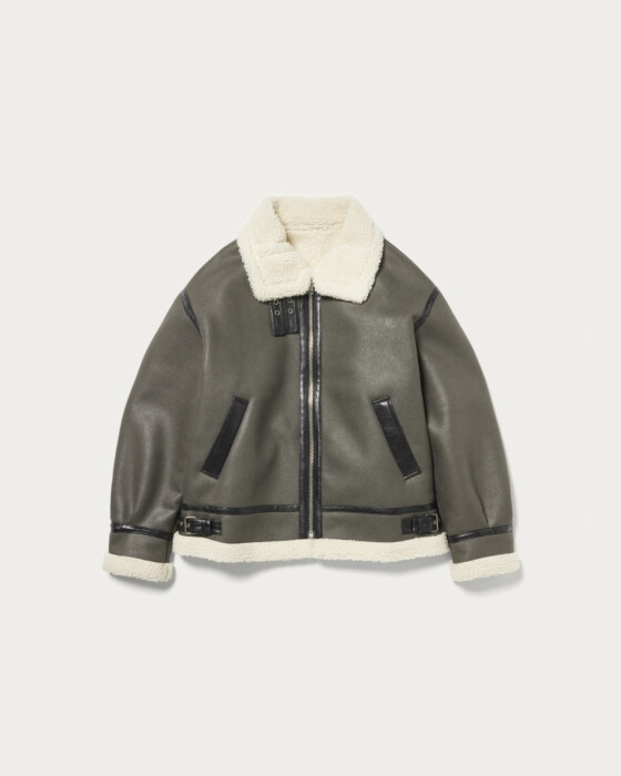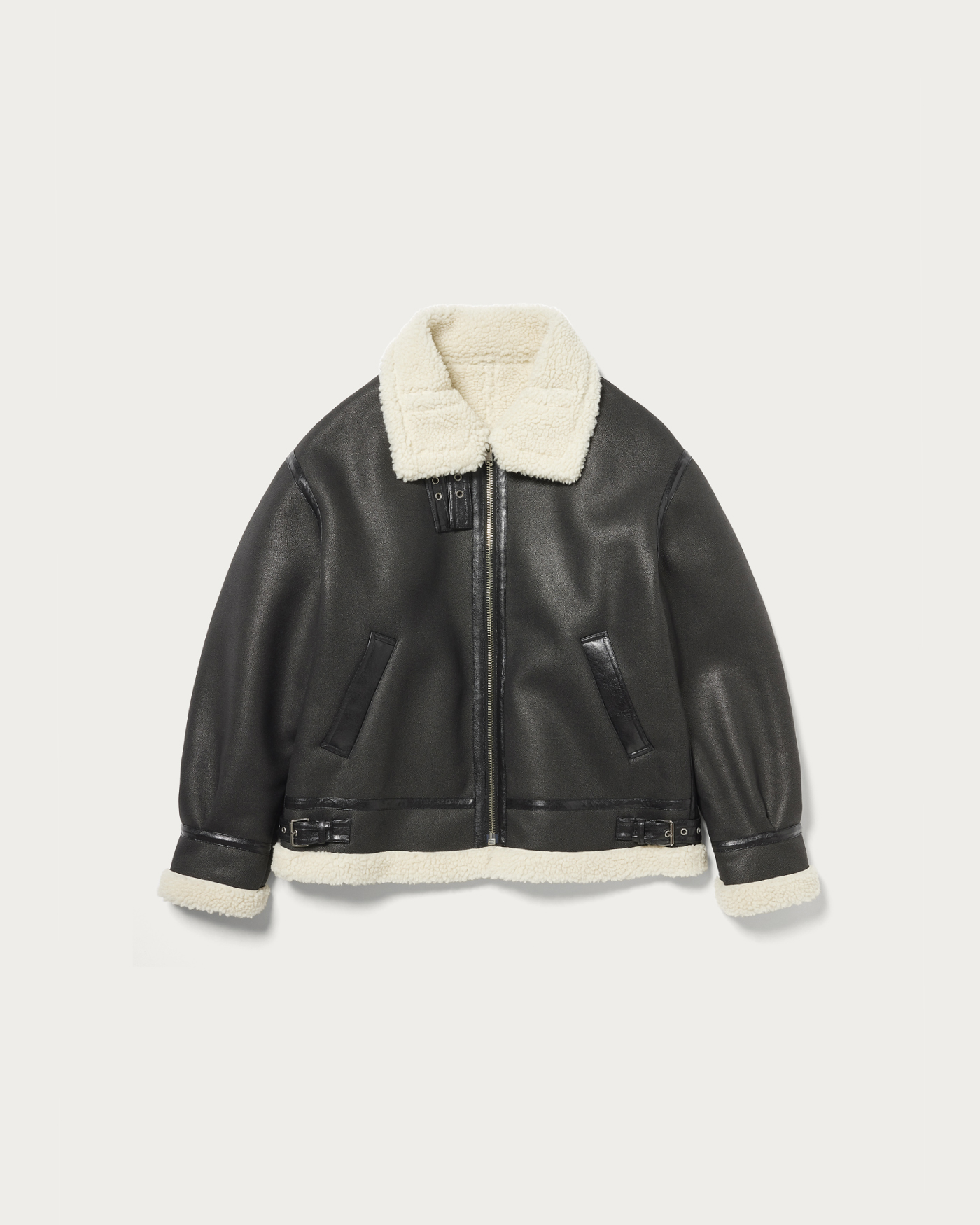 防寒性の高いムートンライクの素材を使用したミリタリーのB-3型ジャケット。モンキータイムでは毎年冬の定番アイテムとして人気を博しており、今シーズンはブラックベースとダークグレーベースの2色展開です。