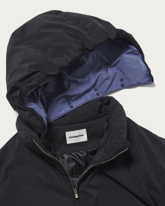 表地に撥水加工が施された品の良いタフタ素材を使用し、中綿にはPRIMALOFT® BLACK INSULLATIONを採用した防寒フードジャケット。フードは脱着可能で、フードを裏返し配色面を表にしてコーデイネートのアクセントにする事も可能です。裾のストレッチコードを絞ることで風の侵入を軽減すると共に防寒性を確保できます。