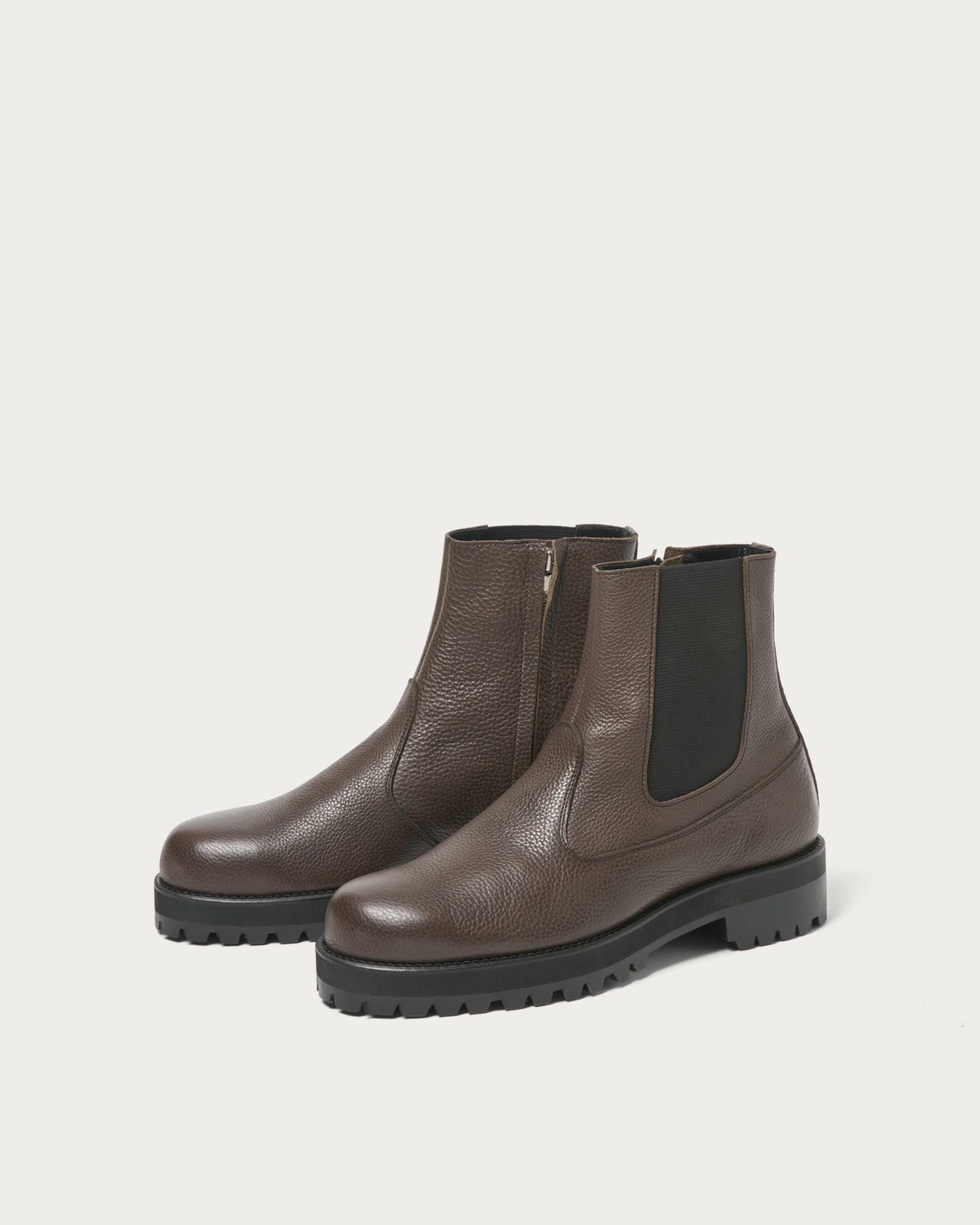 上質な靴作りに定評のある日本のブランド〈トモ&シーオー〉がデザイン監修と生産を行った〈モンキータイム〉オリジナルのブーツに新色のブラウンが登場です。サイドゴアとサイドジップをドッキングさせたデザインが特徴で、ボリューム感のあるVibramソールを採用。アッパーのレザーに上品なシュリンクレザーを使用することで、カジュアルとエレガントが調和されたブーツが完成しました。