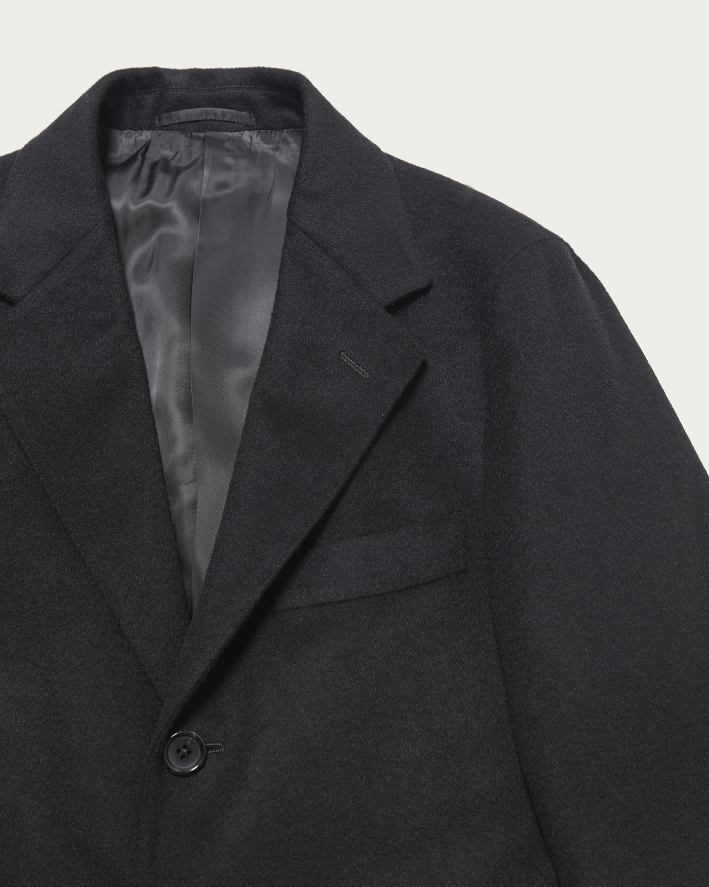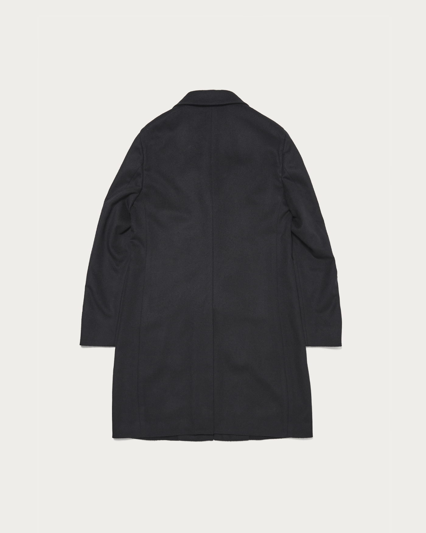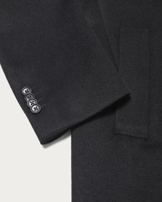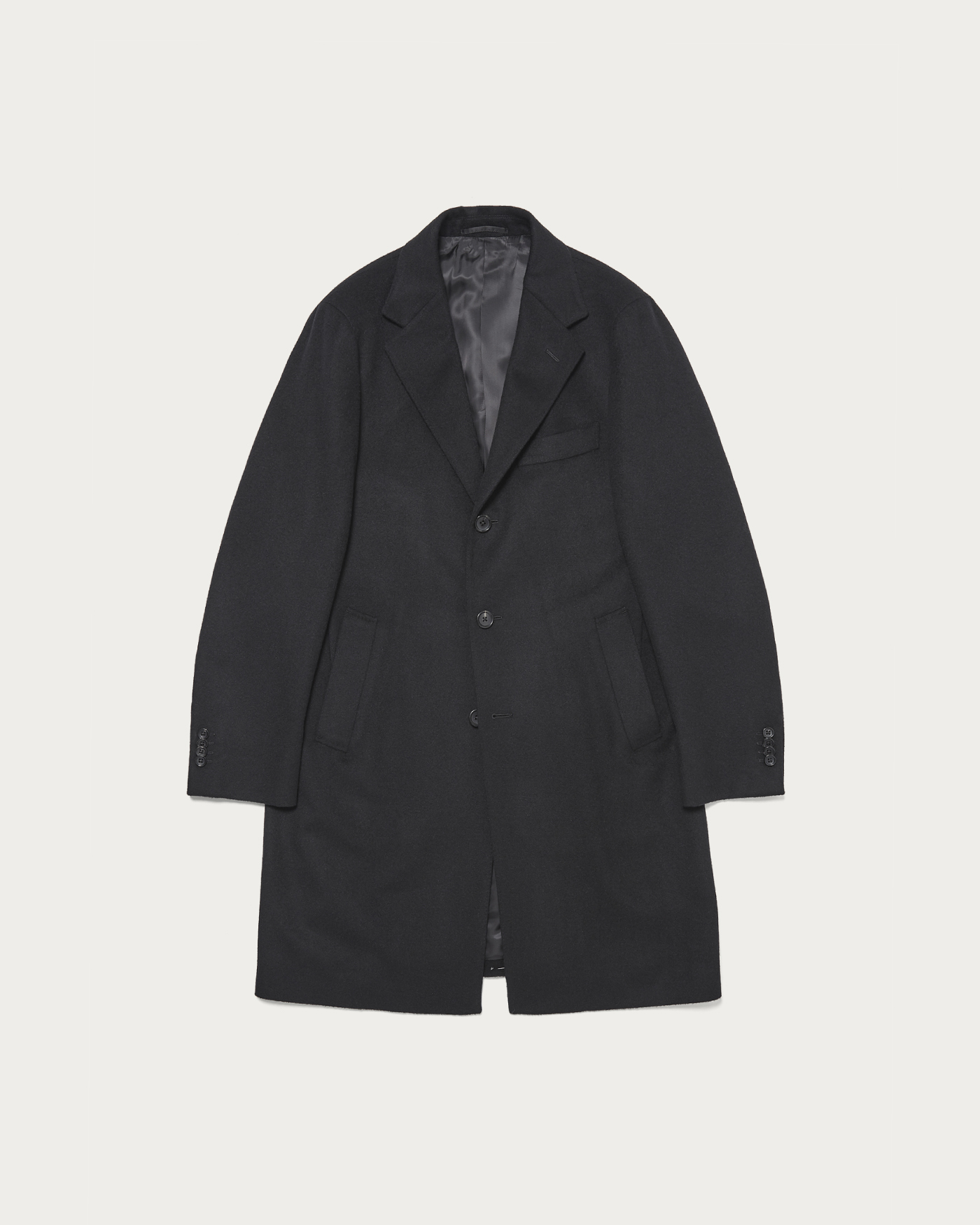 段返り3つボタン仕様のチェスターフィールドコート。丸みのあるナチュラルショルダーラインに、自然なウエストシェイプ、そこから裾へと広がる美しいAラインが特徴。男らしさと上品さを兼ね備えた、やわらかいモダンクラシックな佇まいです。素材はウールカシミヤのショートビーバー。毛足が長すぎずドレッシーすぎない表情で、日常使いしやすい上質な風合い。カシミヤ混により、しなやかなタッチと高い保温性、品格ある光沢感を備えています。