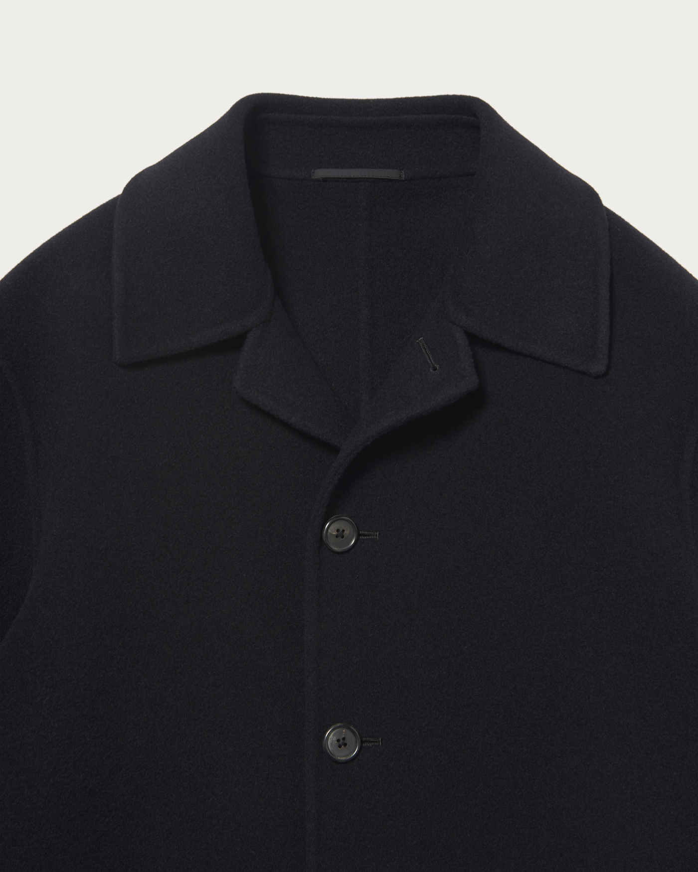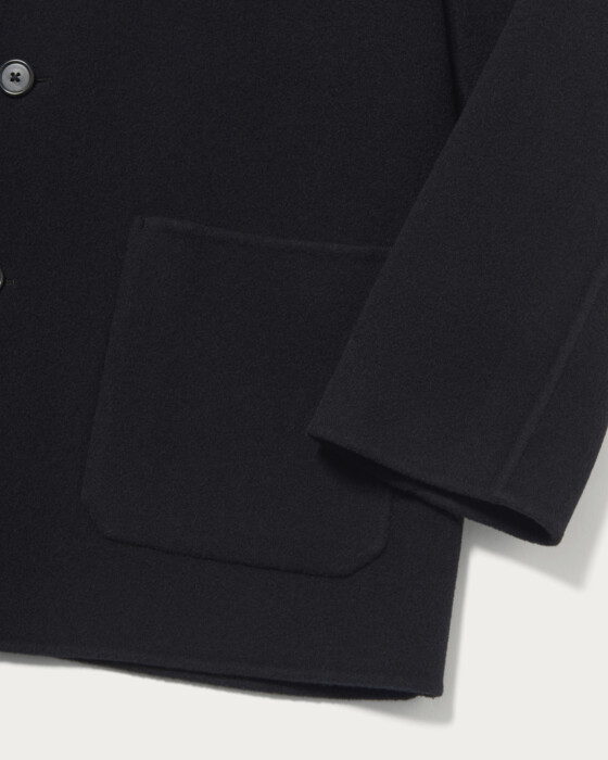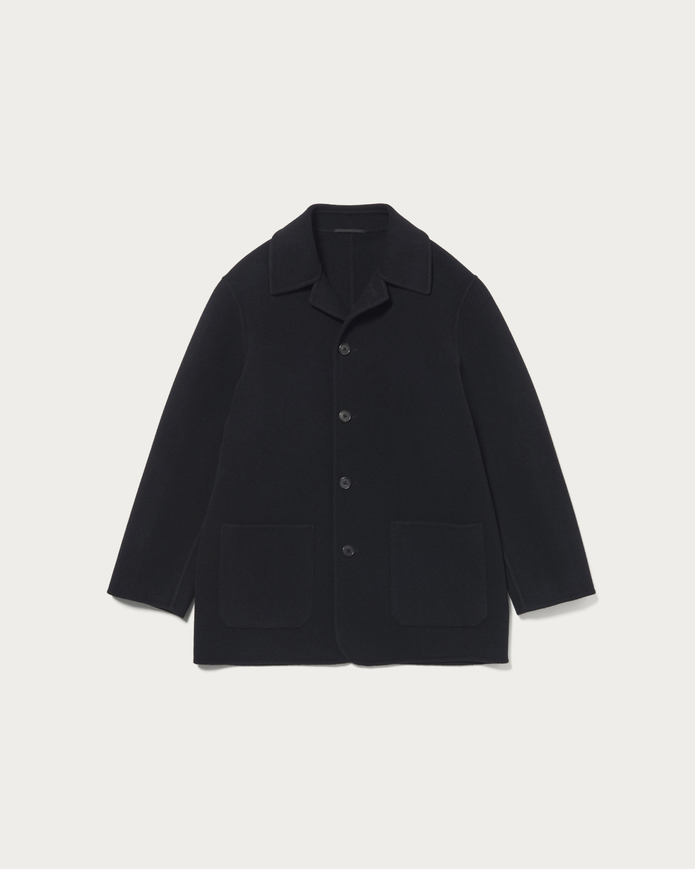 ウールカシミヤのダブルフェイス素材を使用したカーコート。リバー縫製による仕立てで、厚みがありながらも柔らかく、上品な見た目と軽やかな着心地を実現しました。たっぷりとした身幅に軽快な丈感、スポーティーなパッチポケットが特徴。素材は、2枚の生地を接結して1枚に織り上げたダブルフェイス。カシミヤをブレンドすることで、ふくらみのある肉厚さとしなやかさを両立。ベロア仕上げにより、柔らかく温もりのある風合いに仕上げています。