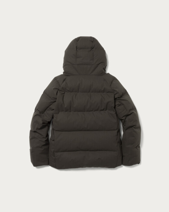 水沢ダウンの代表モデル「MOUNTAINEER」のレギュラーフィット。深みのあるダークオリーブグリーンのカラーで別注した特別仕様です。ブラックのように落ち着いた印象で、洗練された雰囲気に仕上がっています。