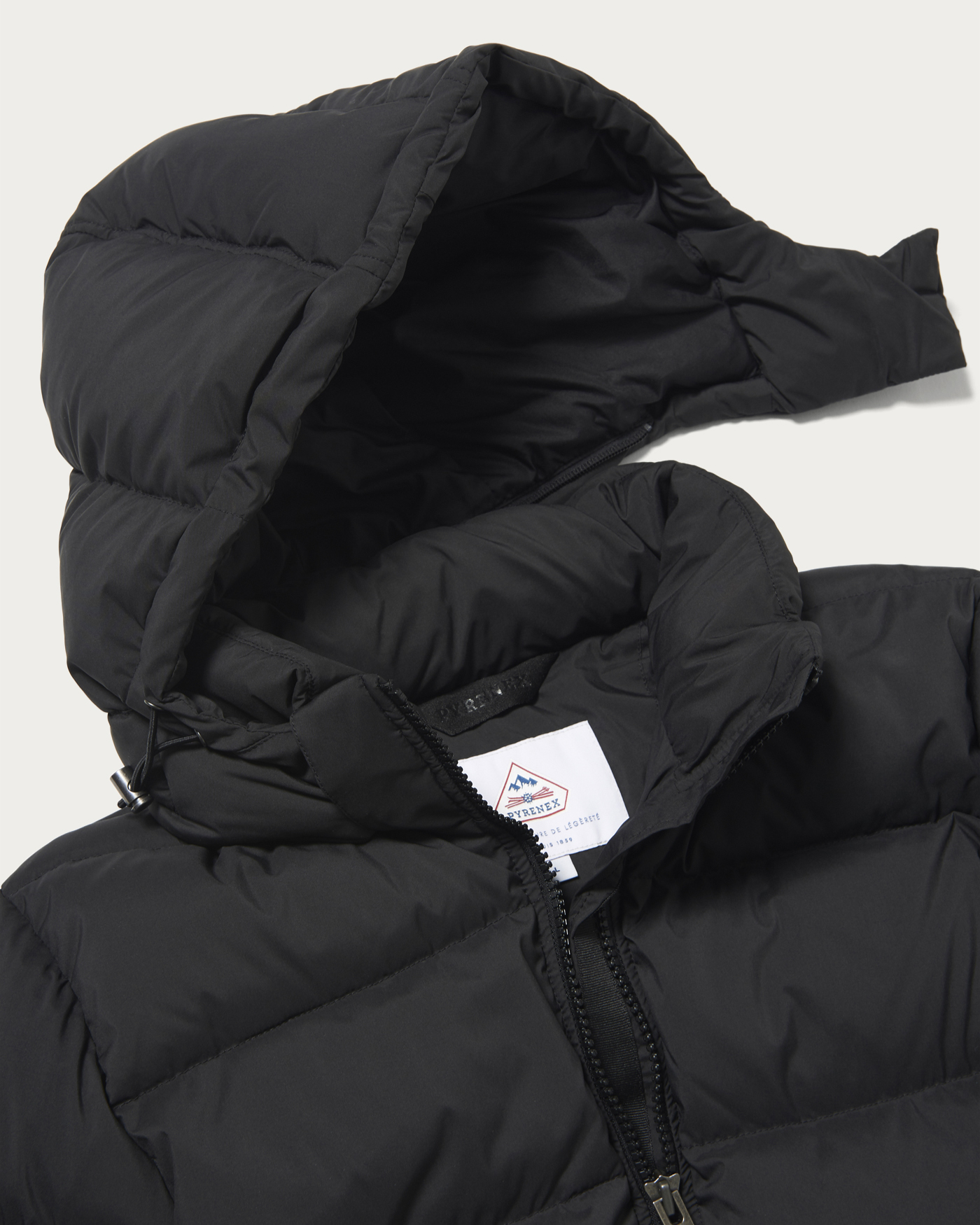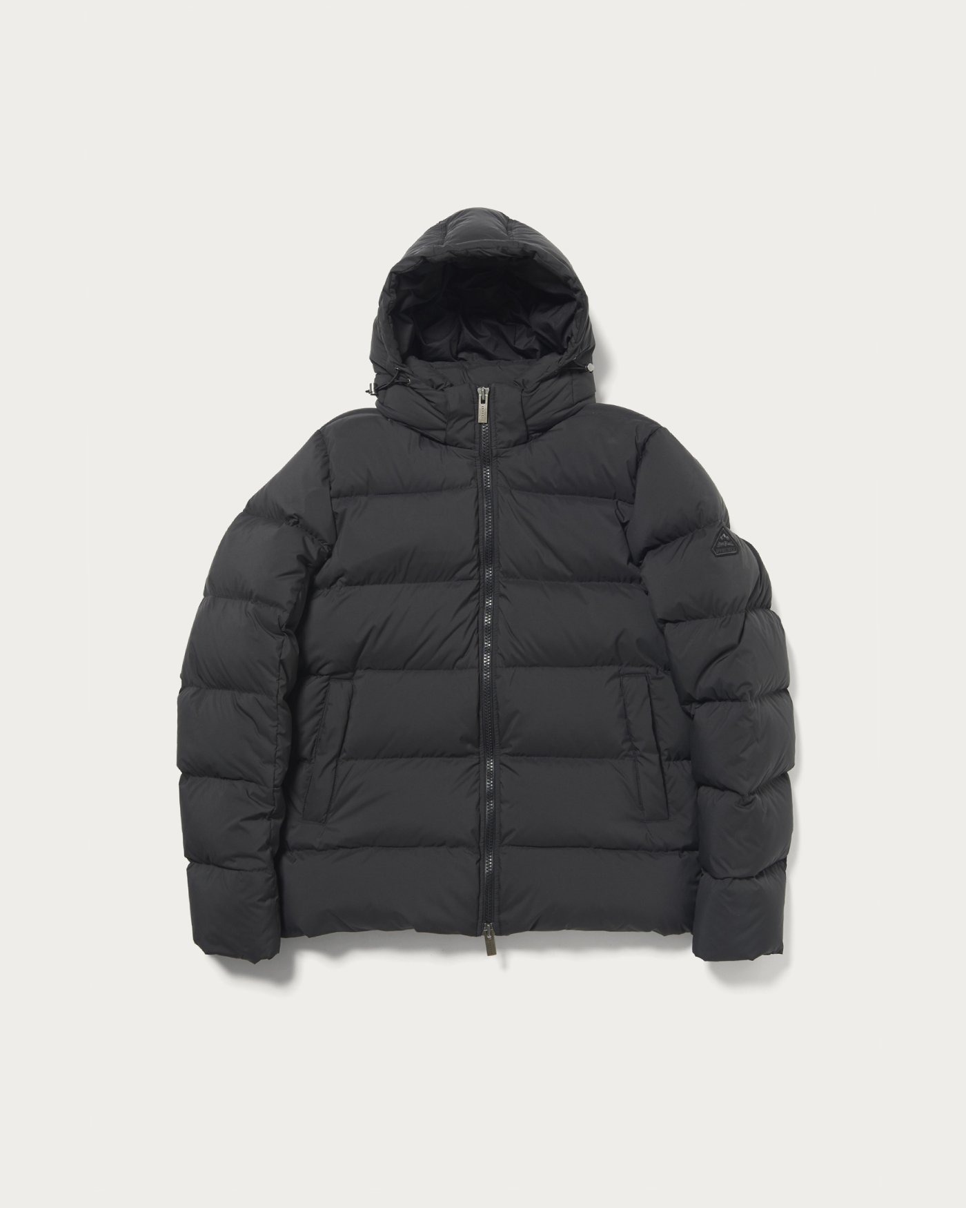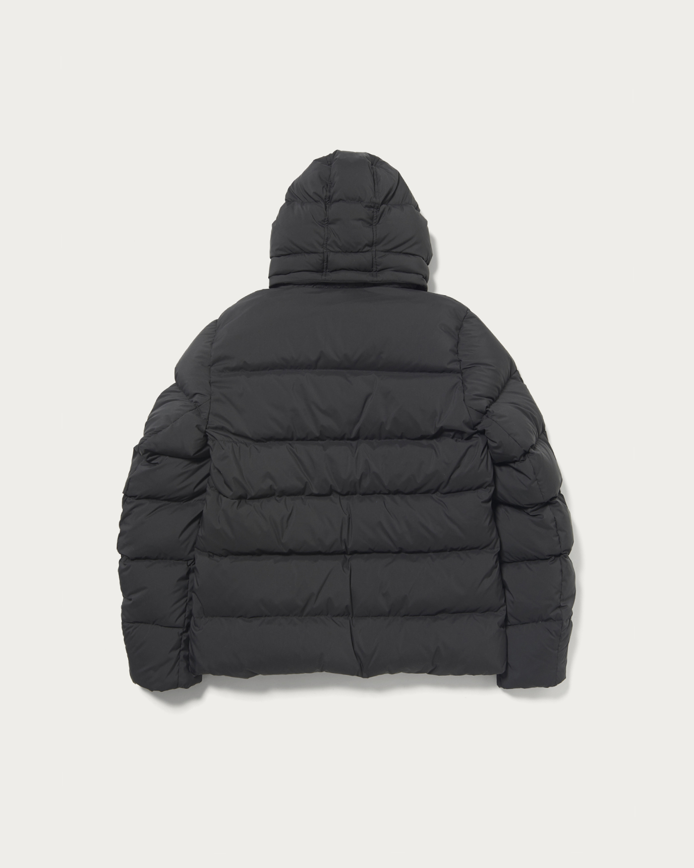 〈PYRENEX〉を代表するアイコニックモデル「スプートニック ジャケット」。細めのキルトステッチを全面に施したシンプルなヒップレングスのフーデッドジャケットで、フランス本国でも長年愛される定番モデルです。ユナイテッドアローズ別注では、光沢を抑えたピーチスキンのような質感とナチュラルなストレッチ性を持つ非常にソフトな素材「スムース」を採用し、ブランドロゴを同色で仕上げています。フードは着脱可能です。