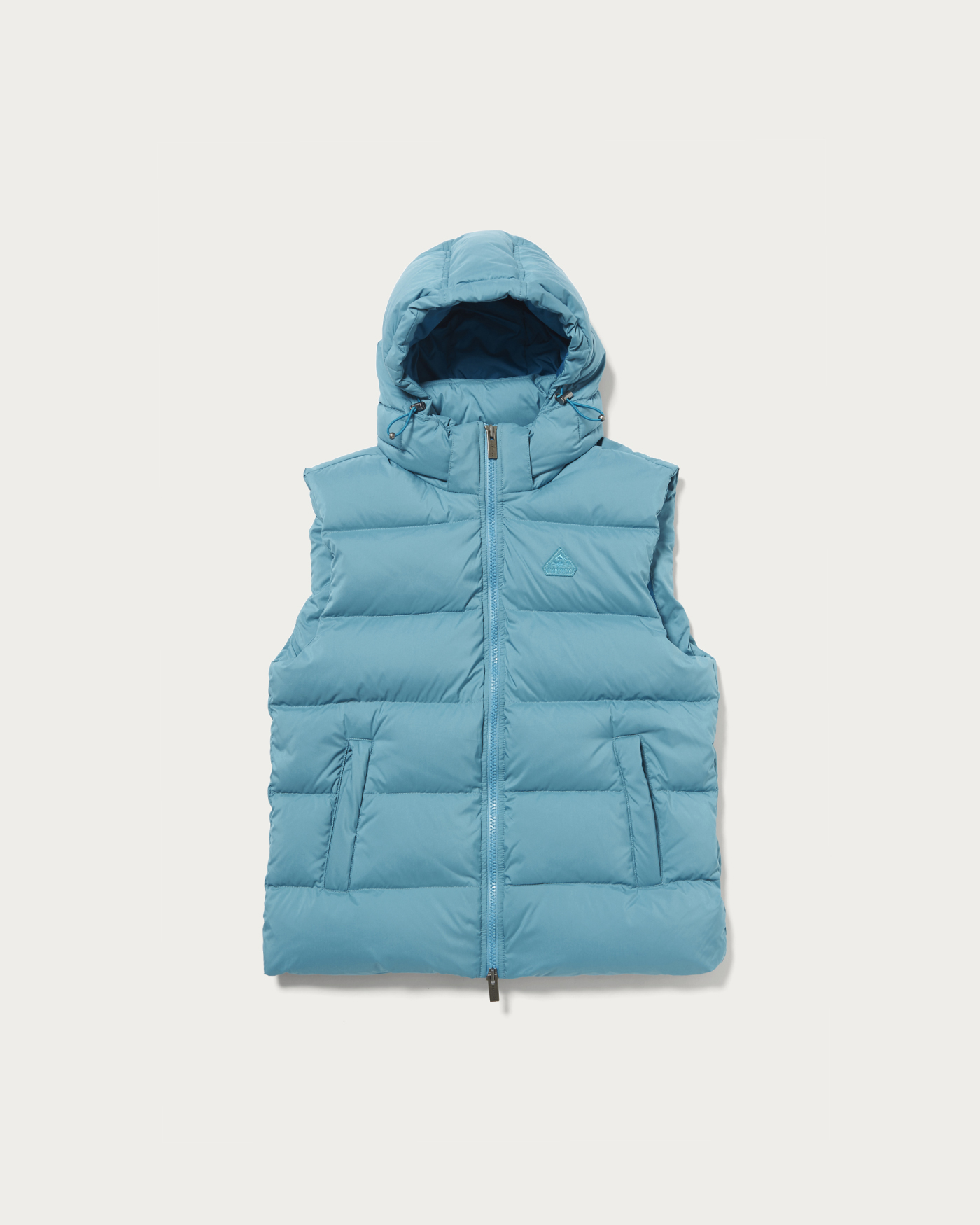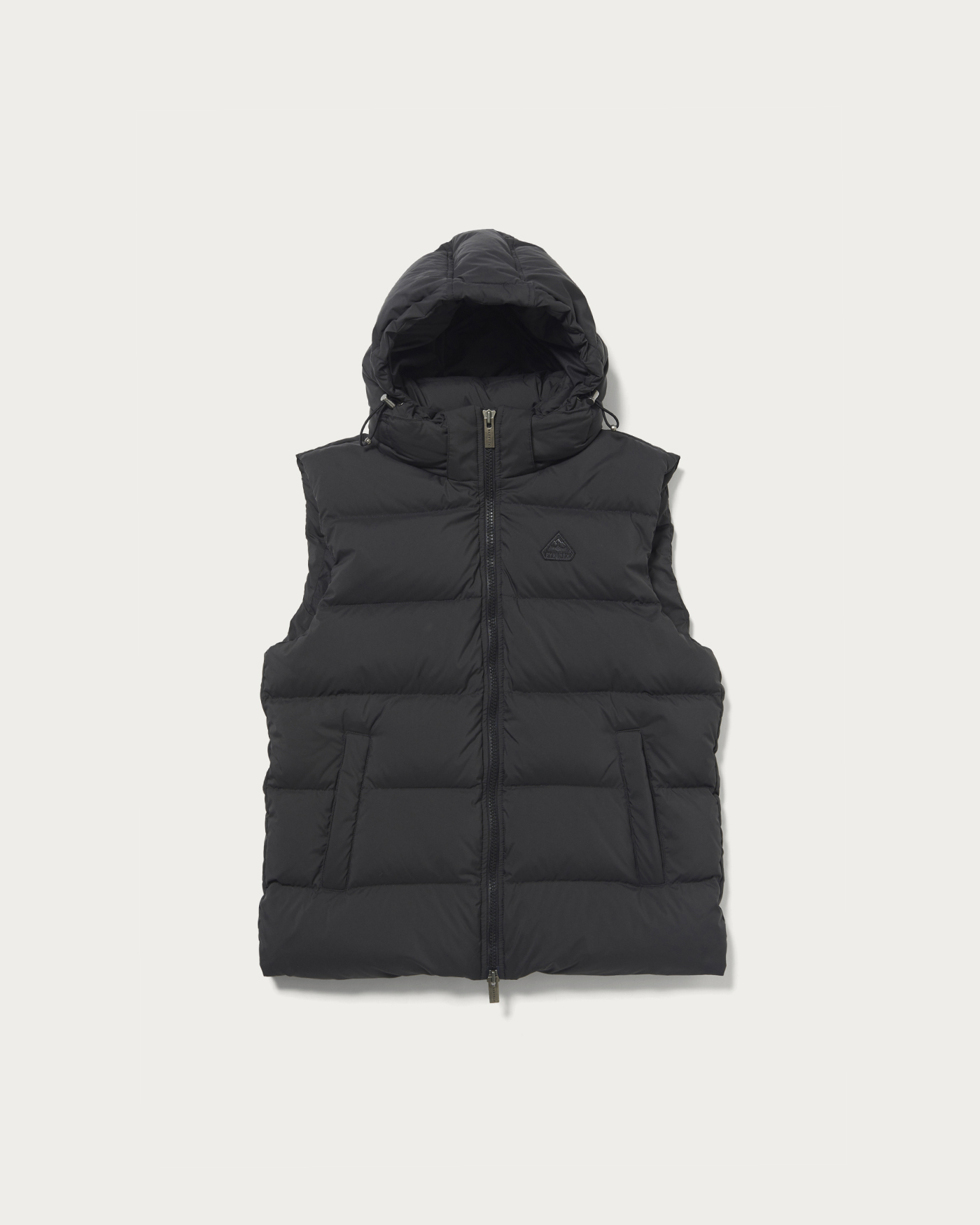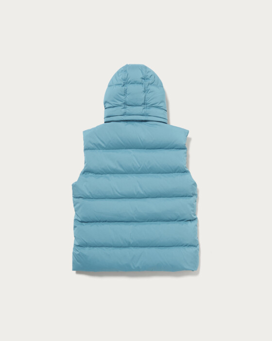 〈PYRENEX〉を代表するアイコニックモデル「SPOUTNIC VEST」。キルトステッチを全面に施したシンプルなデザインで、実用性と汎用性を兼ね備えたヒップレングスのダウンベストです。ユナイテッドアローズ別注では、光沢を抑えたピーチスキンのような質感の非常にソフトな素材を採用。ブランドロゴを同色にすることで、すっきりと上品な印象に仕上げています。