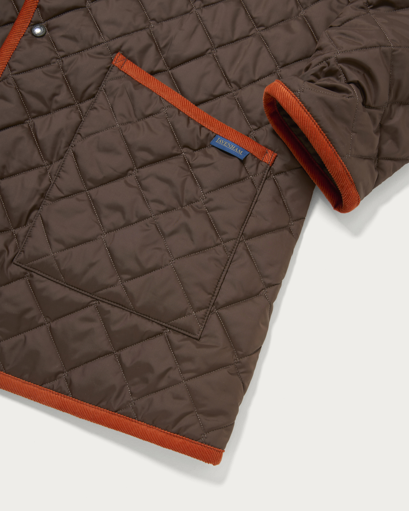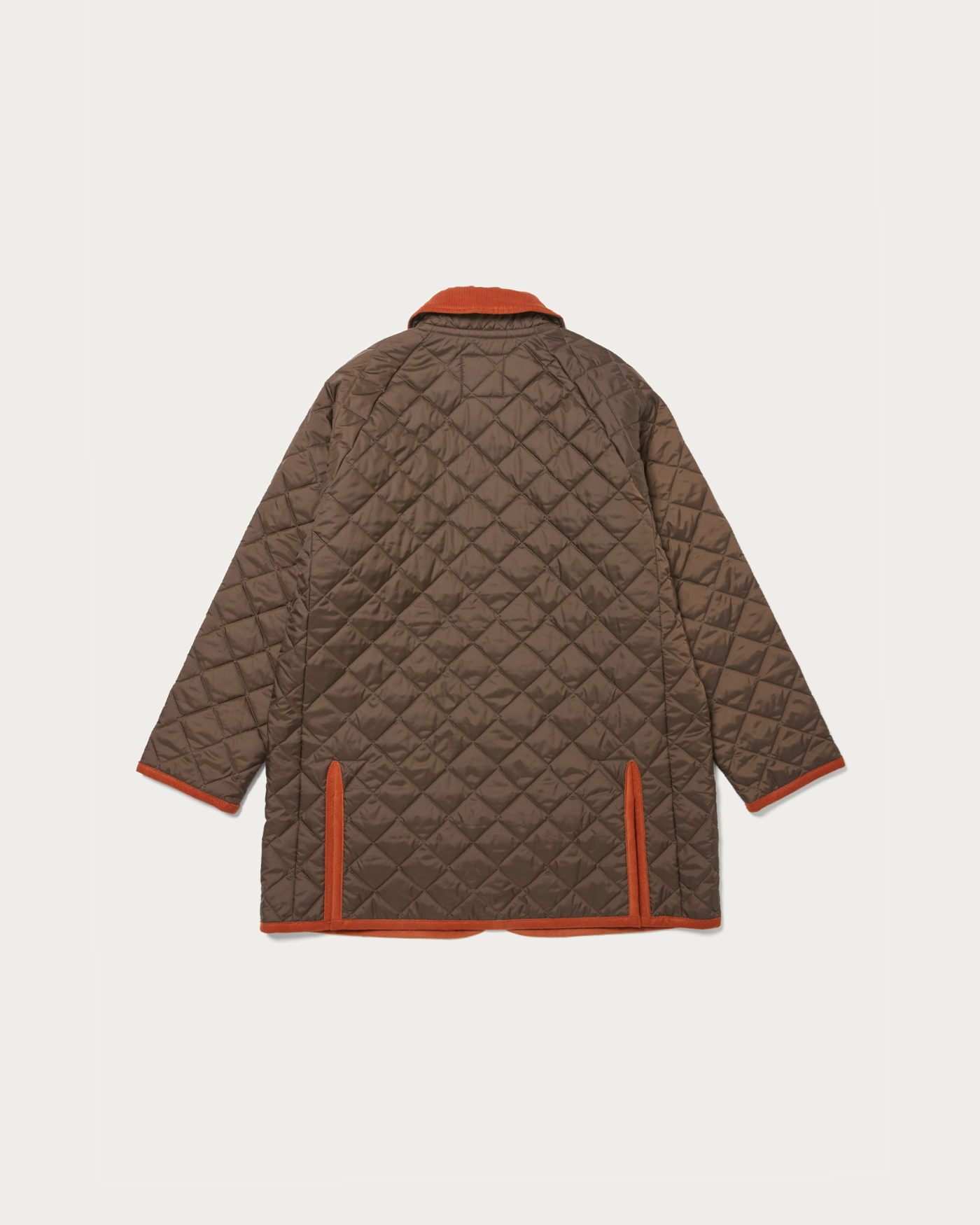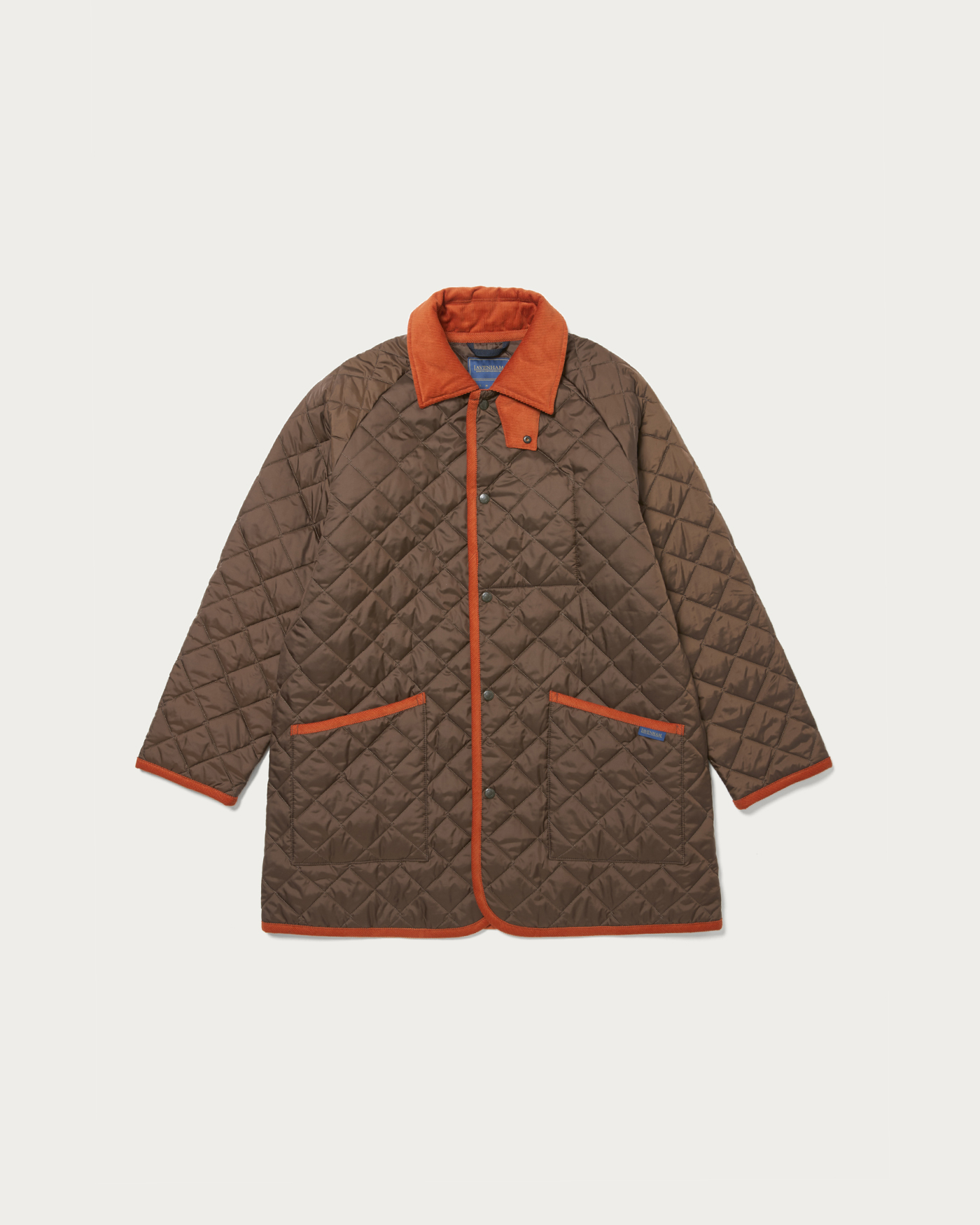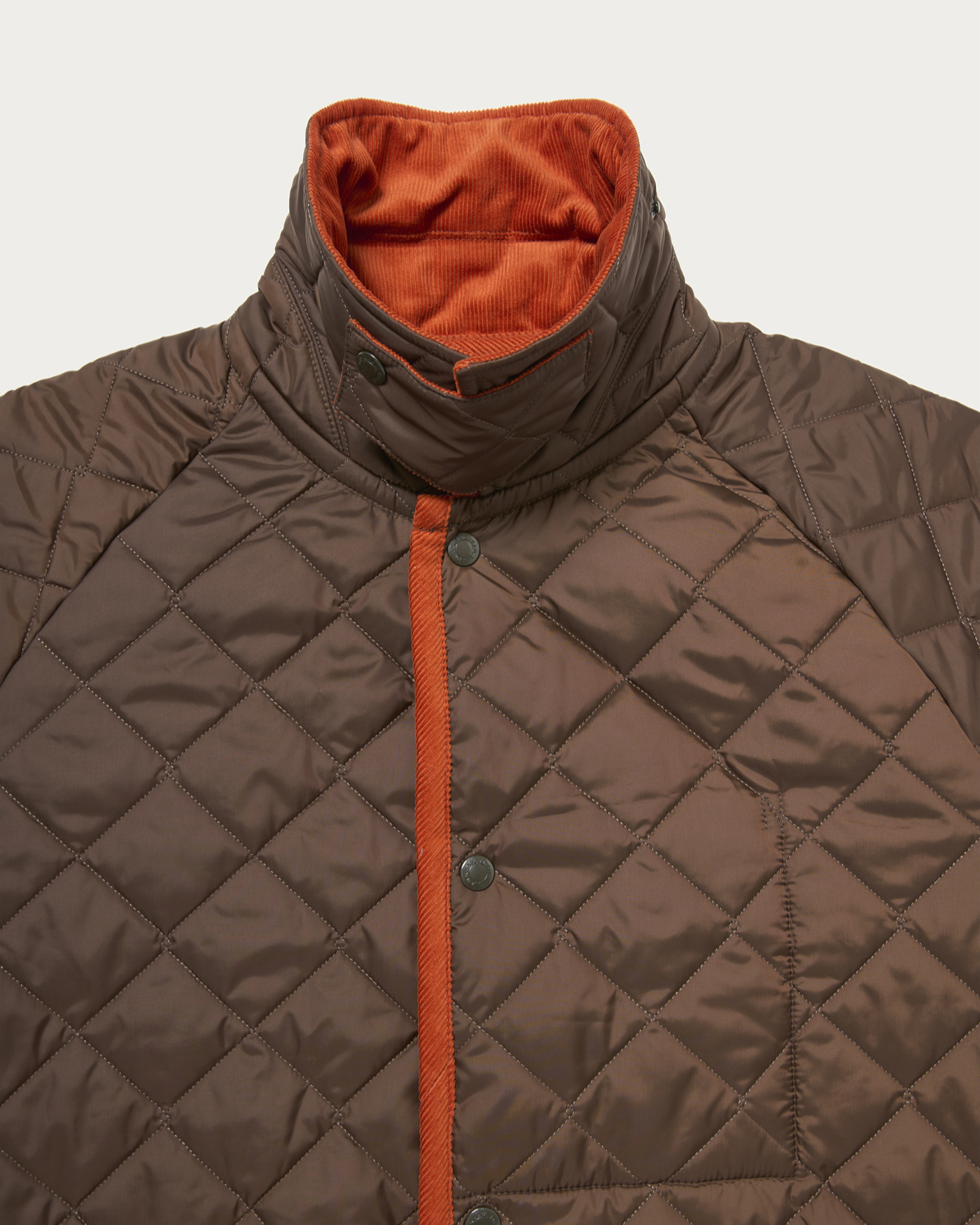 ホースライディングコートをベースに、カーコート丈へとモディファイした別注モデル。襟の大きさや角度を新たに設計し、バランスよくアップデートしています。ラグランスリーブによるスポーティな印象と、腰丈の新鮮なシルエットが特徴。ブラウンとオレンジの配色が、どこか懐かしくも新鮮なフレンチトラッドの気分を感じさせます。
