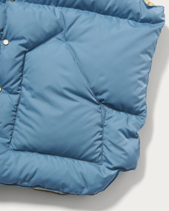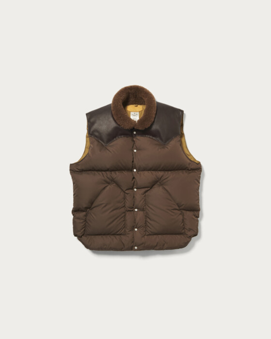 スポーティな印象のダウンベストをドレッシーなアイテムと組み合わせることで、新鮮なスタイリングを提案したく〈ROCKY MOUNTAIN FEATHERBED(ロッキーマウンテンフェザーベッド)〉の名作「クリスティーベスト」に別注をかけました。上質なムートン襟と一枚革のヨークを活かし、表地・裏地・レザー・ボアのすべてを、レイヤードスタイルに馴染みやすいユナイテッドアローズオリジナルカラーで仕上げた3色展開です。